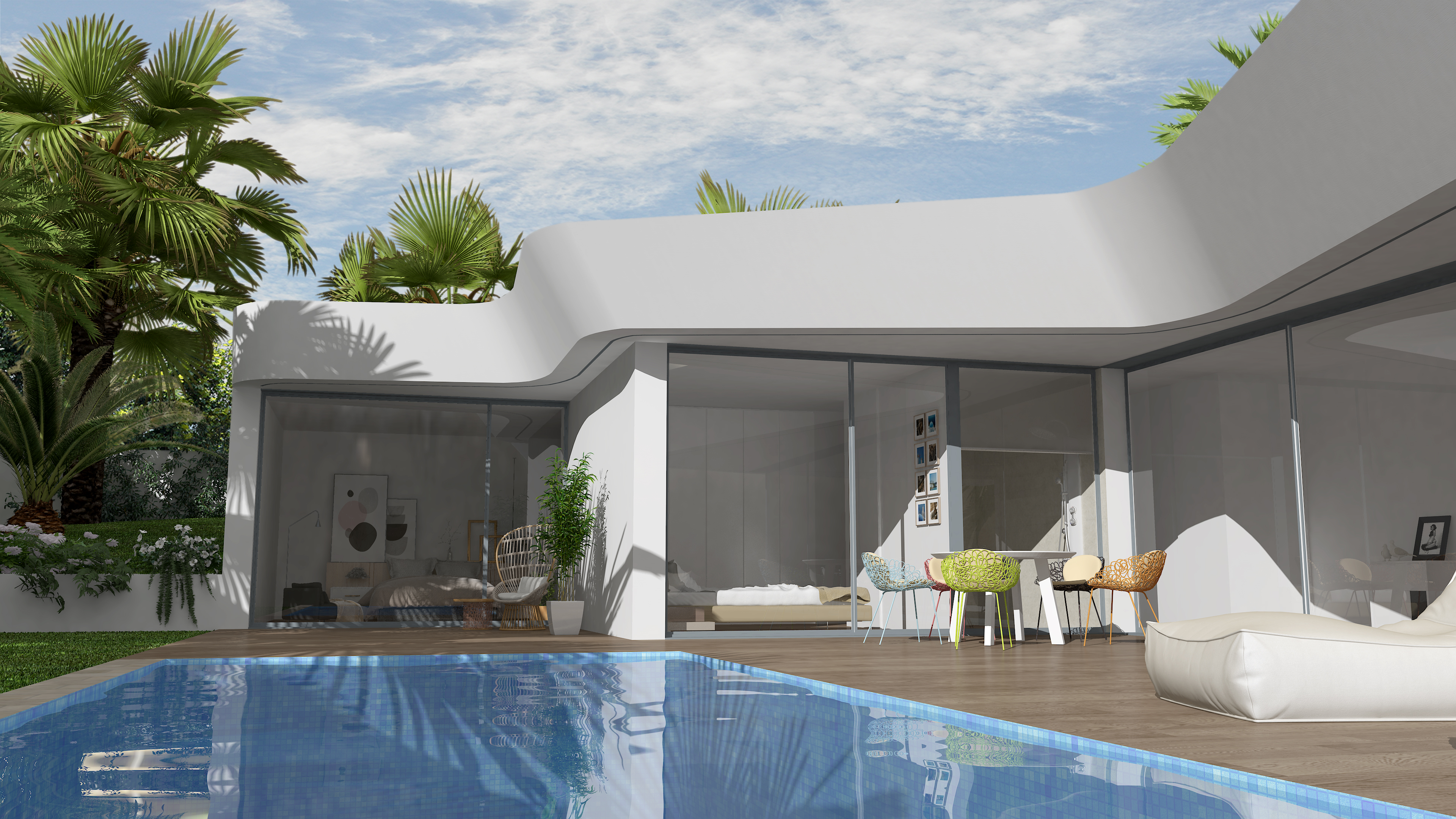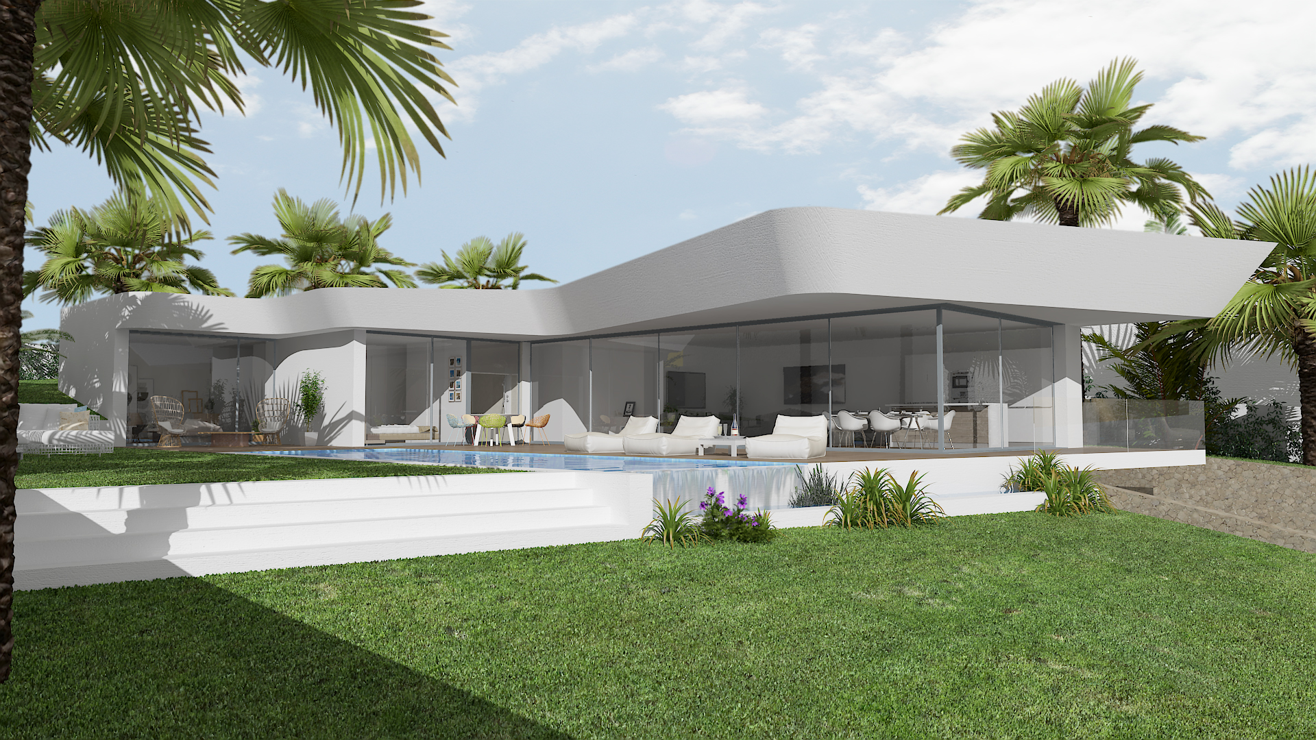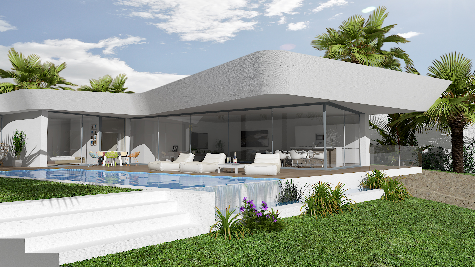New villa under construction in Benissa, only 1.4km from the sea and close to all amenities. The property has 235m2 on a 1.000m2 plot, 3 bedrooms, 3 bathrooms, wc, spacious living room, kitchen. It also has an independent guest studio with bedroom and bathroom. Landscaped garden with private swimming pool. Extras: air conditioning, preinstalled floor heating, alarm system,