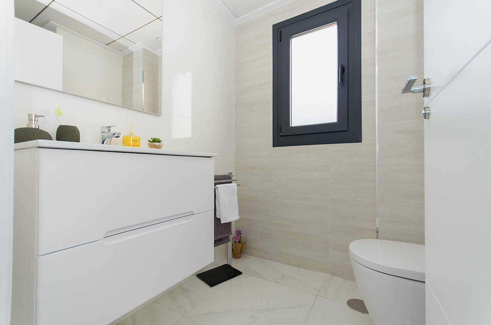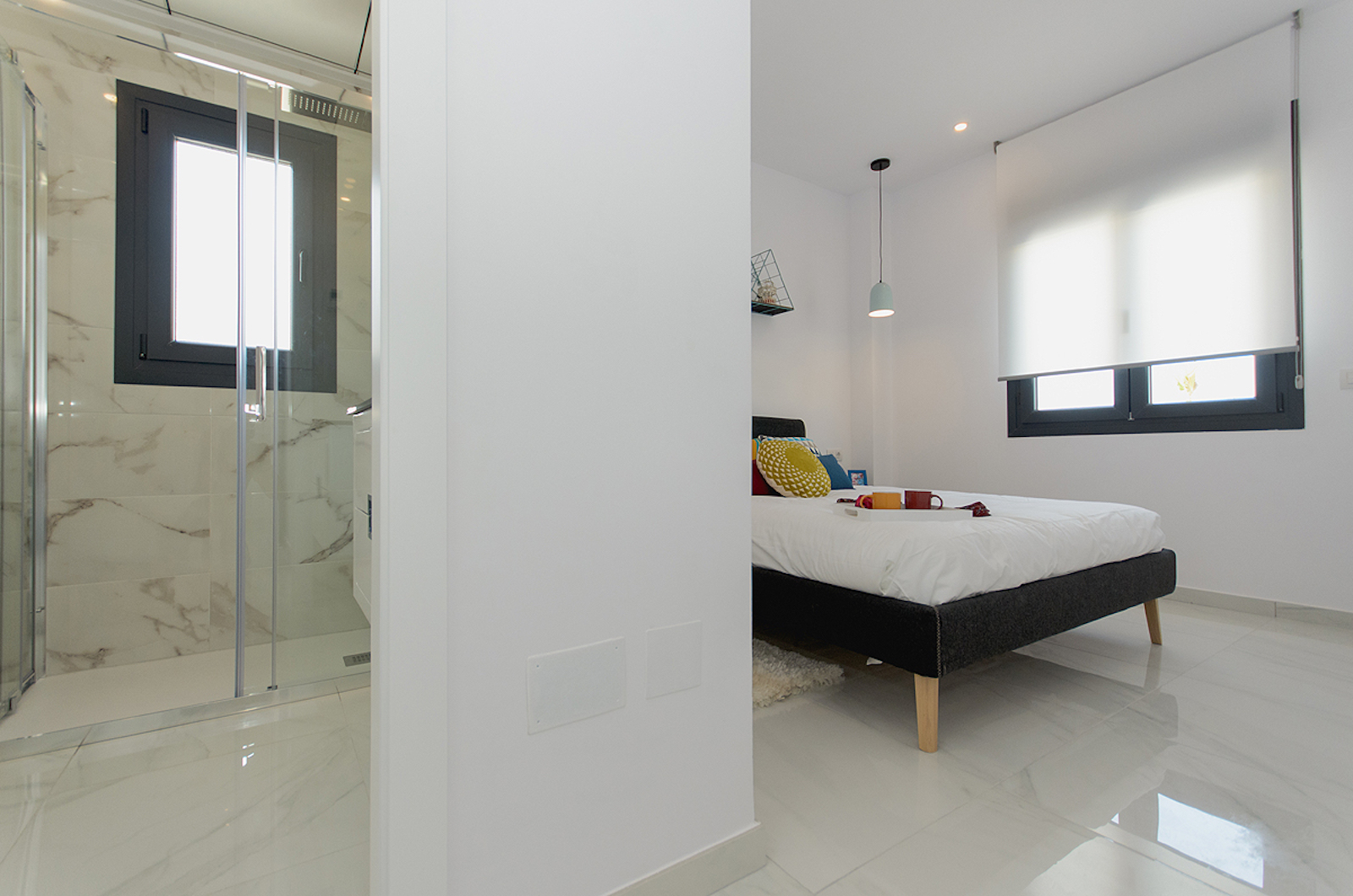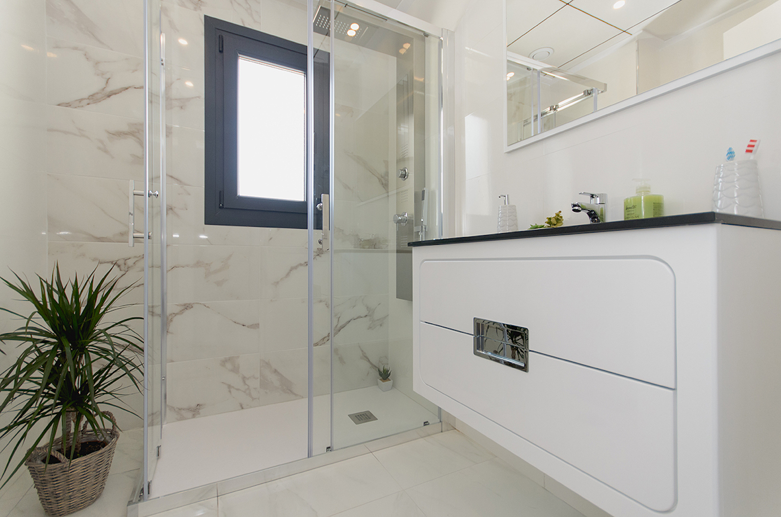 The qualities and standard finishes of this new work are excellent: all homes include automated shutters, underfloor heating in all bathrooms, pre-installation of air conditioning ducts, hydromassage column in bathroom ..