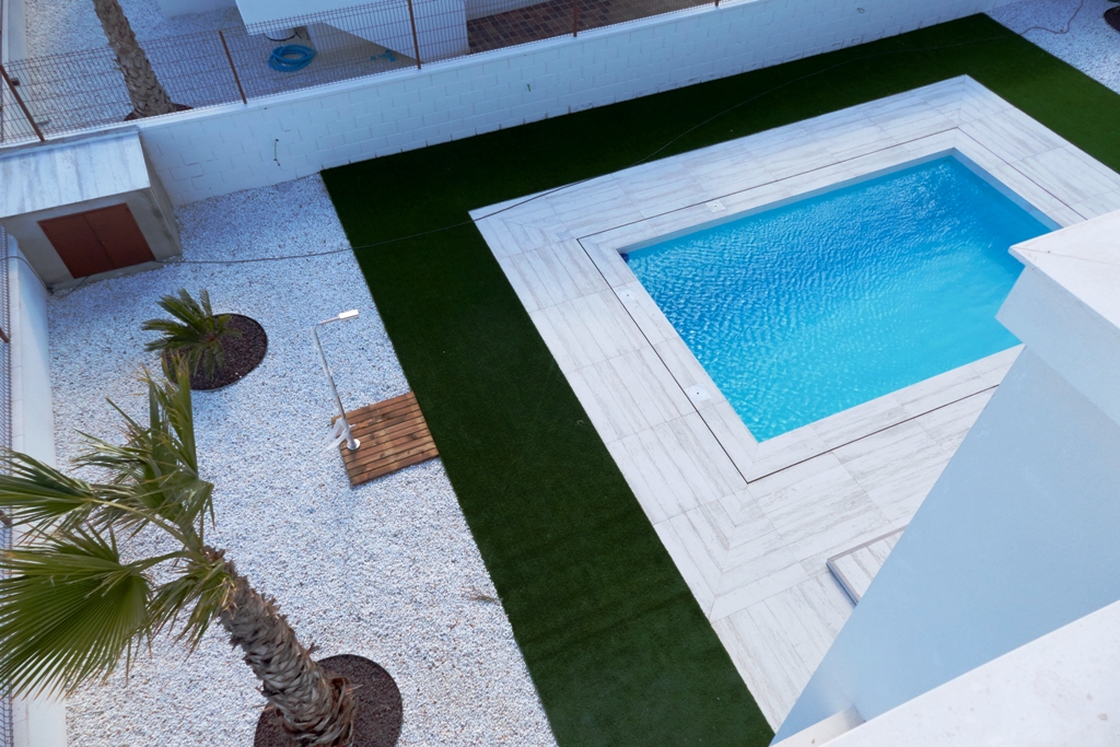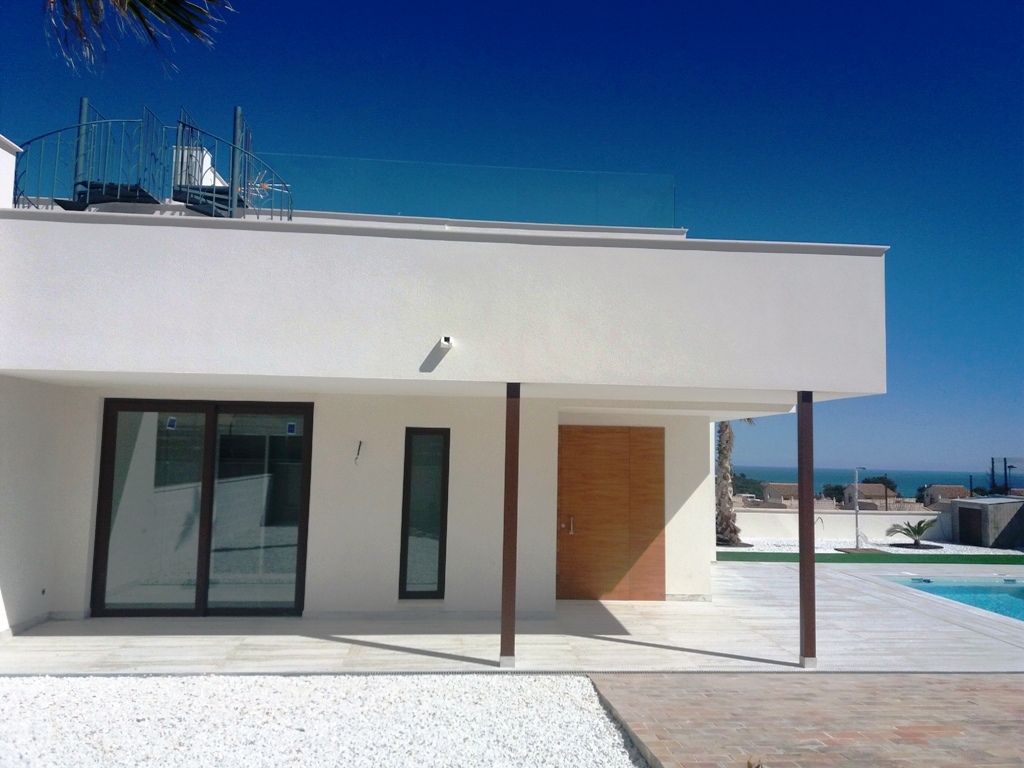 Villa with independent plots, modern style. On their outside areas consist of terraces, chill out area, private gardens, B.B.Q. area, private pool and parking place.