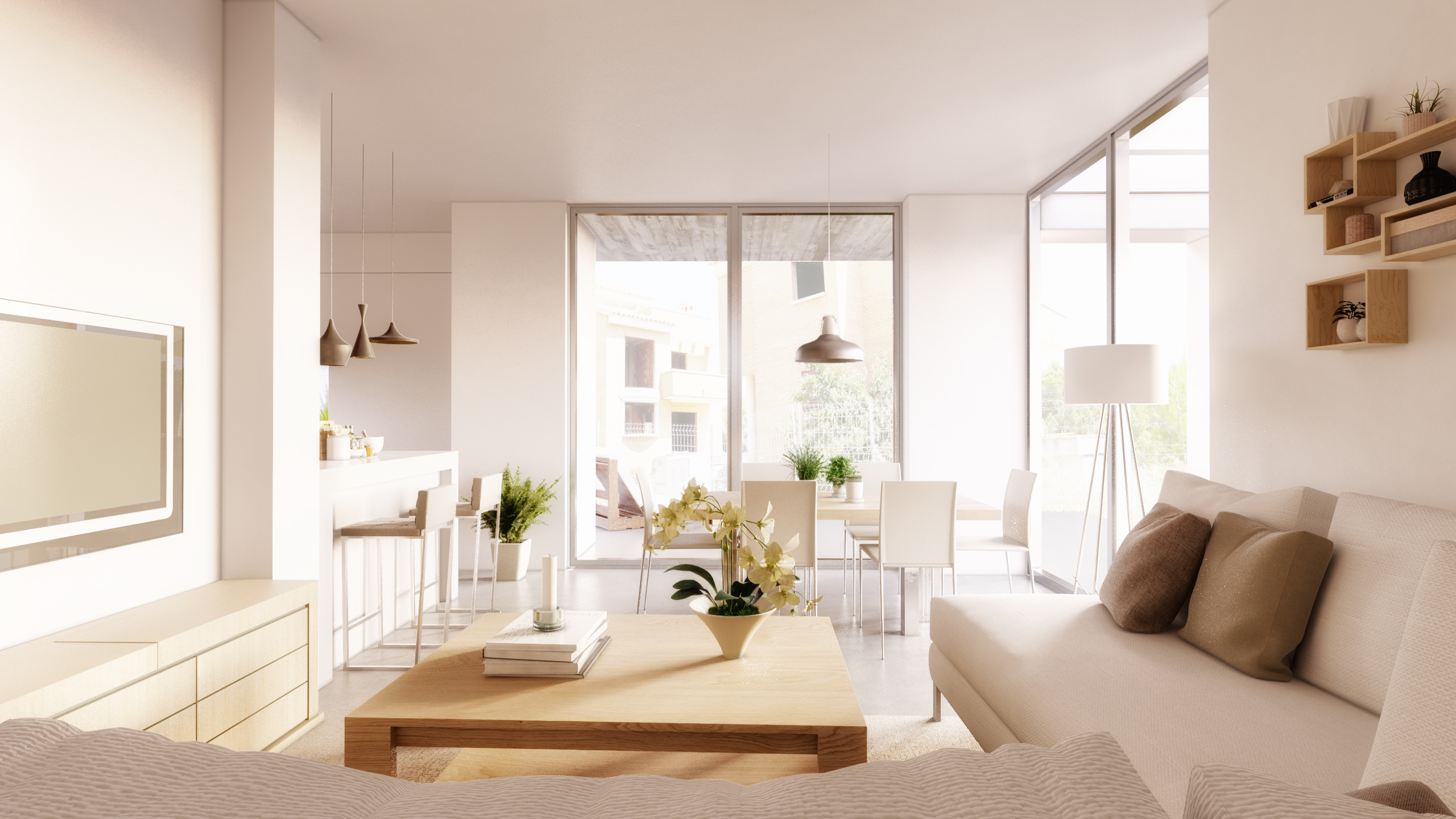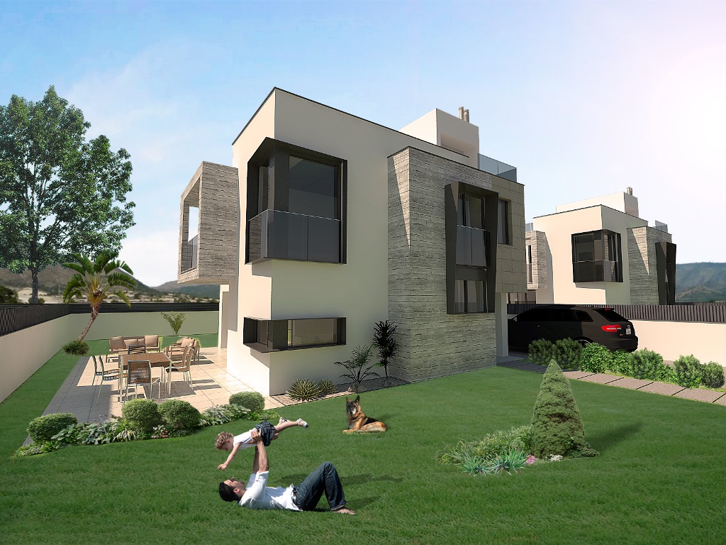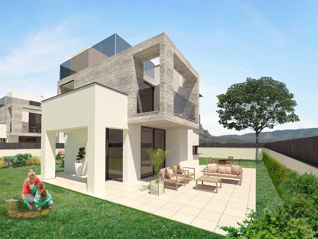 All the houses have living - dining area, kitchen, 4 bedrooms, 2 bathrooms and 1 toilet. On the outside there are terraces and a private garden.