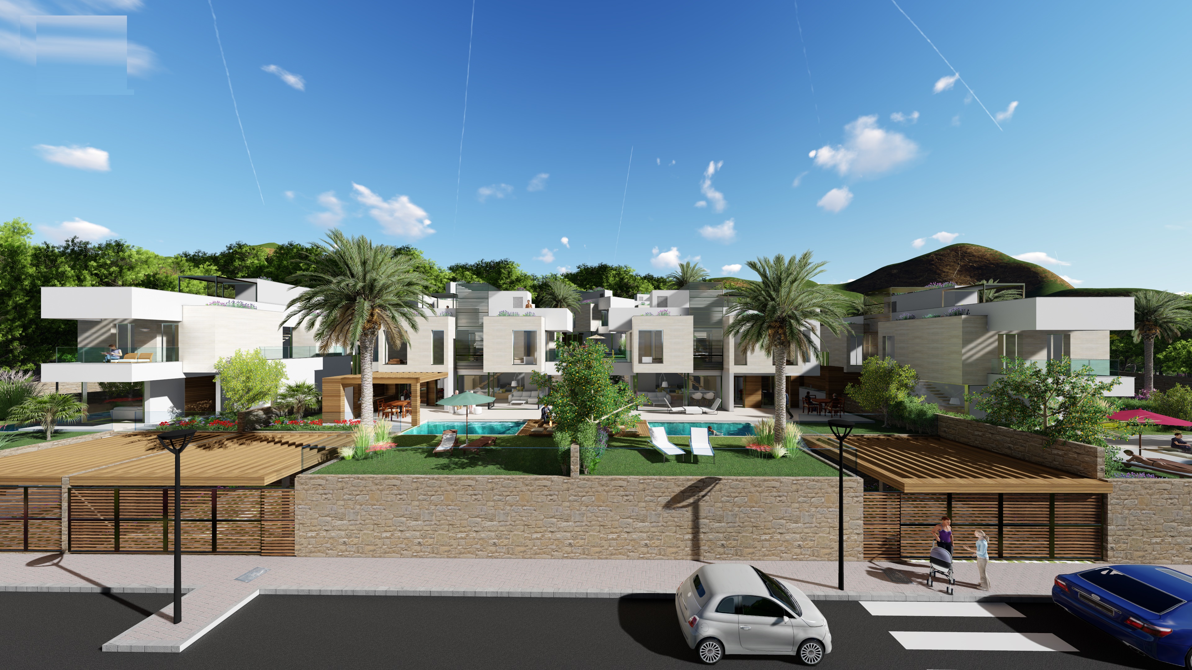 8 Luxury villas with independent plots and modern style with terraces, chill-out zone, private gardens, barbecue area, private pool and independent parking.