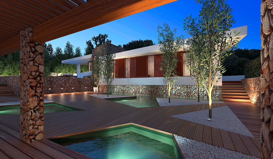 This newly-built villa is on two floors and has a very modern construction. Immensely spacious, with large windows and open spaces, wooden floors and all the comfort you would expect from such a wonderful property of over 300m2 of living space. There is an open plan area with a large living room with lovely views, and dining area with direct access to a very well designed kitchen which has views of the surrounding vineyards. One master bedroom with two en-suite bathrooms and large wardrobes. There are two guest bedrooms each with an en-suite bathroom and guest toilet. Facing the house, and just across from the terraced area where there is a BBQ, fountain and summer pergola, there is a small old town house of 90m2 that has been converted into a guest house with two bedrooms, two bathrooms, a living room and small service kitchen. It has been perfectly restored, respecting the character of the original house that was built back in the 1940’s. There is a beautiful garden and an interesting pool built on two levels with a small waterfall over a stone wall.