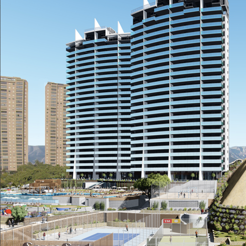 Benidorm Beach has 196 houses in a glass tower with spacious terraces with views, ideal for enjoying the outdoors and the fantastic weather of the Benidorm coast. The urbanization has spa, gym, jacuzzi, swimming pools, chill-out, etc. Many things to enjoy!