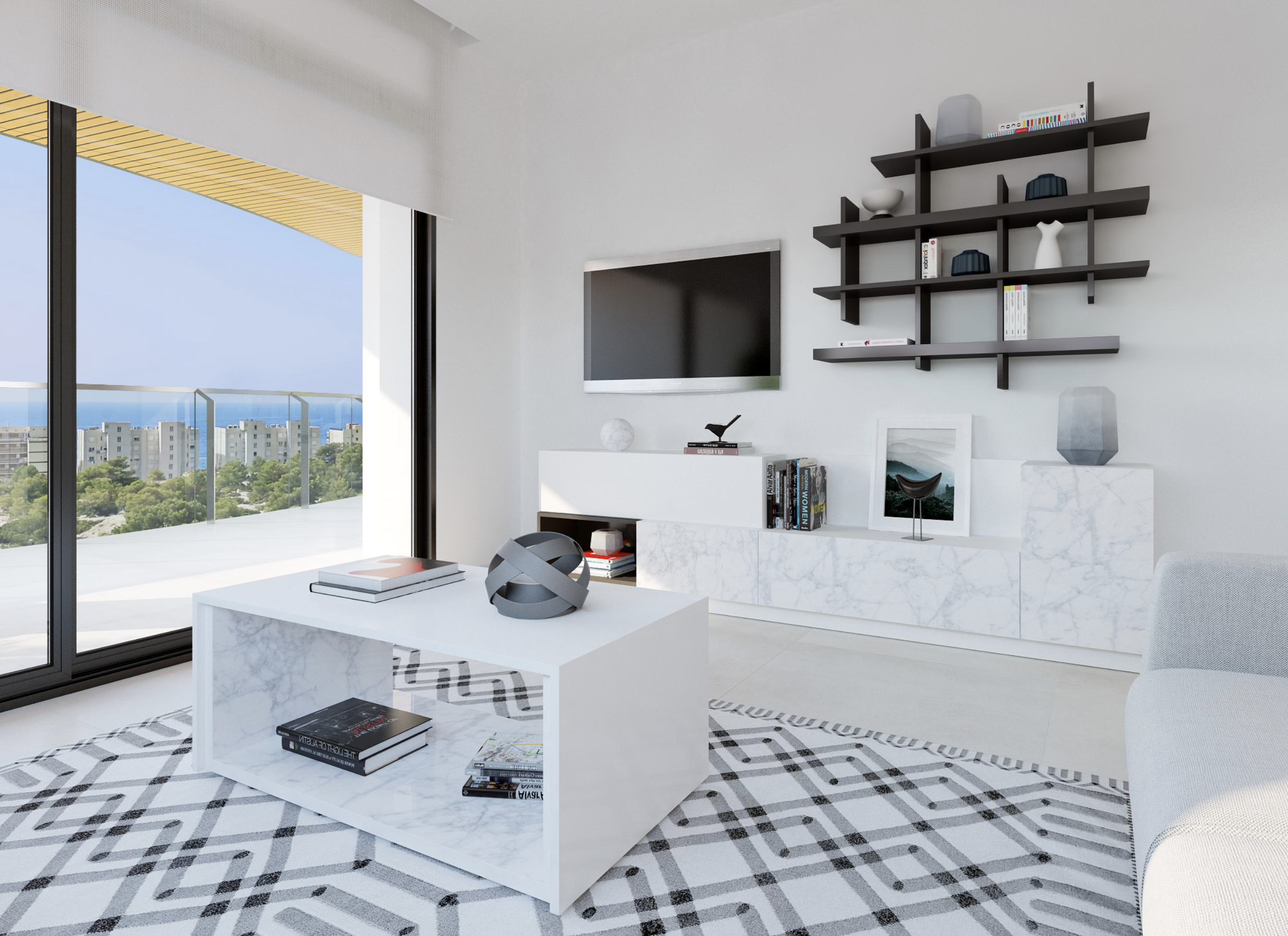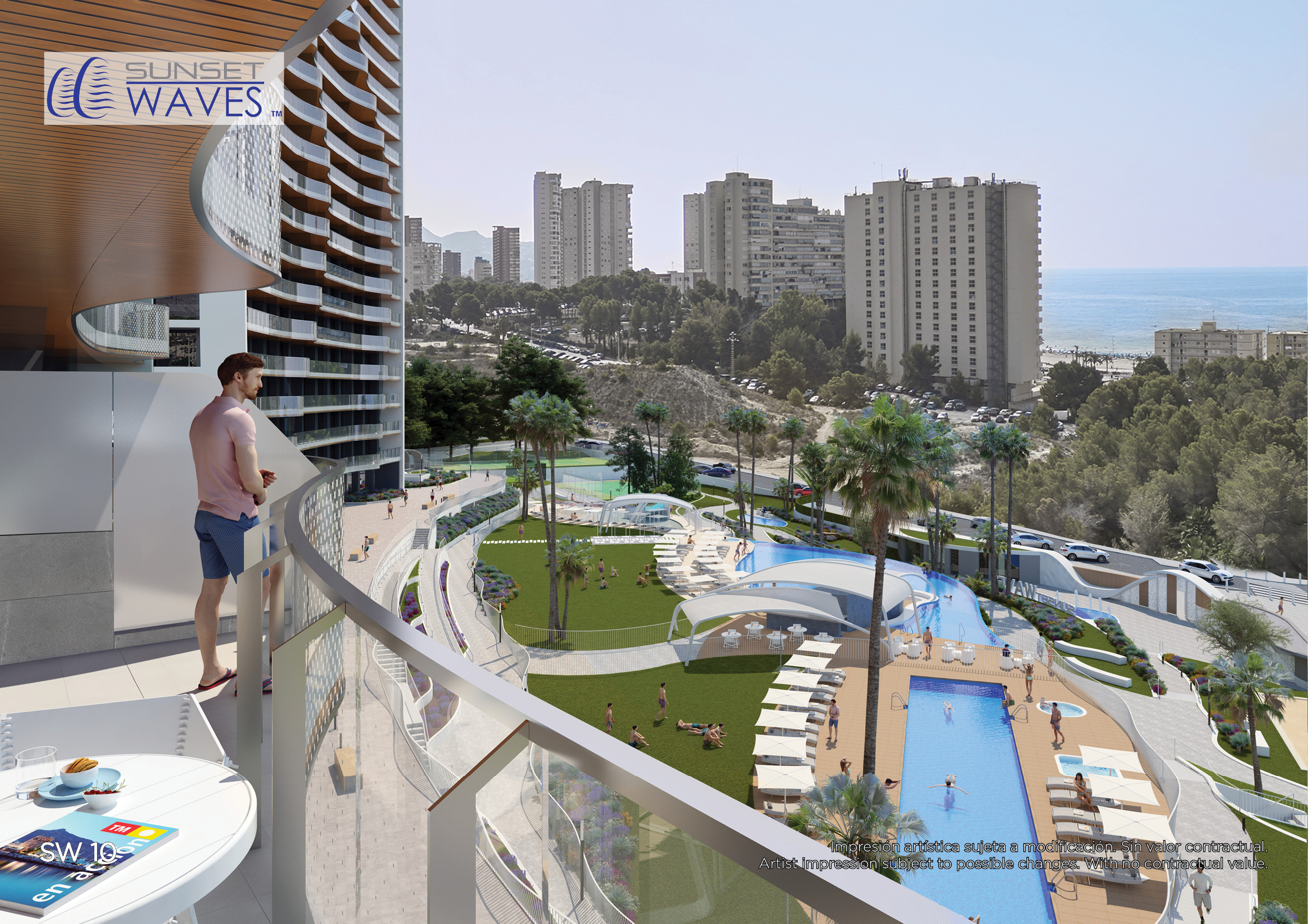 This development has an avant-garde design with a touch of sophistication that modernises the skyline of the Poniente beach of Benidorm.