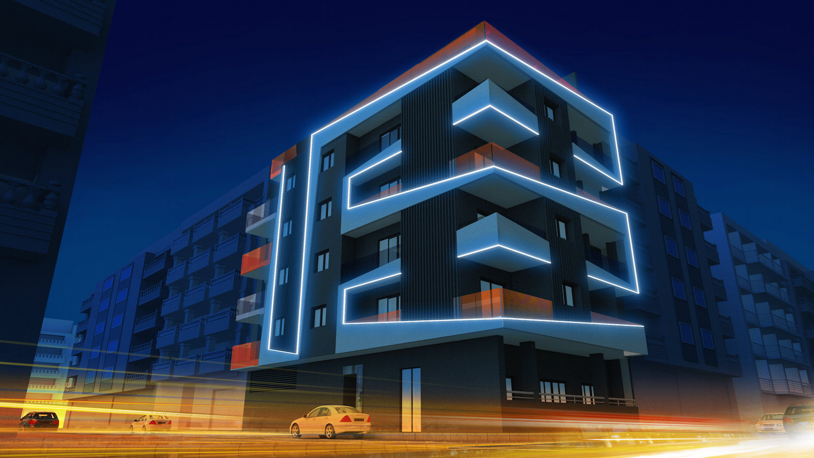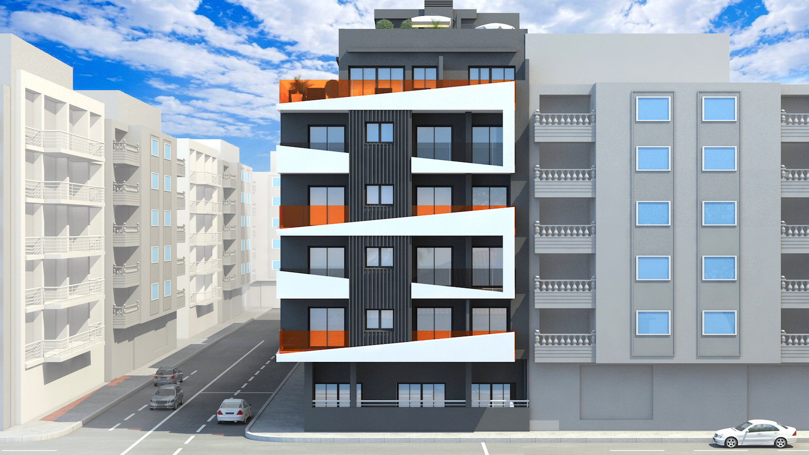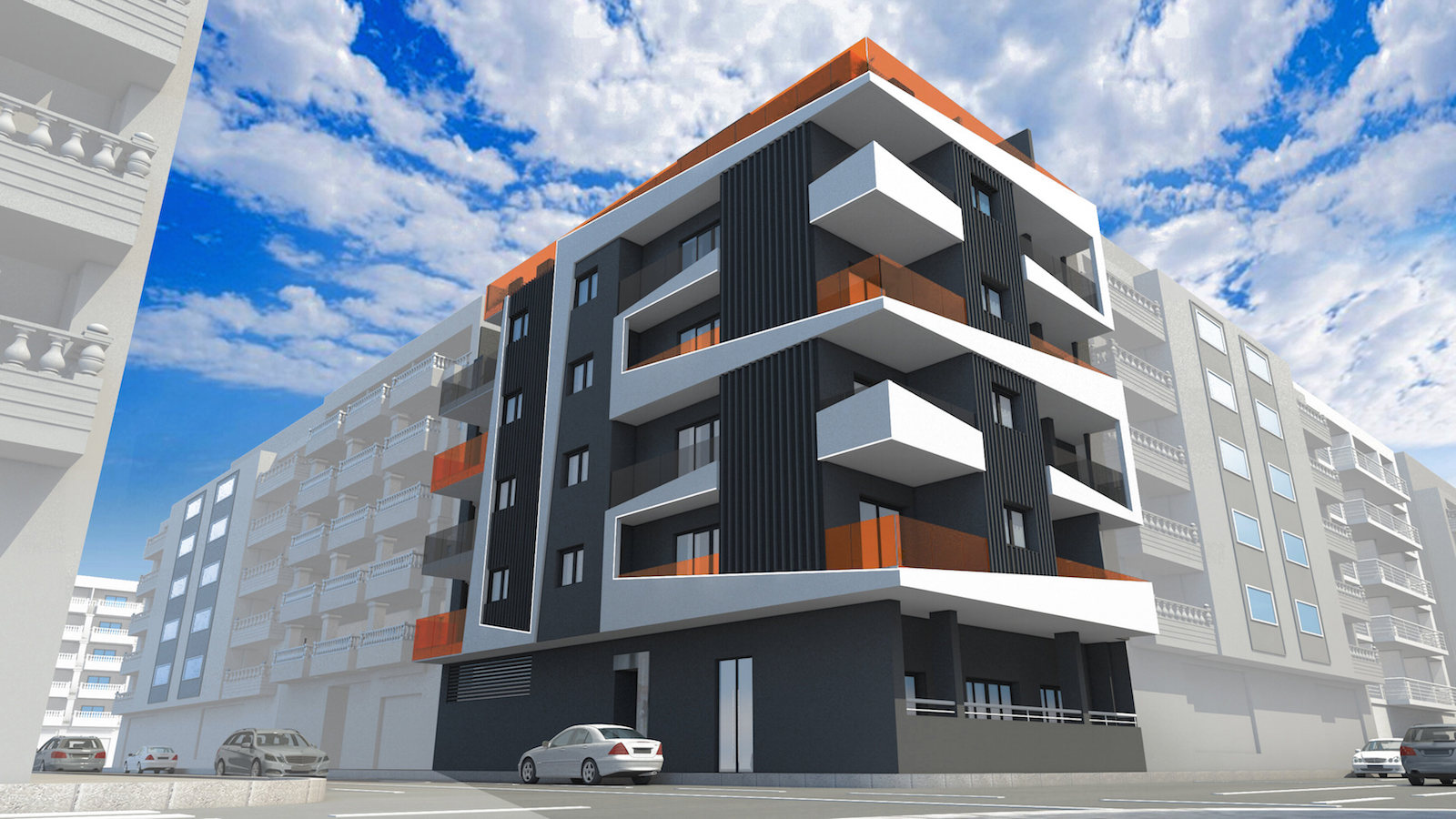 Soon the construction of a magnificent building of 19 apartments will begin. The complex of 6 floors, with a singular and modern facade, includes apartments with 1 and 2 bedrooms, chill-out area, climatized pool and finnish sauna.