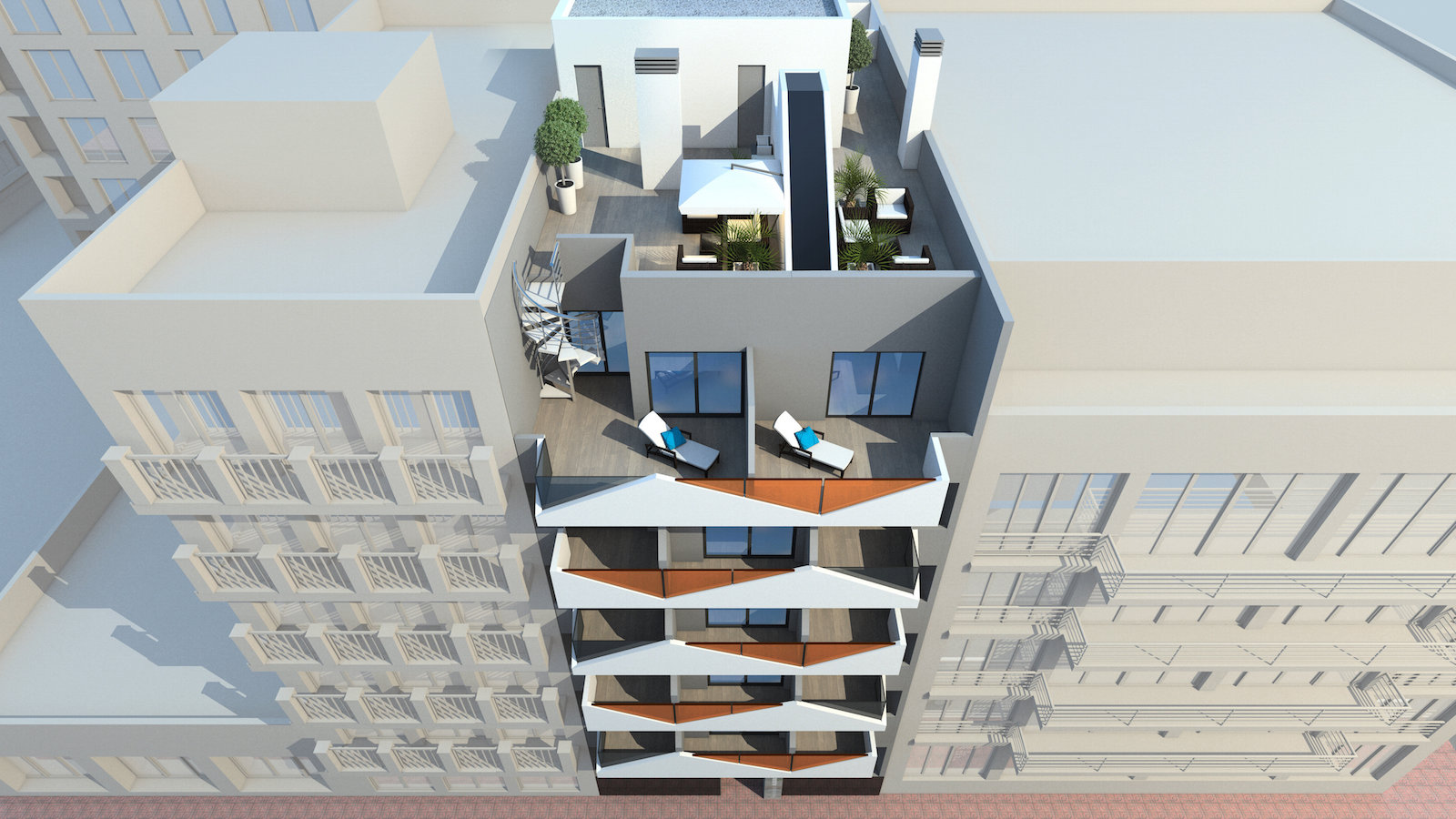Soon the construction of a magnificent building of 16 apartments will begin. The complex of 5 floors, with a singular and modern facade, includes studio apartments, 1 and 2 bedrooms apartments, chill-out area, climatized pool and finnish sauna.