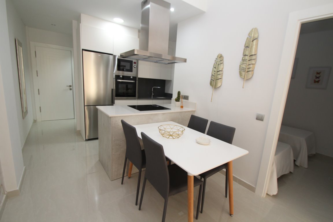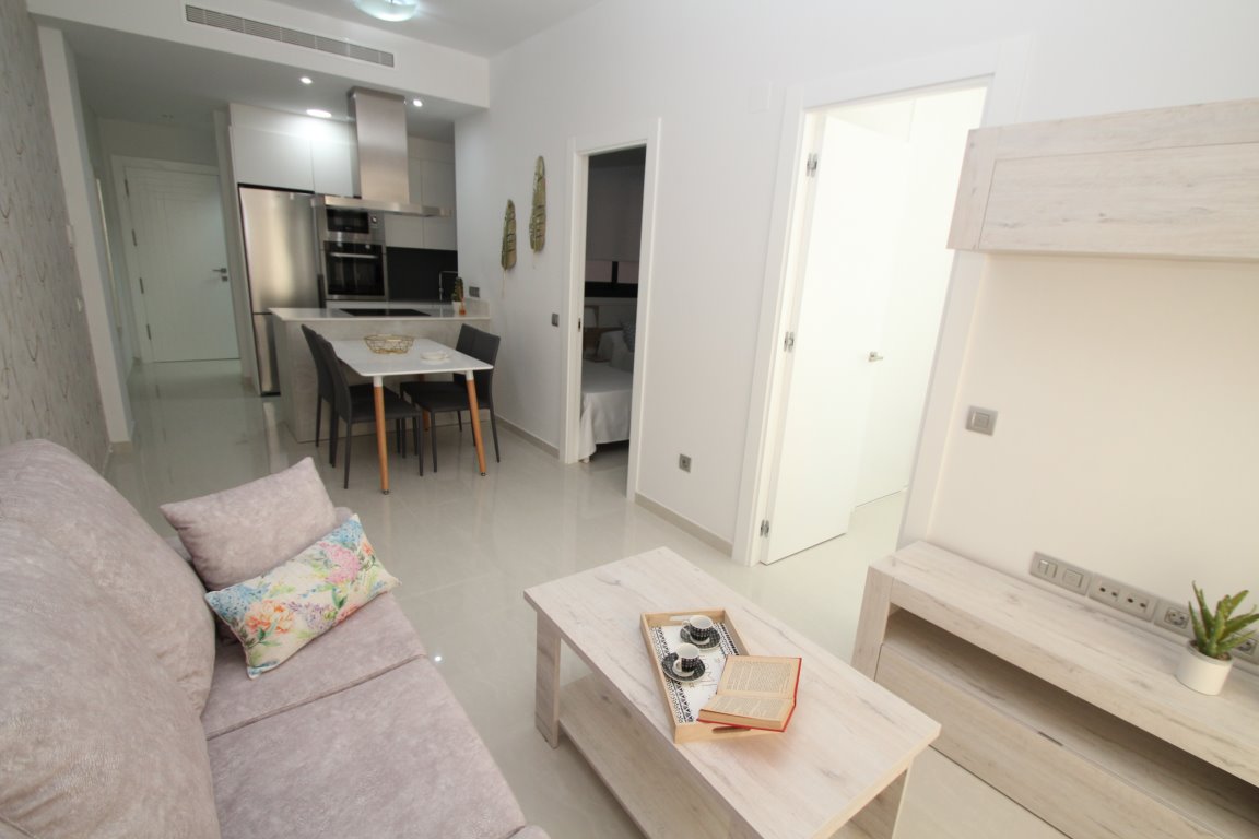Favourable located in the heart of Torrevieja you find Las Cibeles apartments. This development consists of 137 apartments of 1, 2 and 3 bedrooms. The building has 3 floor, ground, first and top floor. These residential benefits from having beautiful communal areas and swimming pools. These apartments include in the price a furniture pack, white appliance, curtains,interior and exterior lighting and mirror and shower screen in the bathroom. Parking space optional for €10.000 and storage for €4.000.