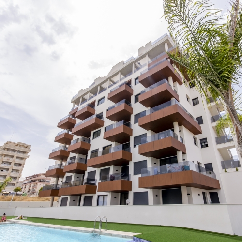 La Roqueta is just 500 metres from the beach. It is a modern building in the heart of Guardamar del Segura. The La Roqueta building has a total of twelve apartments on four floors. The properties have two or three bedrooms and two bathrooms, large terraces with panoramic views and spacious, bright rooms. All the homes have a private sun terrace and storage room. On the ground floor, the building has a jacuzzi for residents to use, underground parking and a shop.