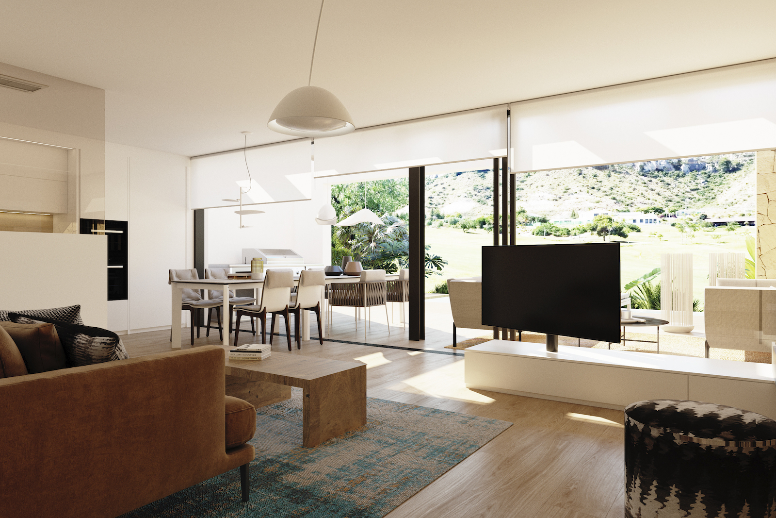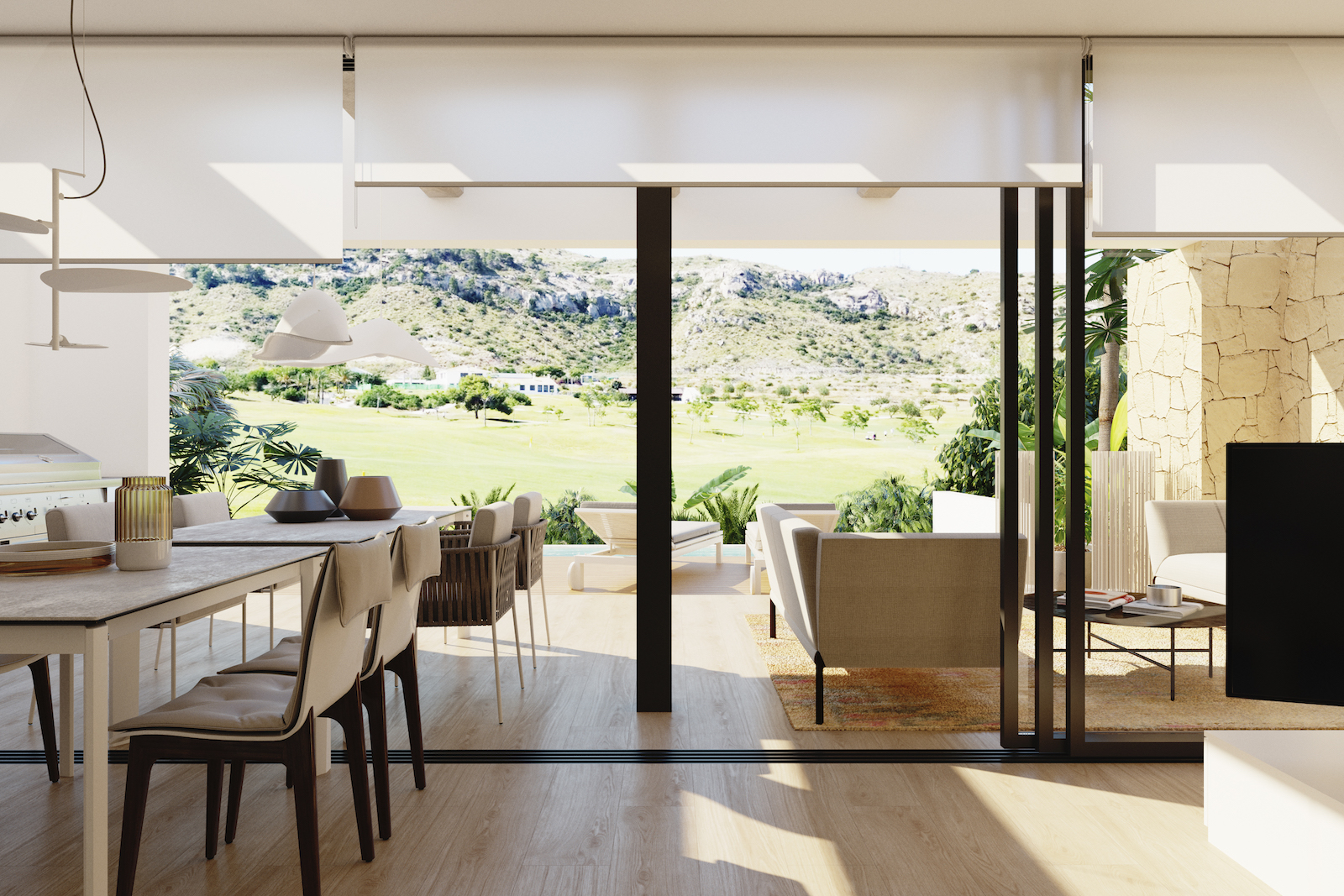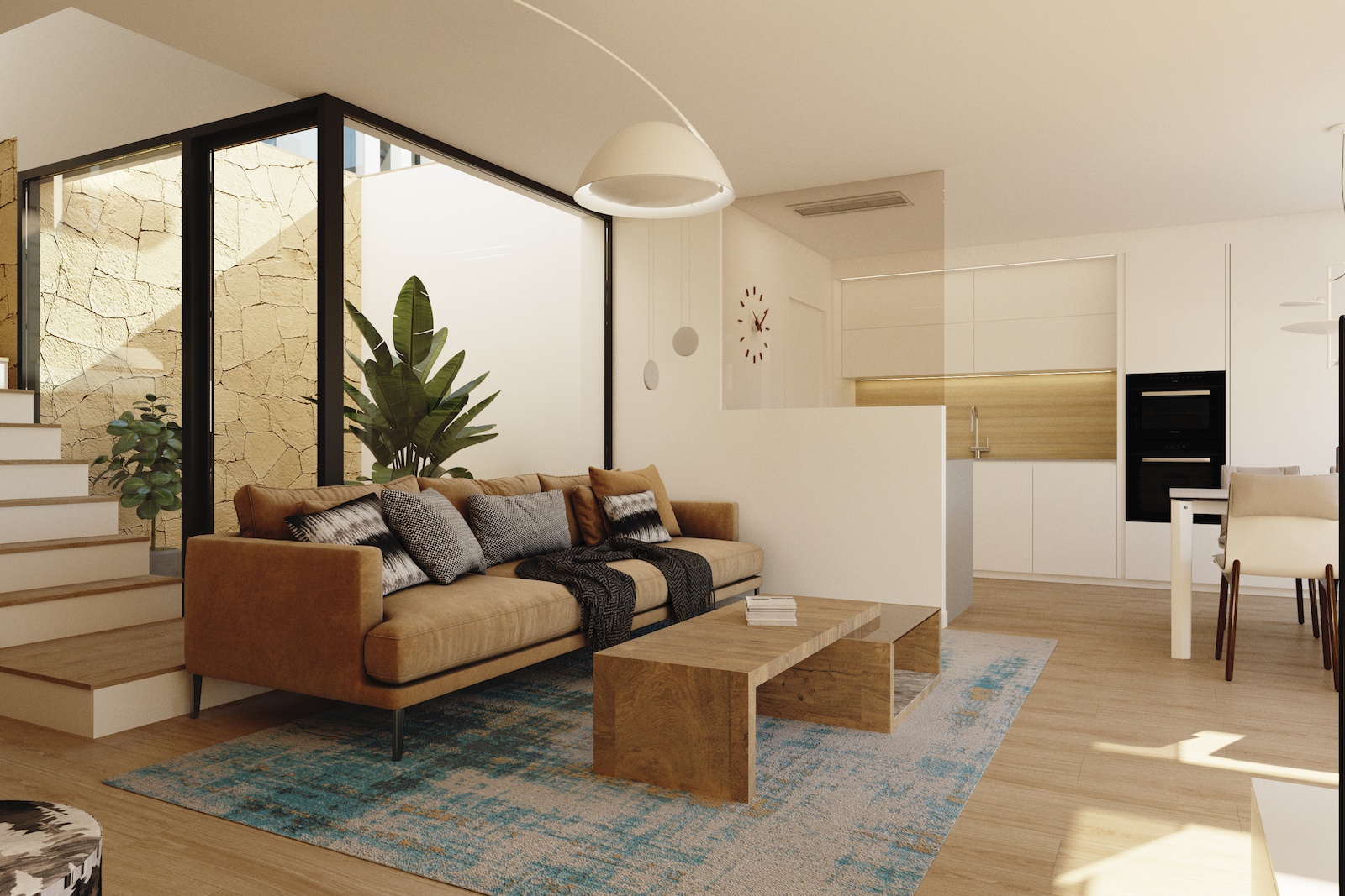 Semi-detached Makalu villas consist of two terraced collective houses minimally attached with two floors, own parking space outside, private pool, inner courtyard, terrace, solarium and storage room.