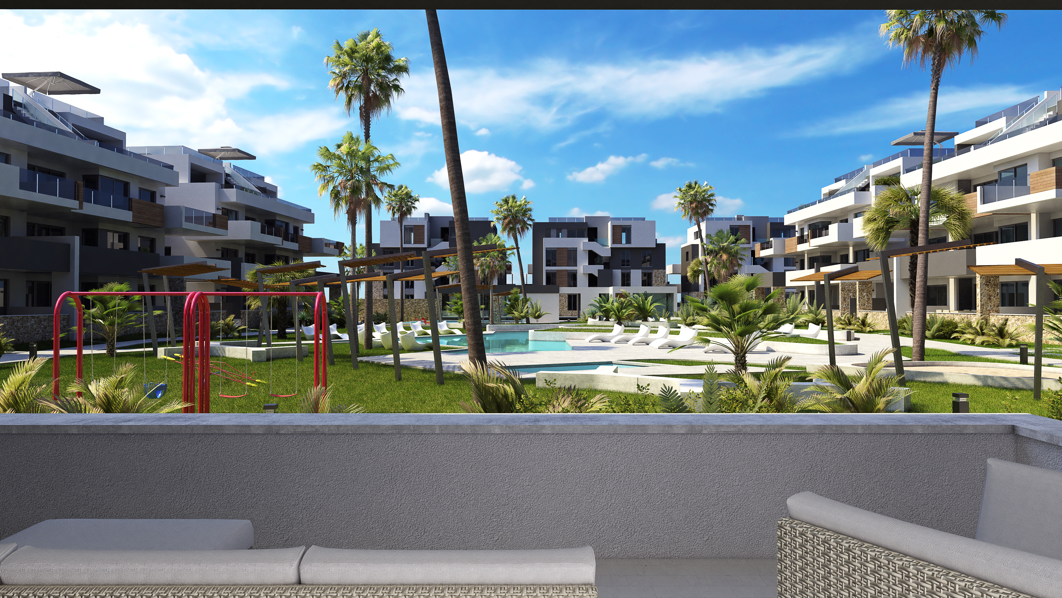 The Sunrise III residential complex is composed of 11 apartments in each of the 3 blocks that make up the urbanization, homes with 2 bedrooms and 2 bathrooms with large terraces, all the houses facing south.
