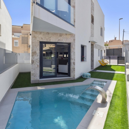 8 independent Villas with 3 bedrooms, 3 bathrooms and private pool included. Located in the heart of Orihuela Costa. Very close to the golf courses, beach and shopping centers