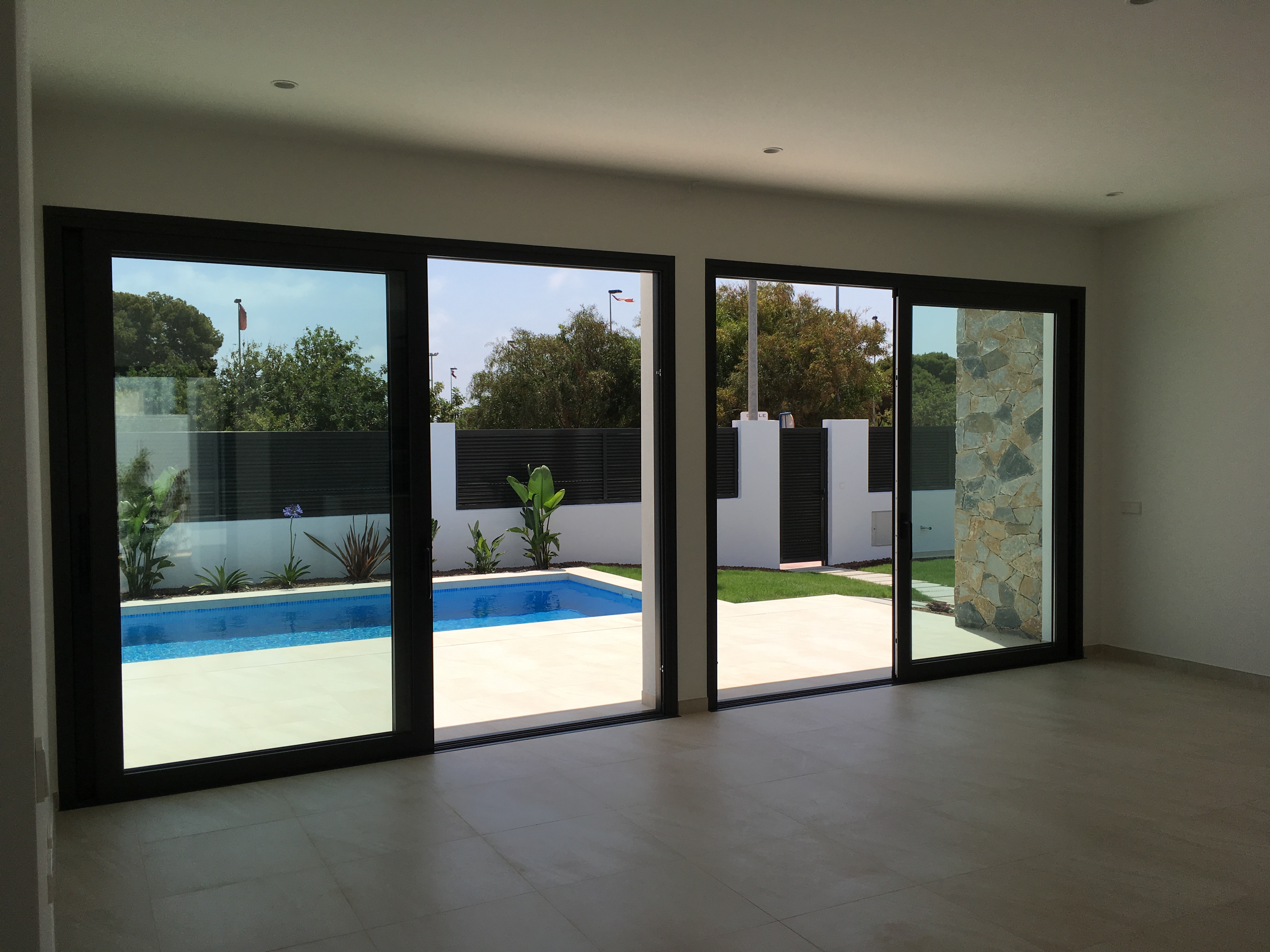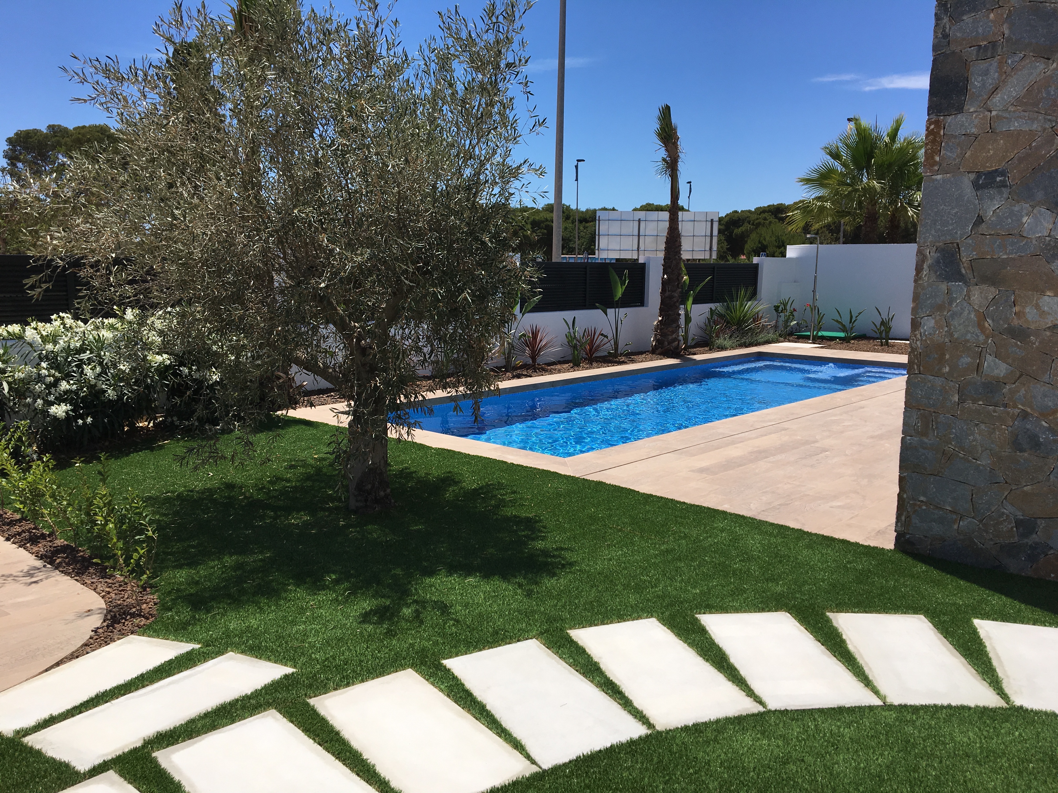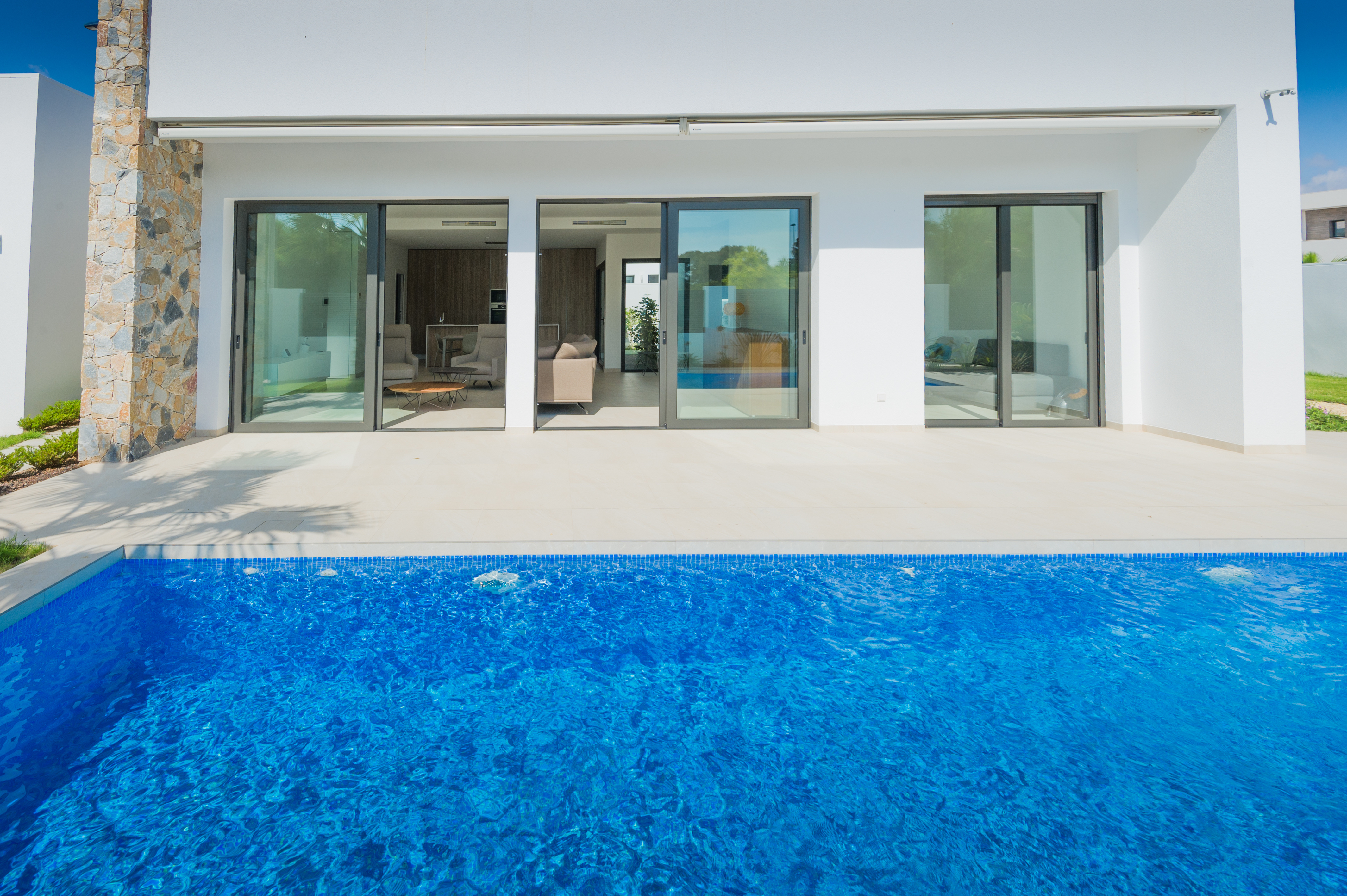 Magnificent detached villas with pool in Pilar de la Horadada, close to all services, 1 km from the golf course Lo Romero and 3 km from the beach.