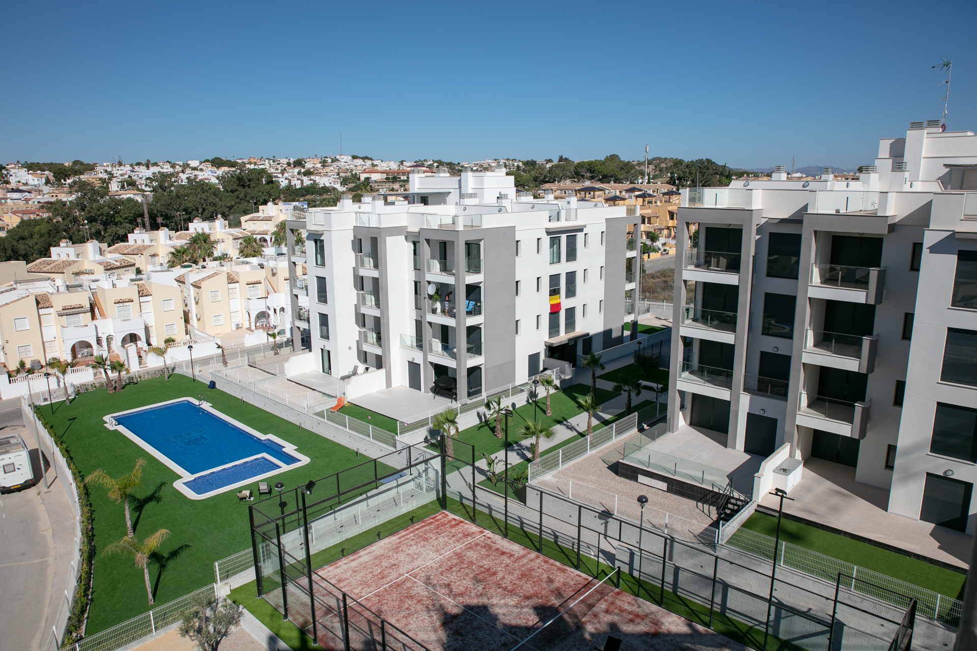 Private complex of 144 modern apartments, consisting of 6 blocks, large green areas, swimming pools, and paddle tennis court.