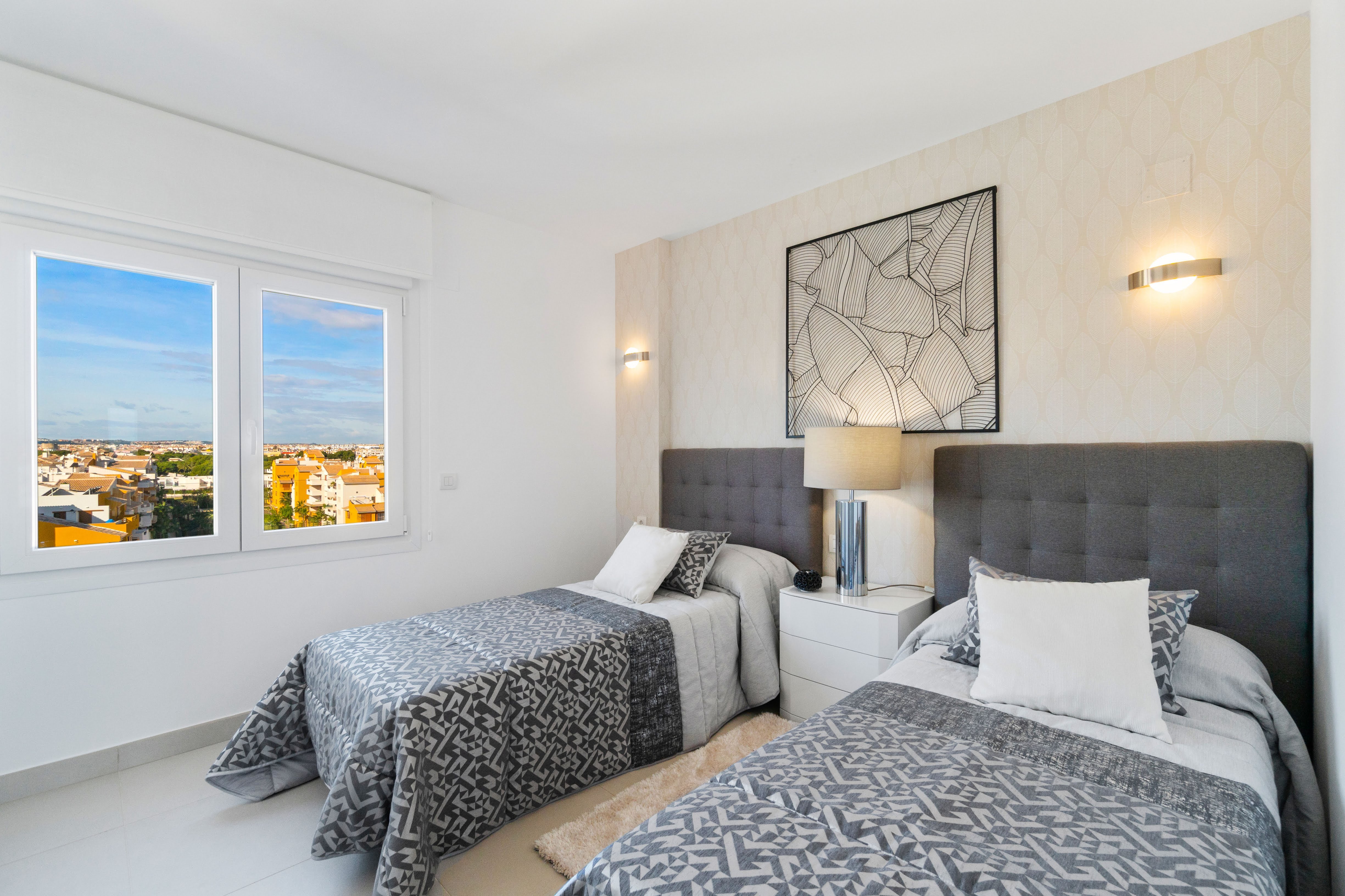 The communal garden and swimmingpool area offers 3 swimmingpools (infinity, bathing and children’s pool), jacuzzi and multipurpose sports court. In addition like the rest of the complexes in Señorio de Punta Prima there will be installed CCTV for monitoring accesses and common areas, connectable to Security Service circuit.