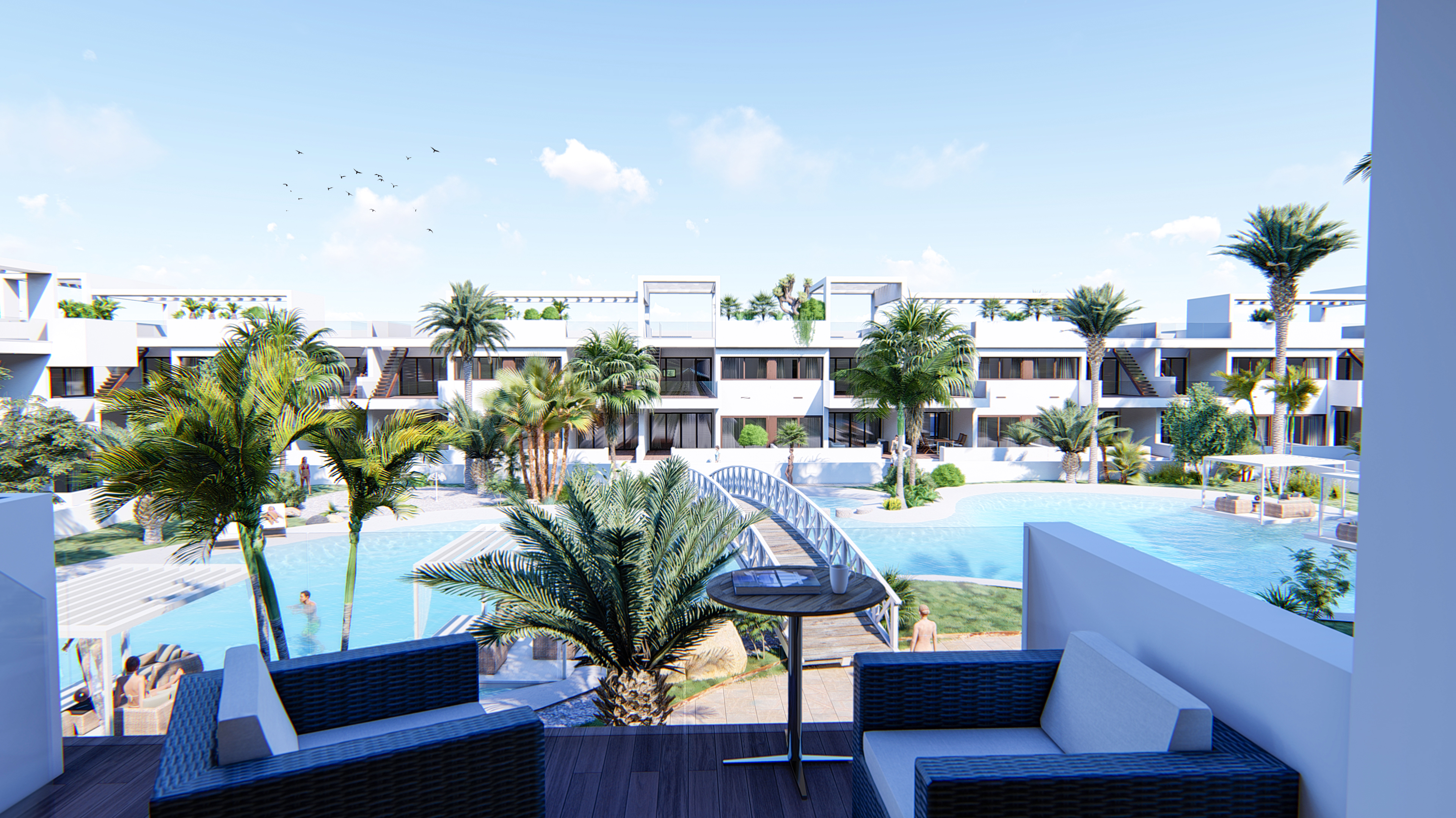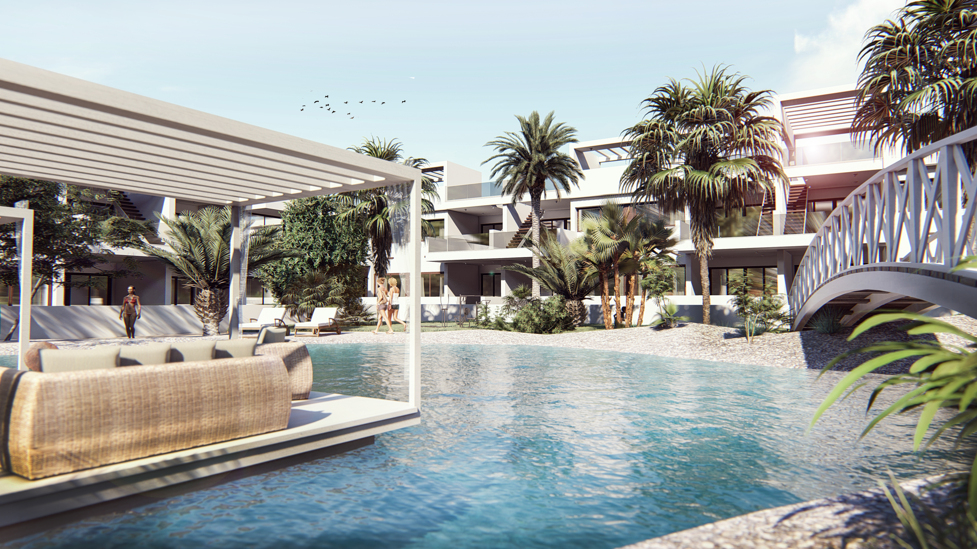 The development is located right in front of the natural area of the Salinas of Torrevieja giving you incredible views of the Laguna Rosa and the Mediterranean Sea. Surrounded by all services, restaurants, hospitals, supermarkets and golf courses, living in our resort will make your life much easier.