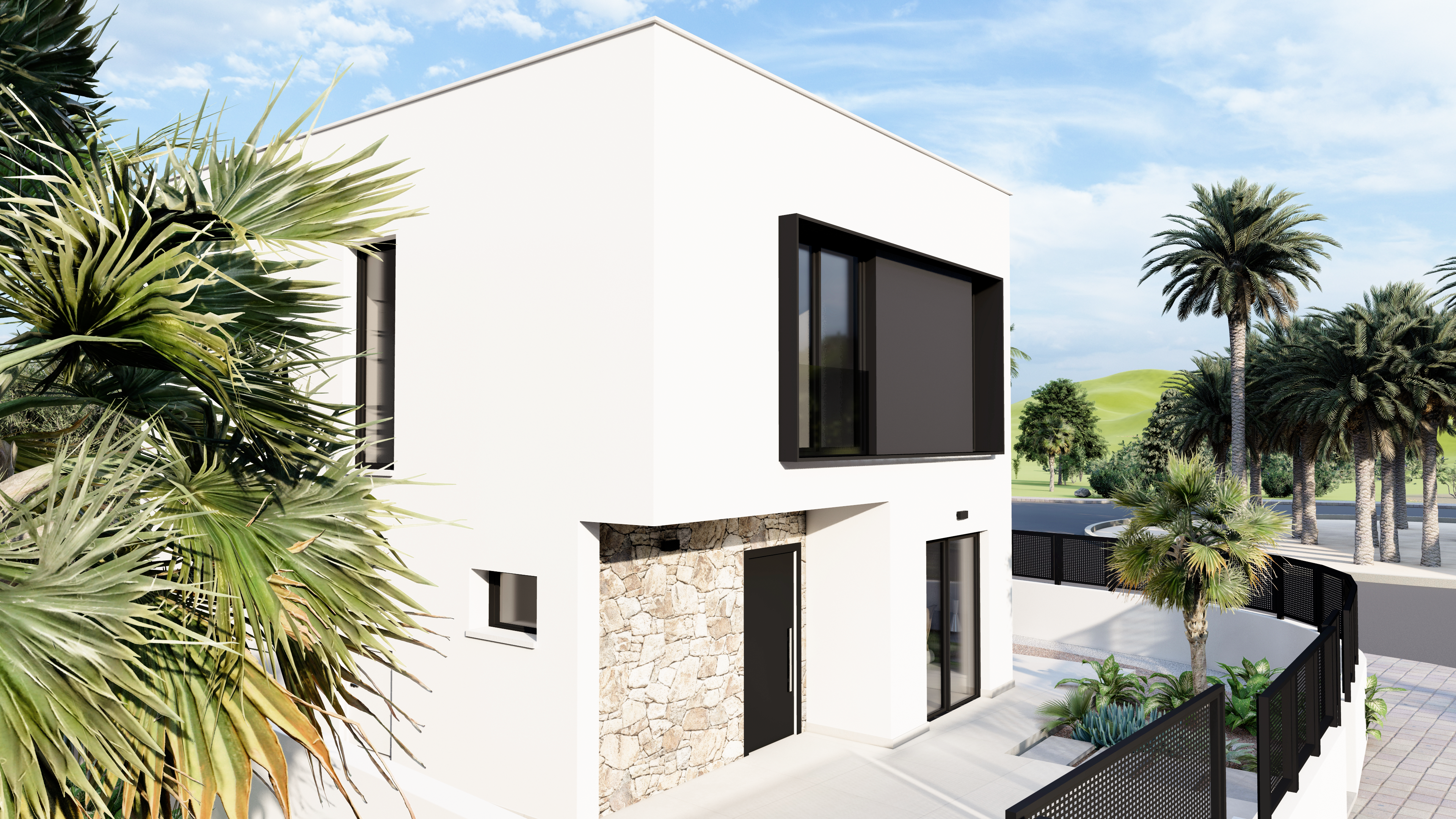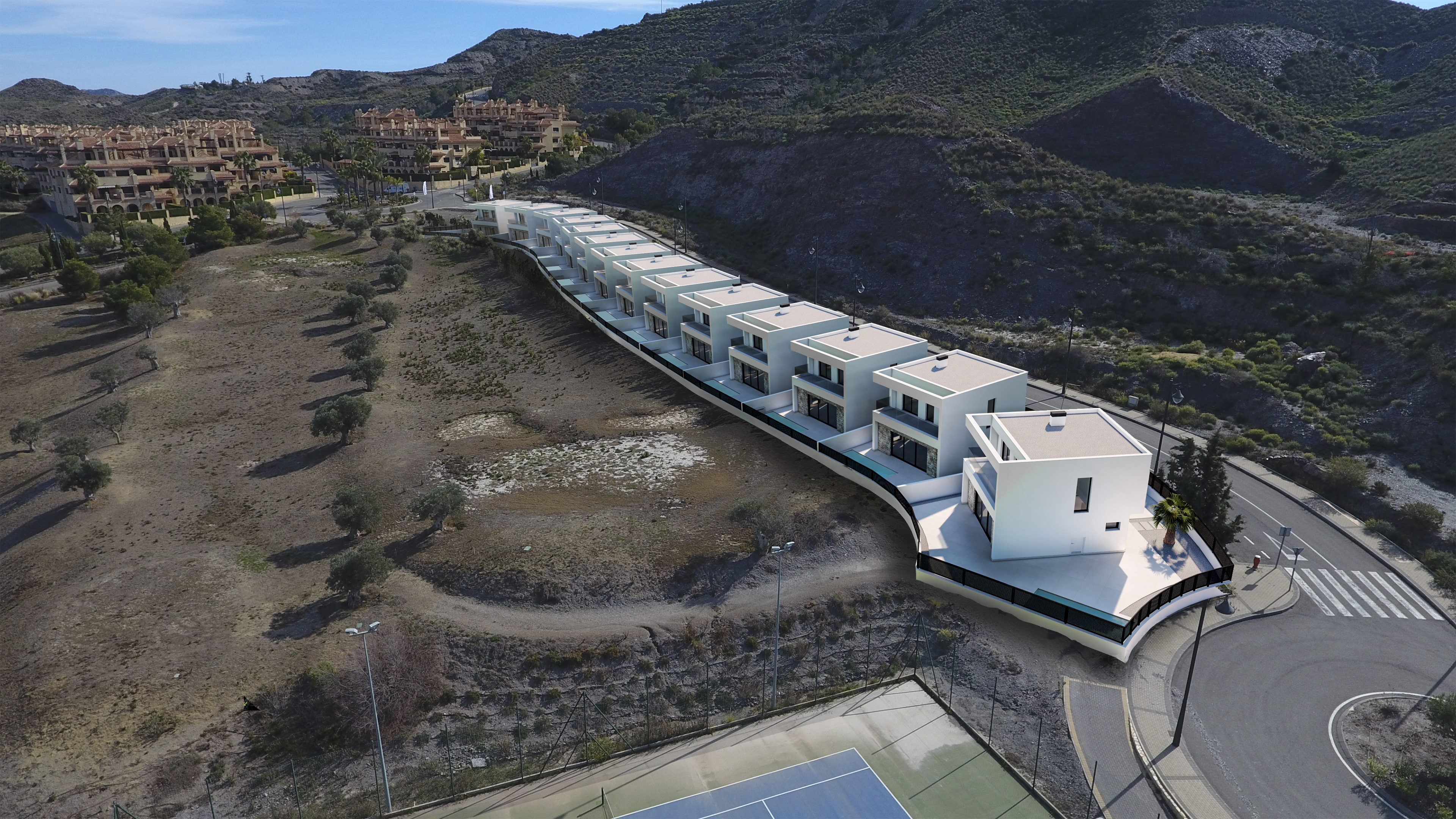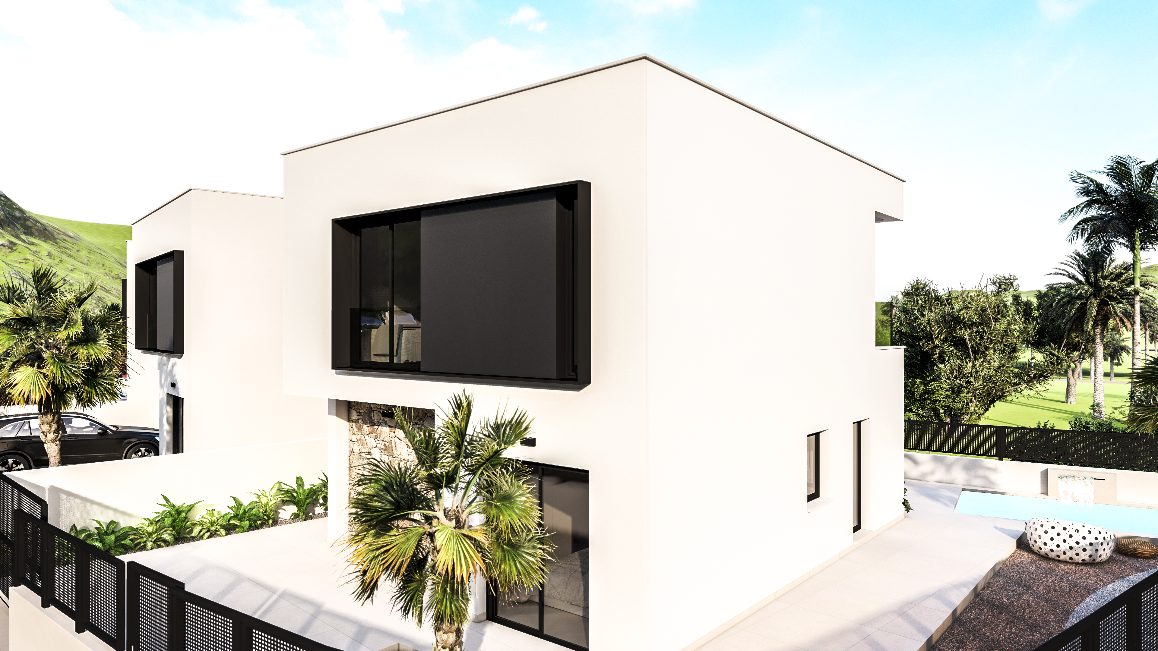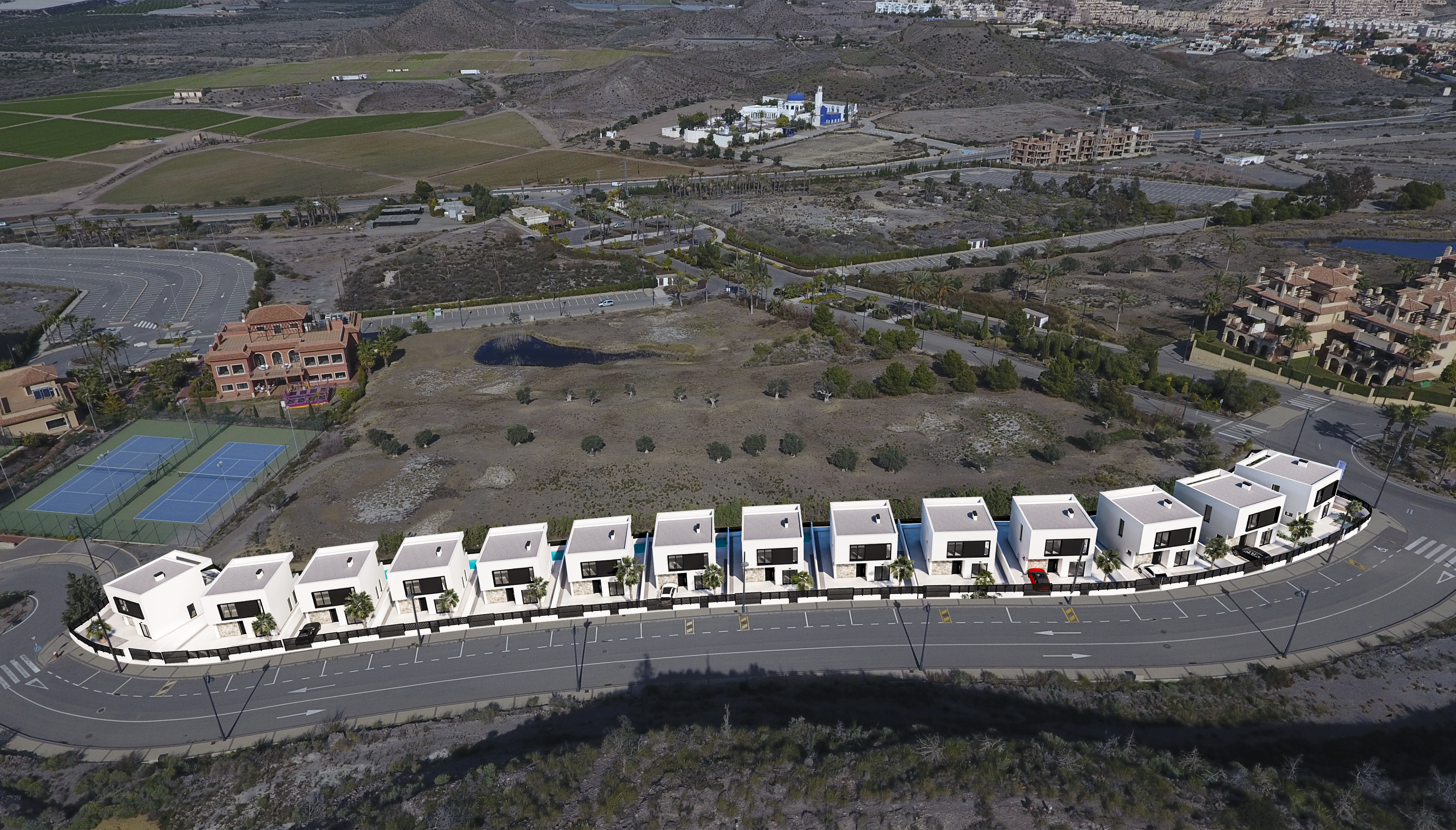 The residential is composed of 14 exclusive villas of 3 bedrooms combining modern design, quality and functionality. The location offers amazing views to the pitch and putt golf of Isla del Fraile urbanization and to green spaces and mountains that surround the area. A Villa consists of one large living room, a furnished kitchen, 3 bathrooms and terrace. Each villa has its independent plot with terrace, garden and pool and parking space.