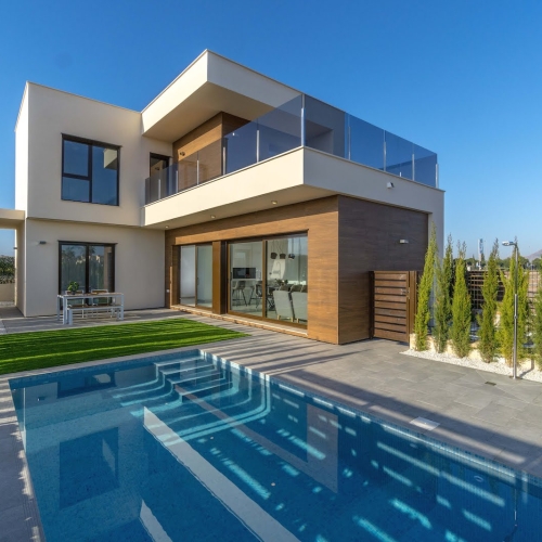 Residencial Vela Latina Golf II is a luxury complex of 5 one level terraced Villas with private pool and parking space in the plot. The houses have terraced area on the ground floor and a large solarium on the first floor which allows enjoying all hours of sun, every day of the year.