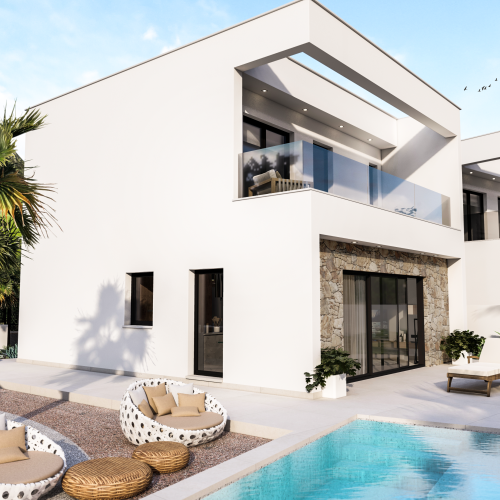 New development: Levansur Home Six, located in Águilas, Murcia, which offers privileged views and a perfect connection with nature, while having easy access to key services. This exclusive proposal is designed with 36 apartments with 2 and 3 bedrooms distributed in 4 modern blocks, equipped with 2 community pools and a community basement with parking space and storage room; and 10 elegant villas with 4 bedrooms and 3 bathrooms, each with its private pool and almost all with direct access to its garage.