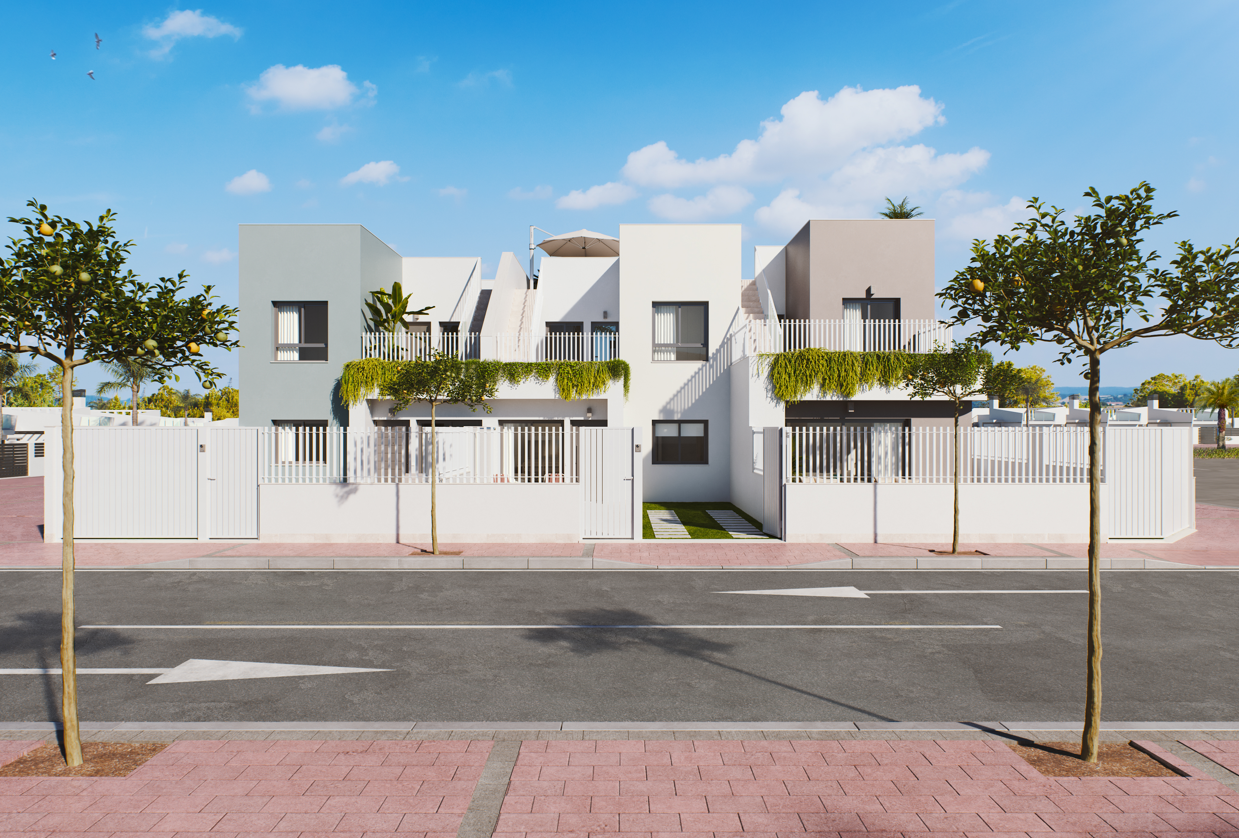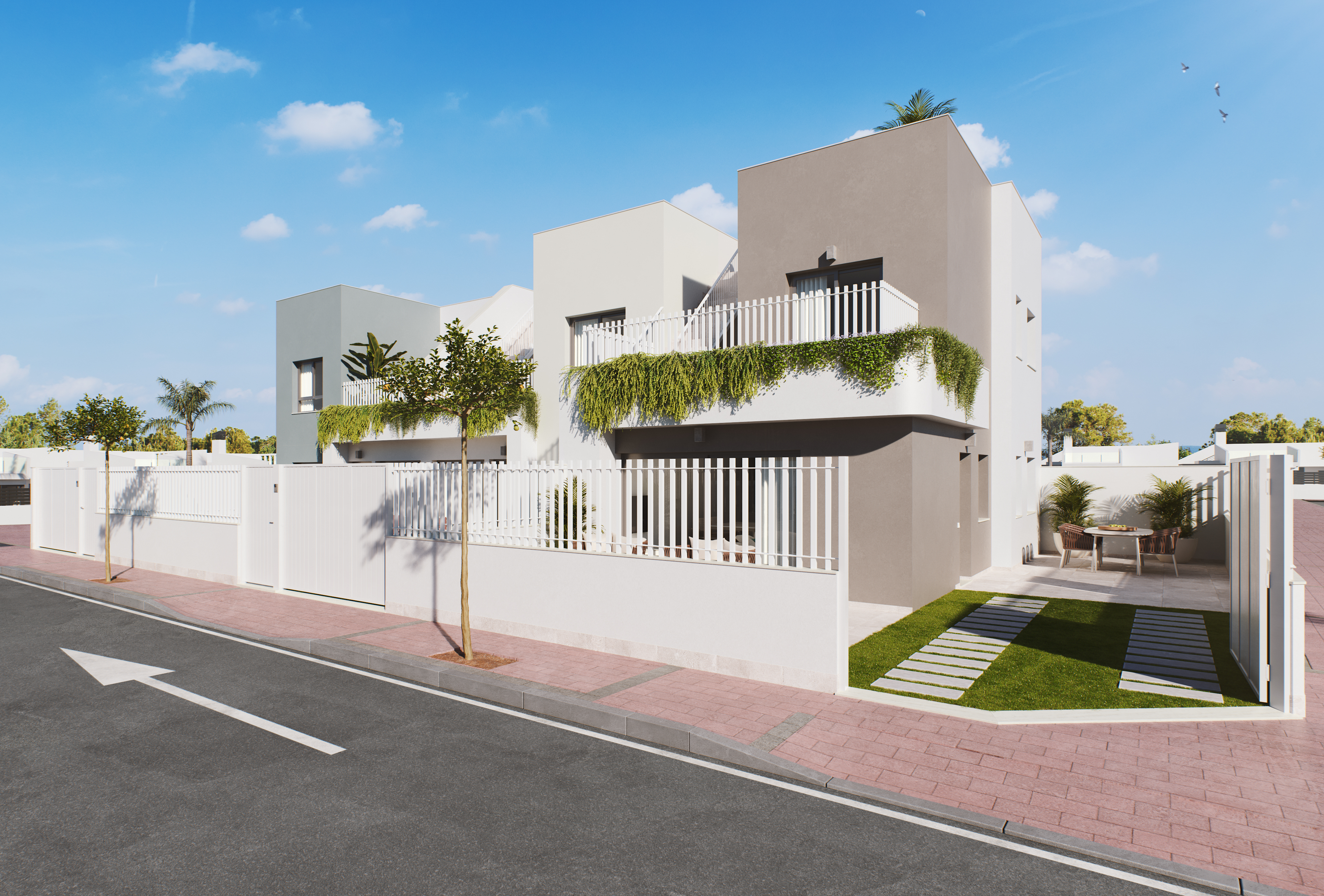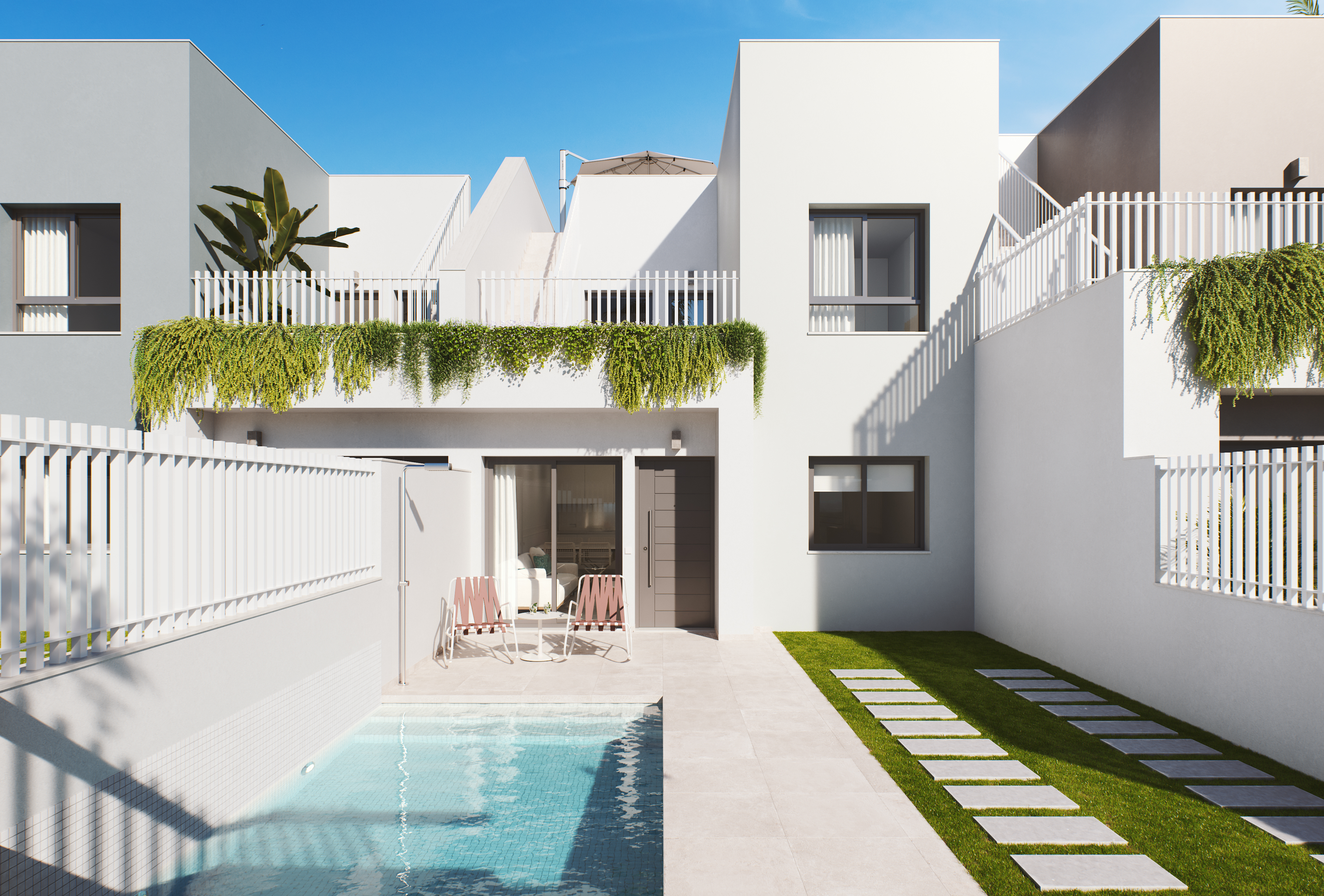 The Residencial Natura II is a promotion of semi-detached duplexes with 3 bedrooms and 2 bathrooms with a garden and solarium located in one of the best areas of San Pedro del Pinatar (Murcia).
