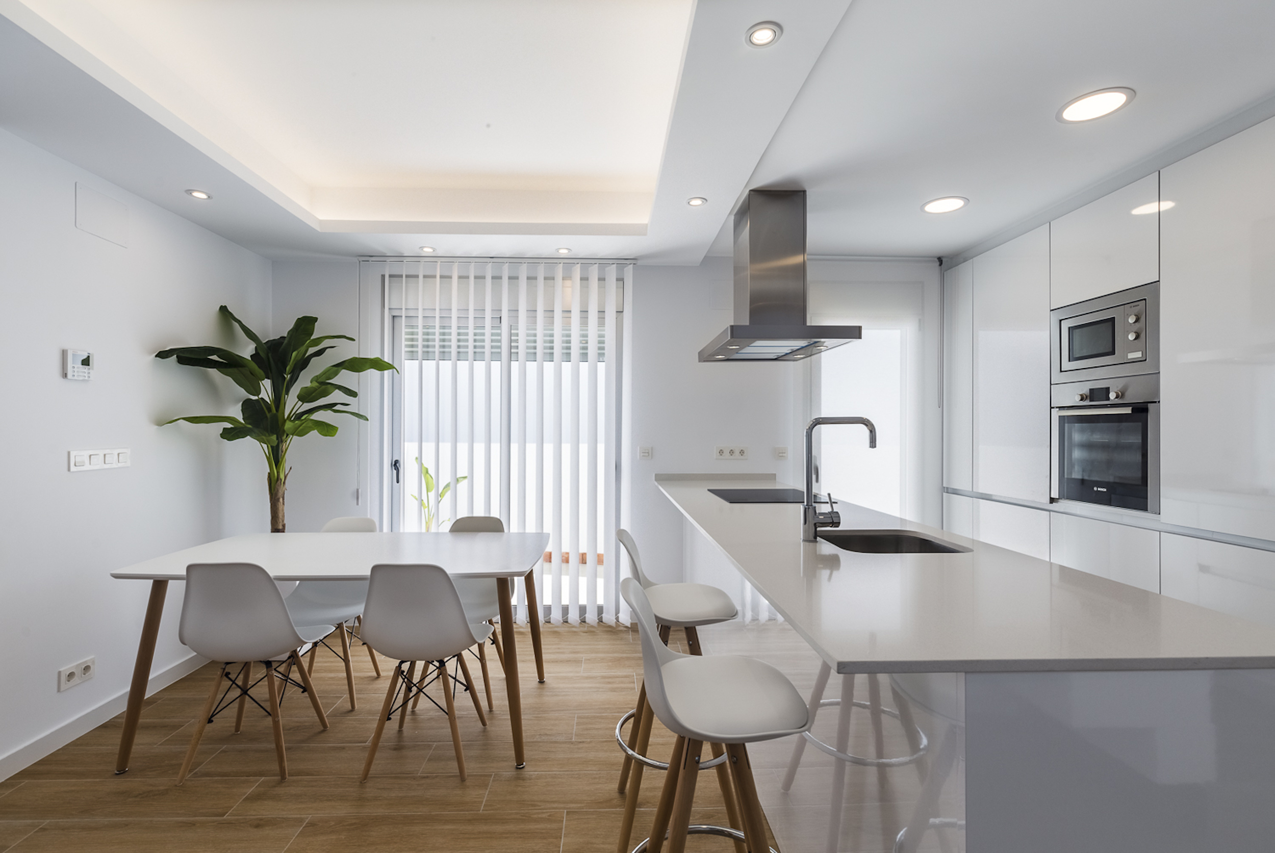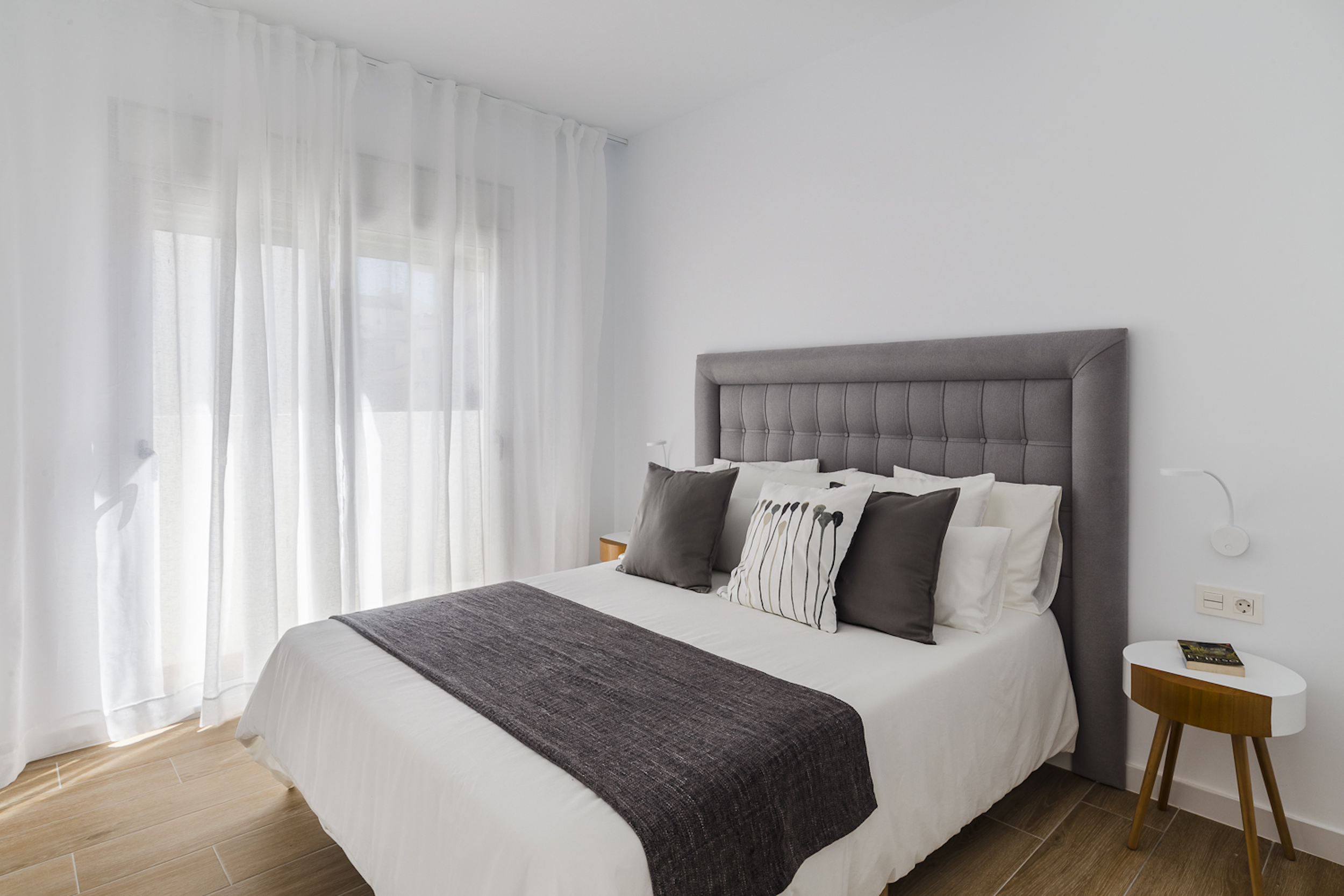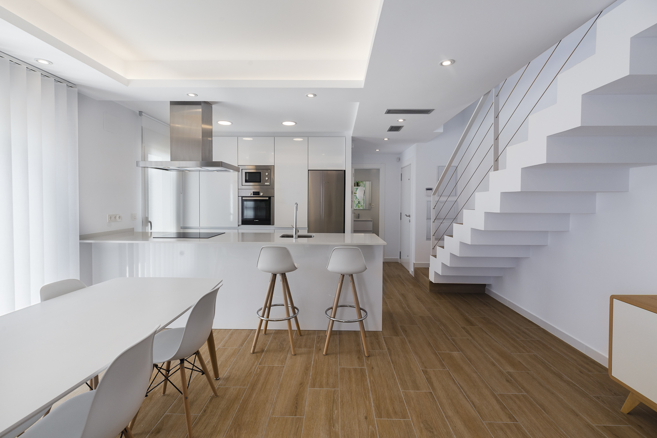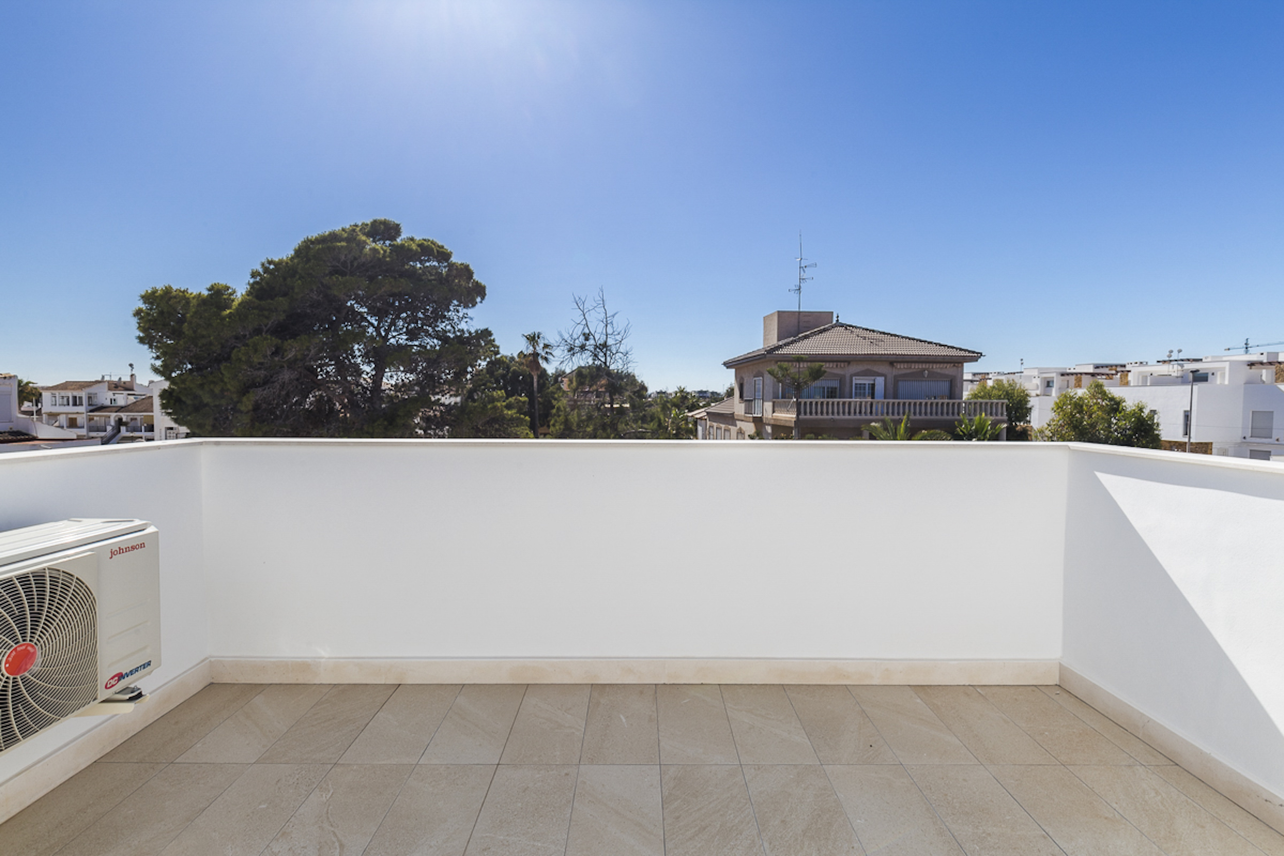 This 3 detached luxury villas project has been designed by Plania in a 600 m2 south face plot. These 120 m2 built stunning villas have 2 floors, 3 bedrooms, 3 bathrooms, solarium, private swimming pool and parking. They are located in “La Rosaleda” a privileged area of Torrevieja seaside, only one minute from the beach.