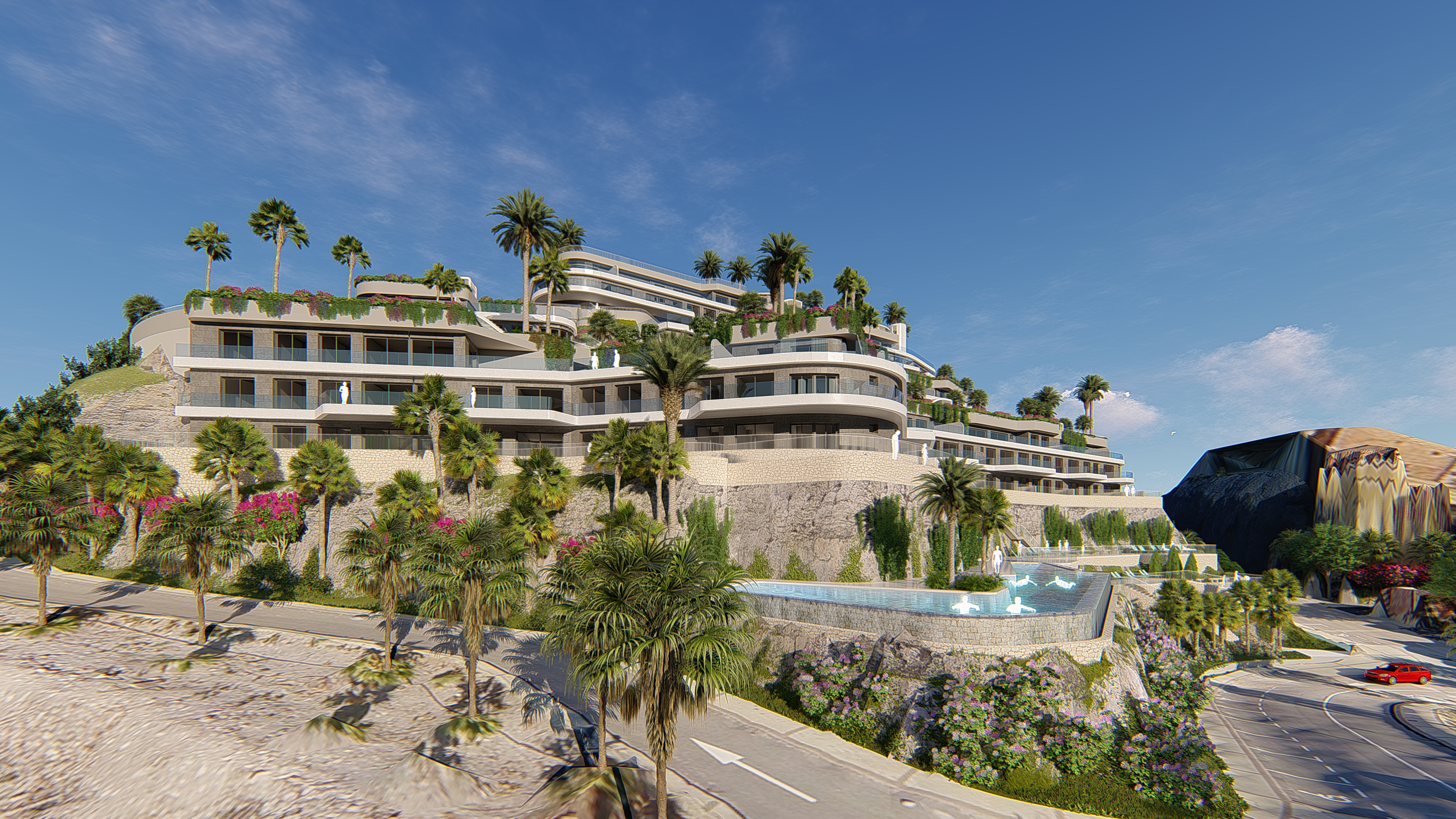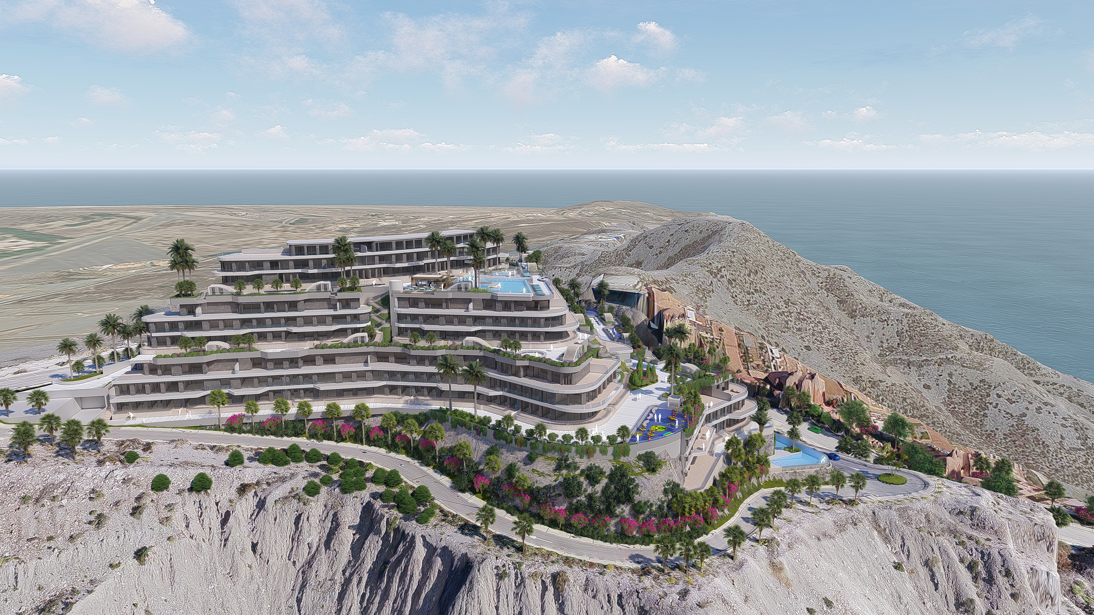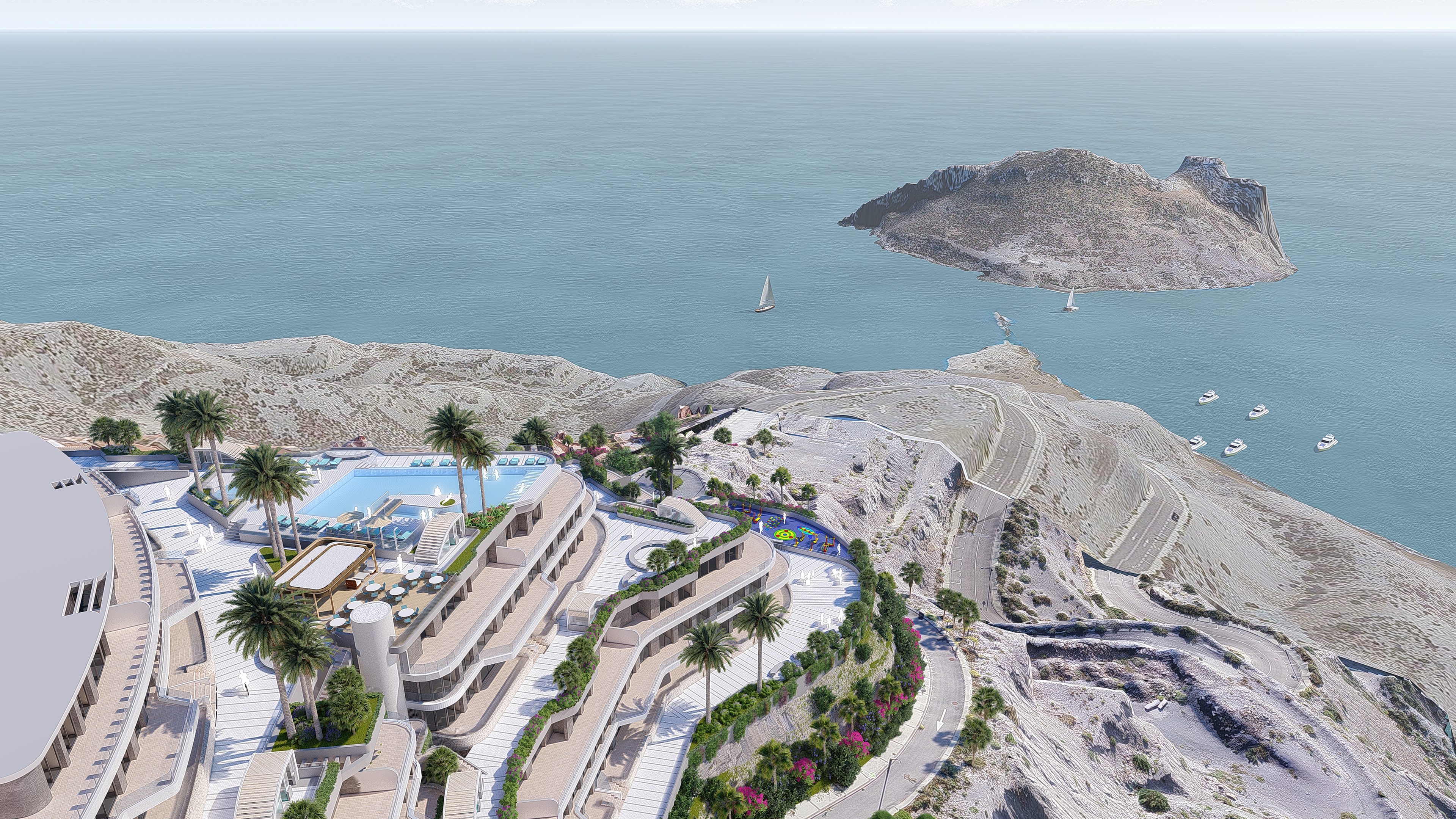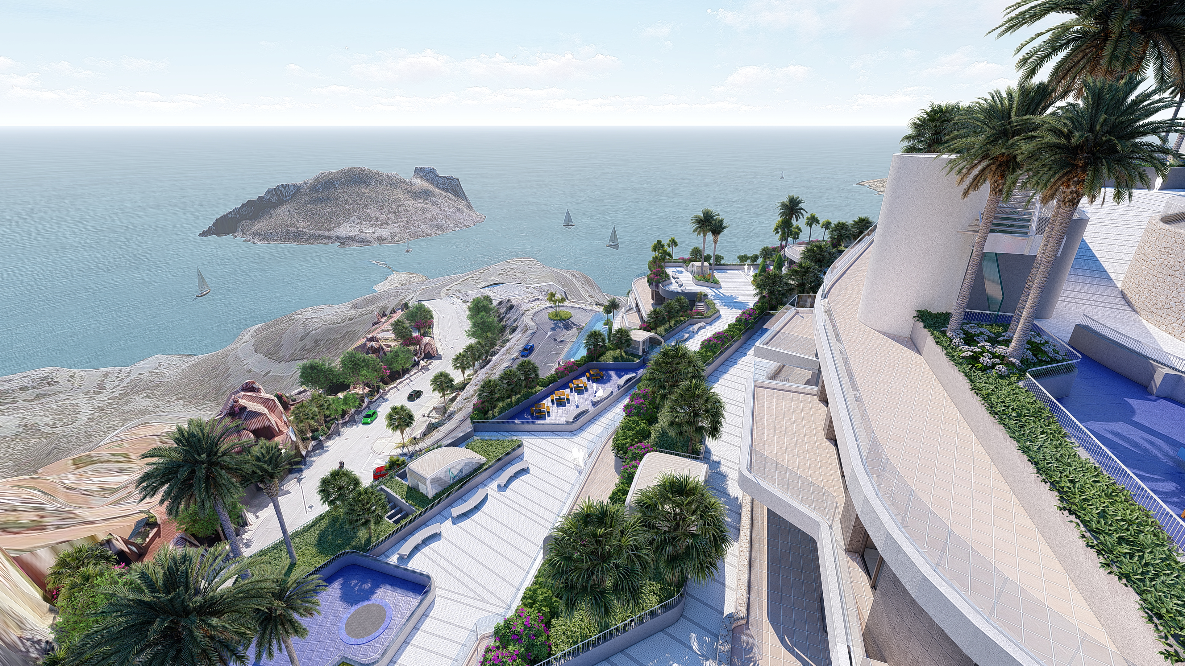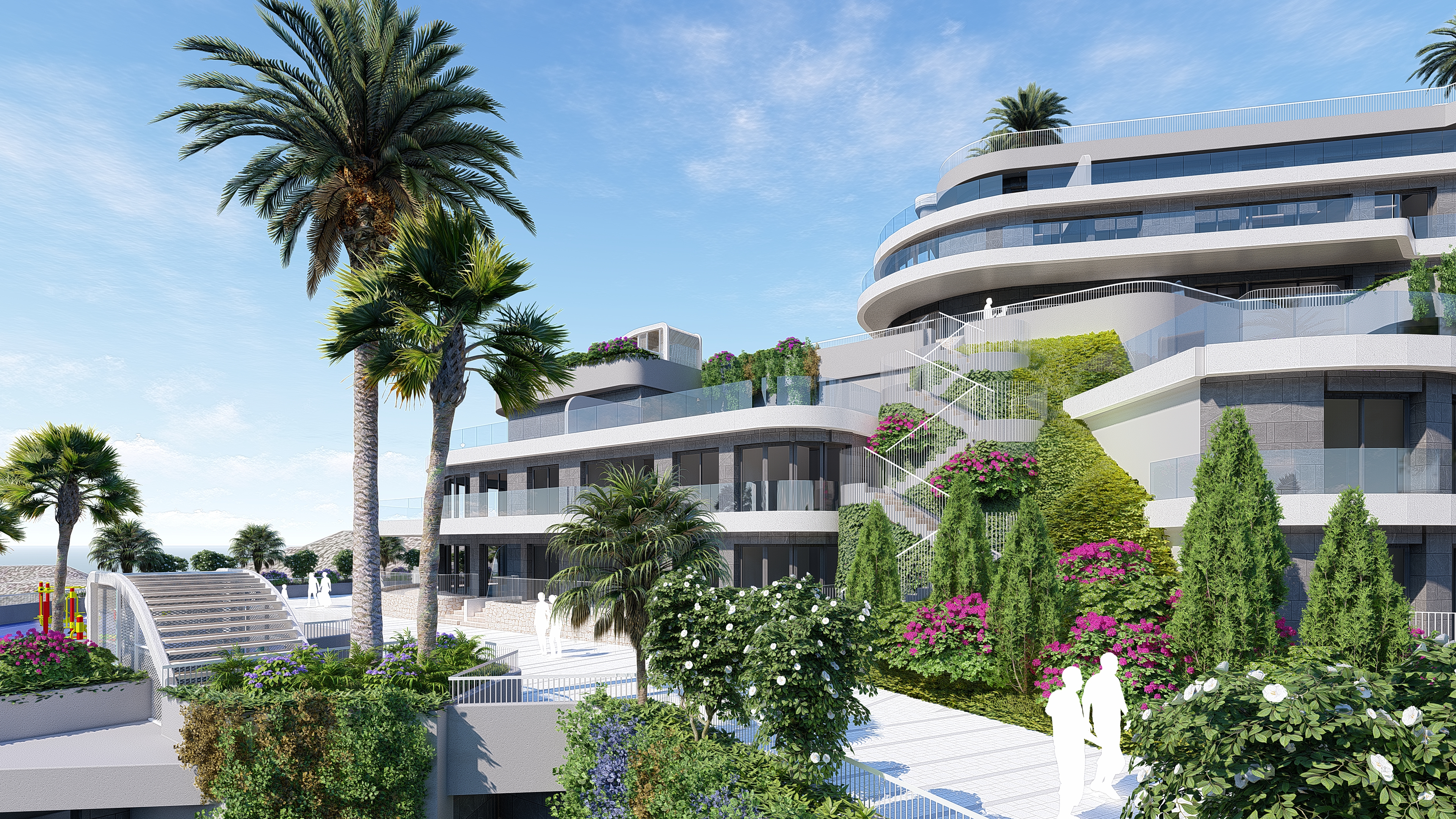1,2 and 3 bedroom apartments and penthouses on a hill in front of the island “Isla del Fraile”.
