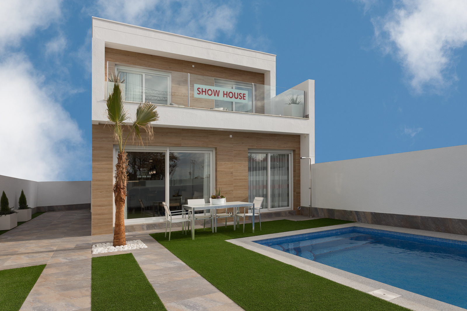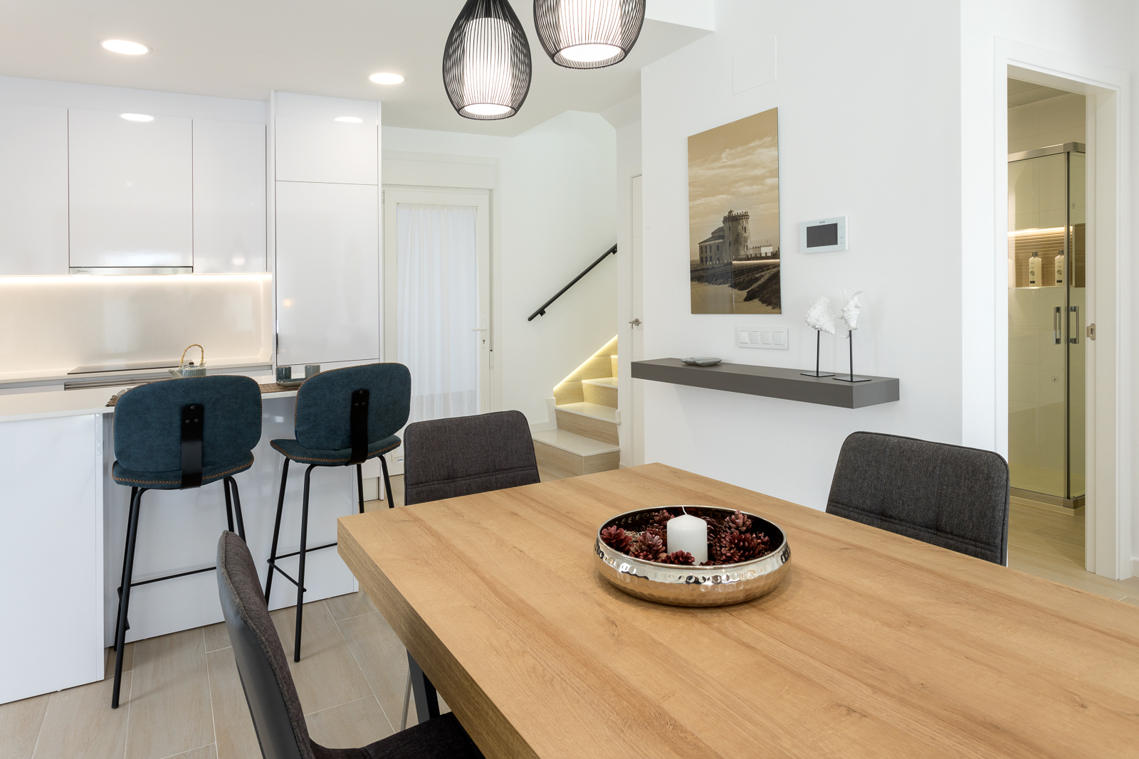 Designed in a modern concept, these houses include three bedrooms, two complete bathrooms, fully equipped kitchen, garden, and private pool.