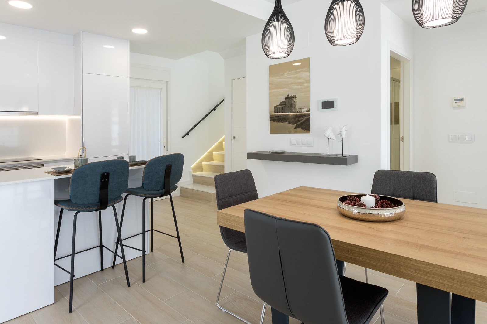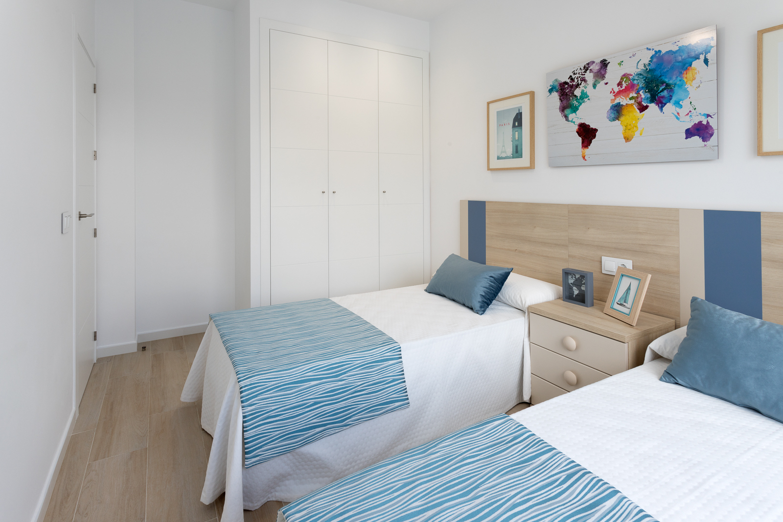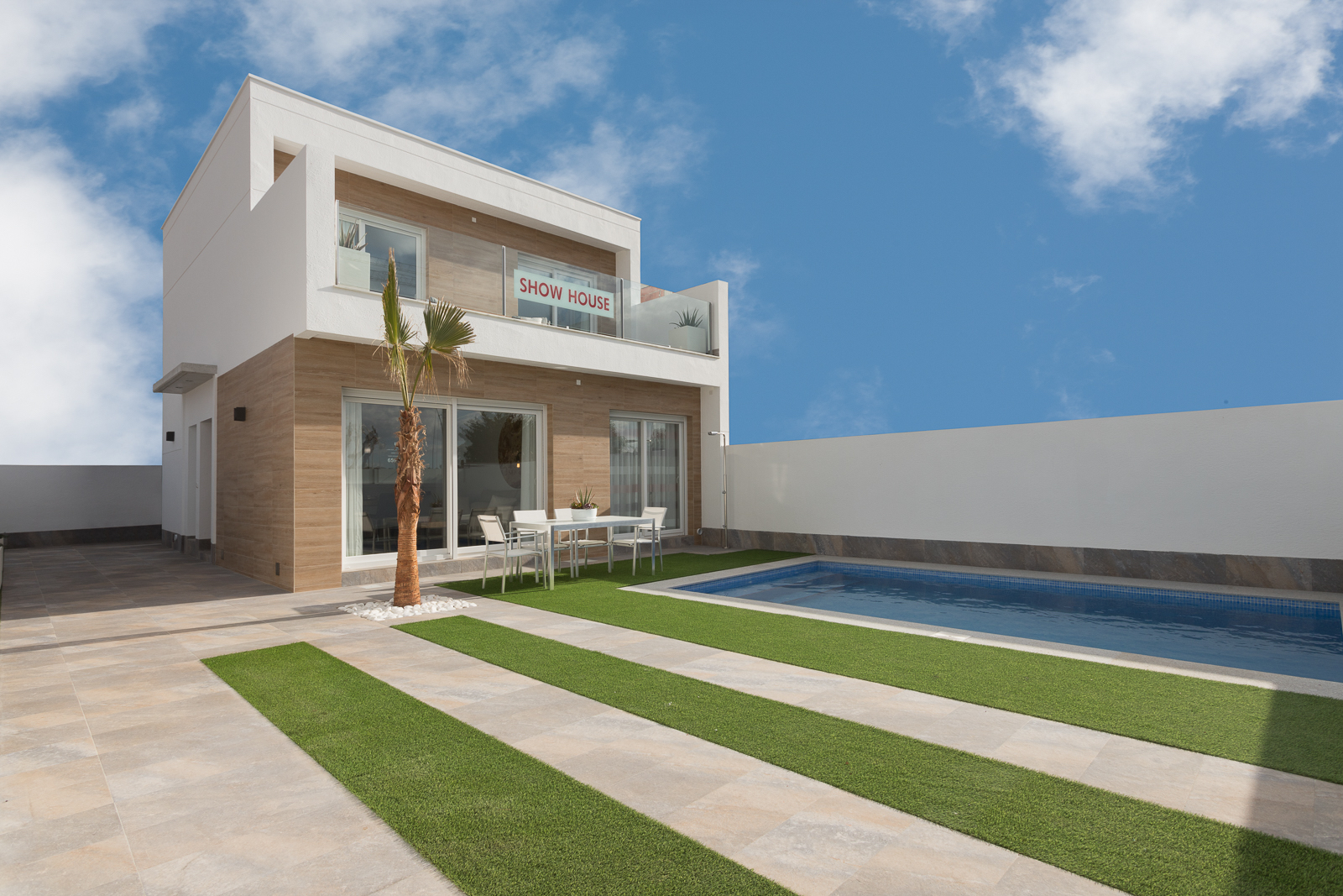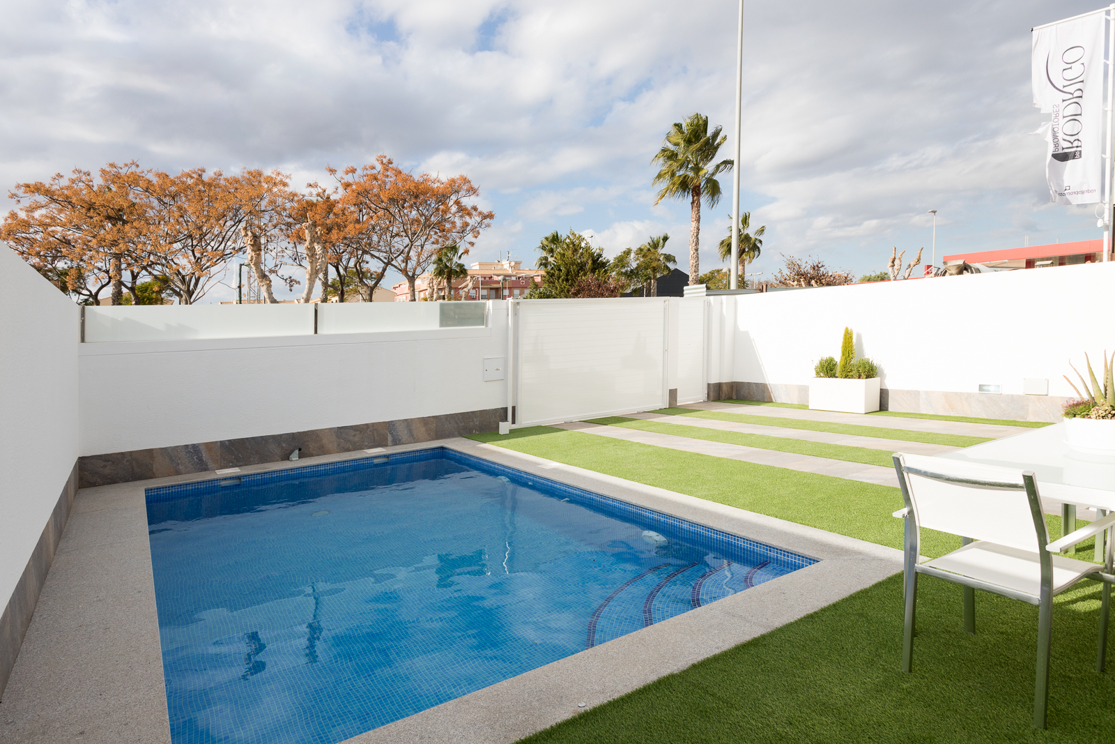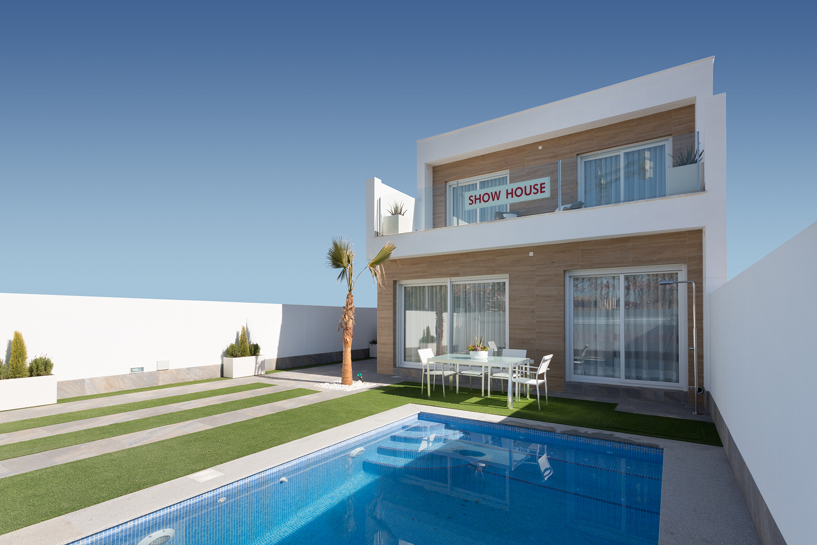 The Palmeras Sun house construction is located in the municipality of Pilar de la Horadada, Alicante, on the Costa Blanca. Located very close to the beaches of the Mediterranean Sea, surrounded by all the services offered by the town and less than 900 meters from the center.