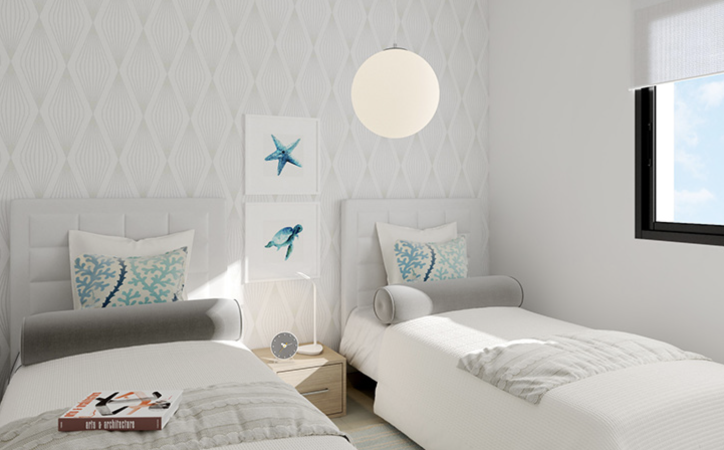 Your extensive terrace looks out onto landscaped gardens, 2 swimming pools, 2 jacuzzis and a poolside terrace with grass lawns and trees. The kids will have a blast in their own pool and play area, complete with swings, slides and seesaw, all within the secured perimeter of the complex.