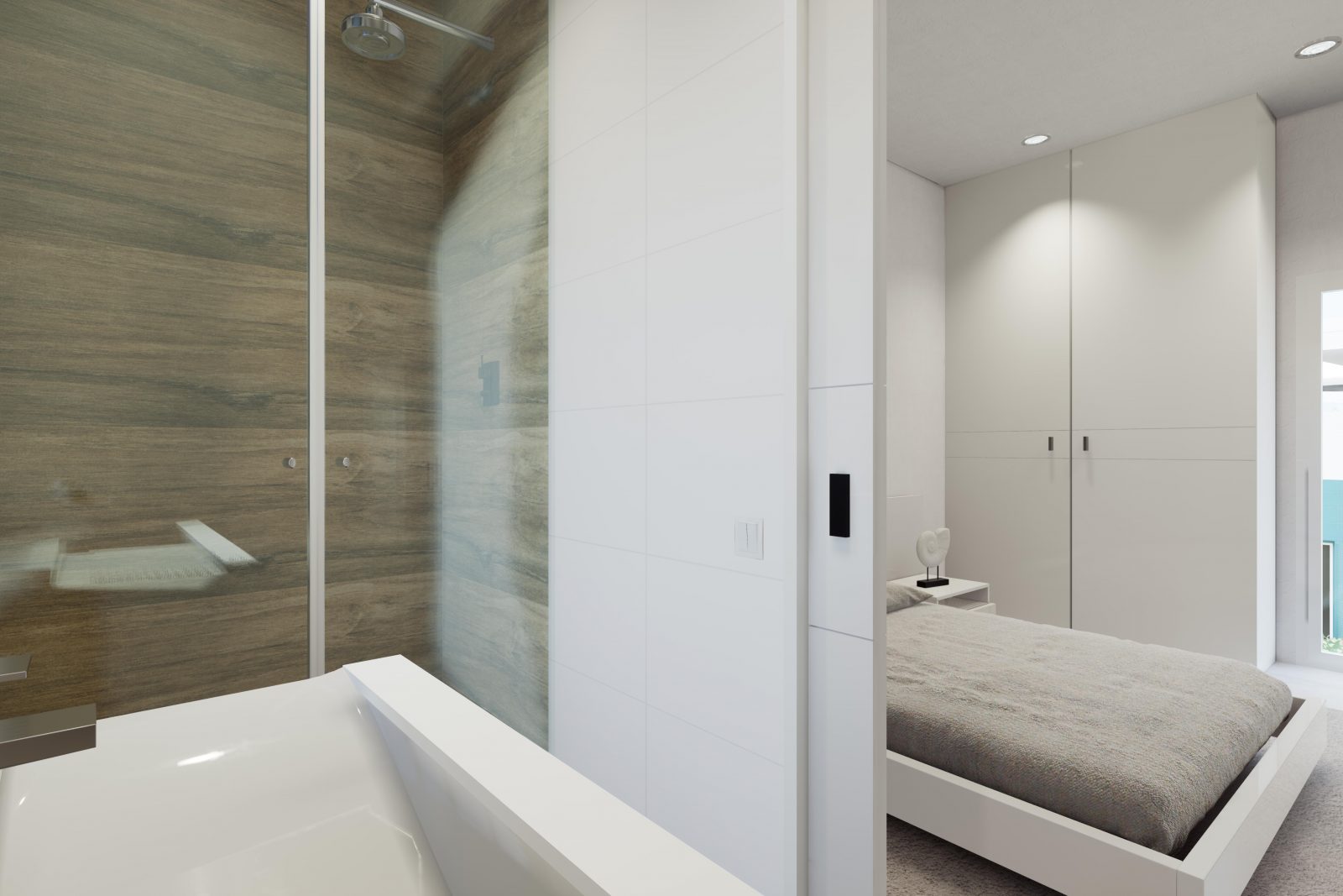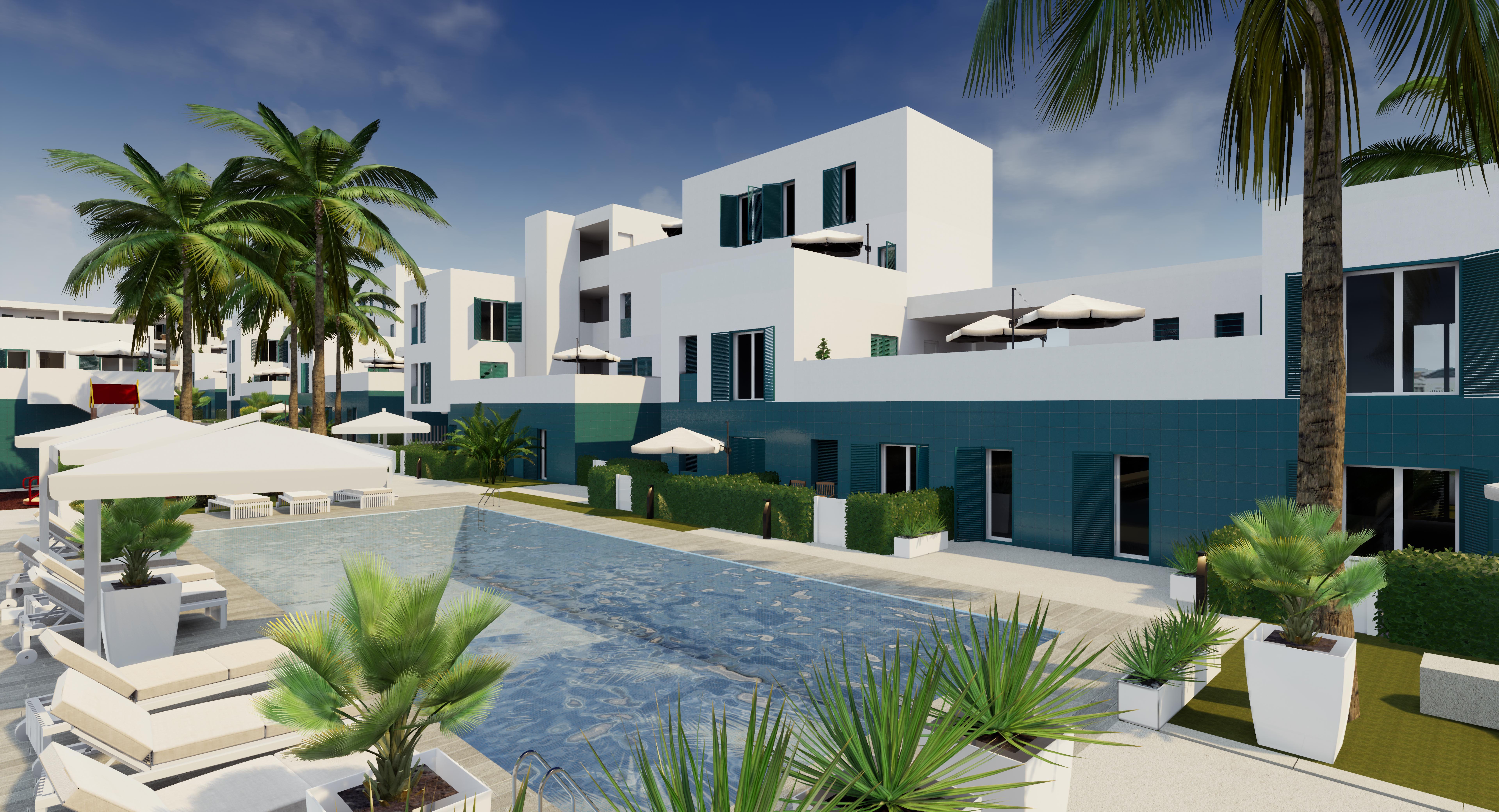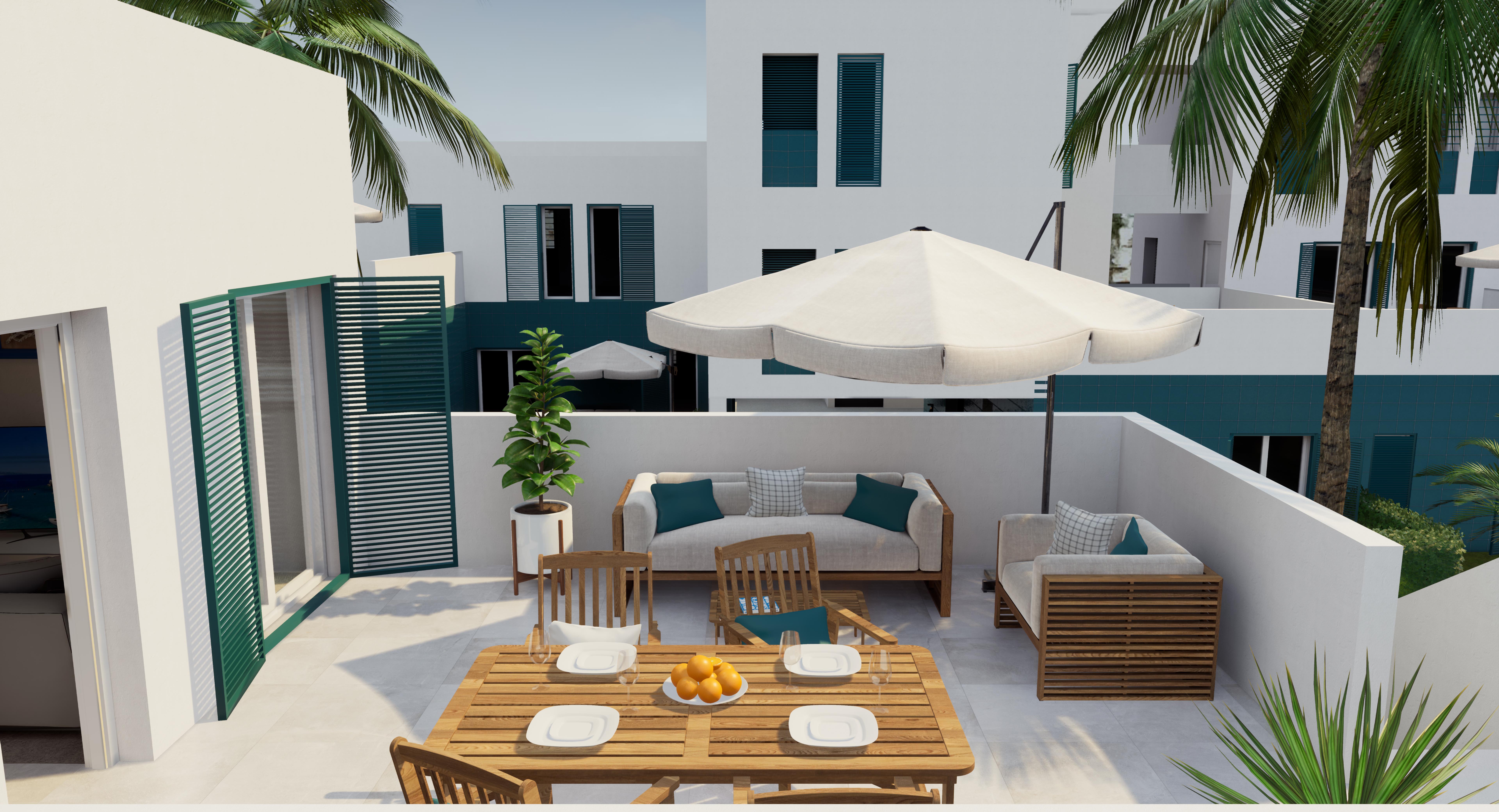 55 apartments of 1, 2 and 3 bedrooms: ground floor with garden and first and second floor with large terraces overlooking the sea, with first quality materials.