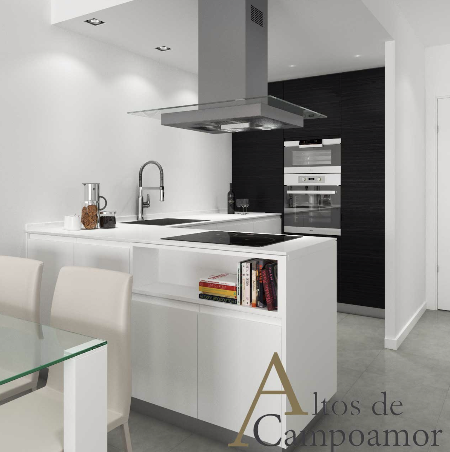 The houses are equipped with kitchen DM lacquered in gloss of high quality and maximum functionality, included in the price of Teka home appliances; decorative hood of steel, ceramic hob, oven microwave and built-in fridge.