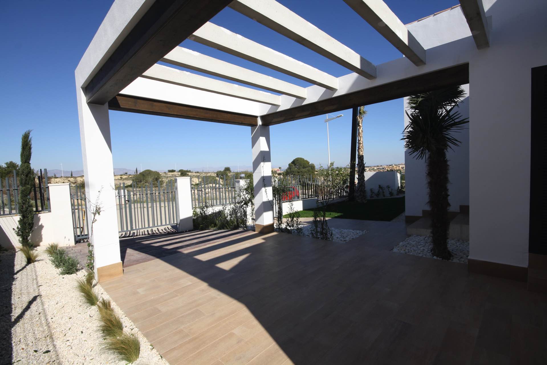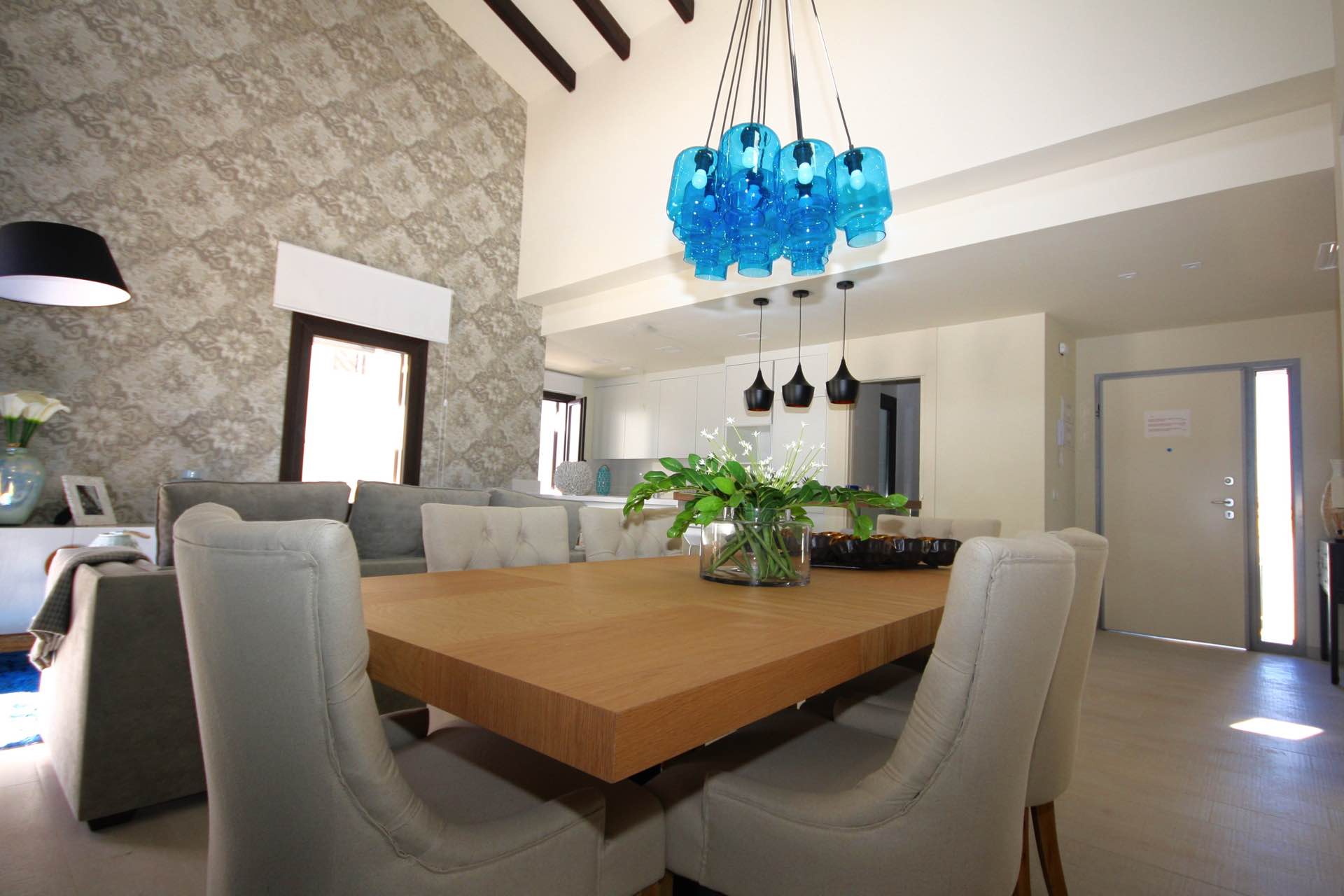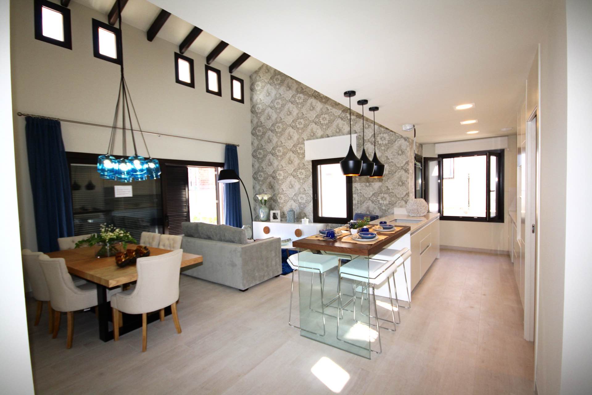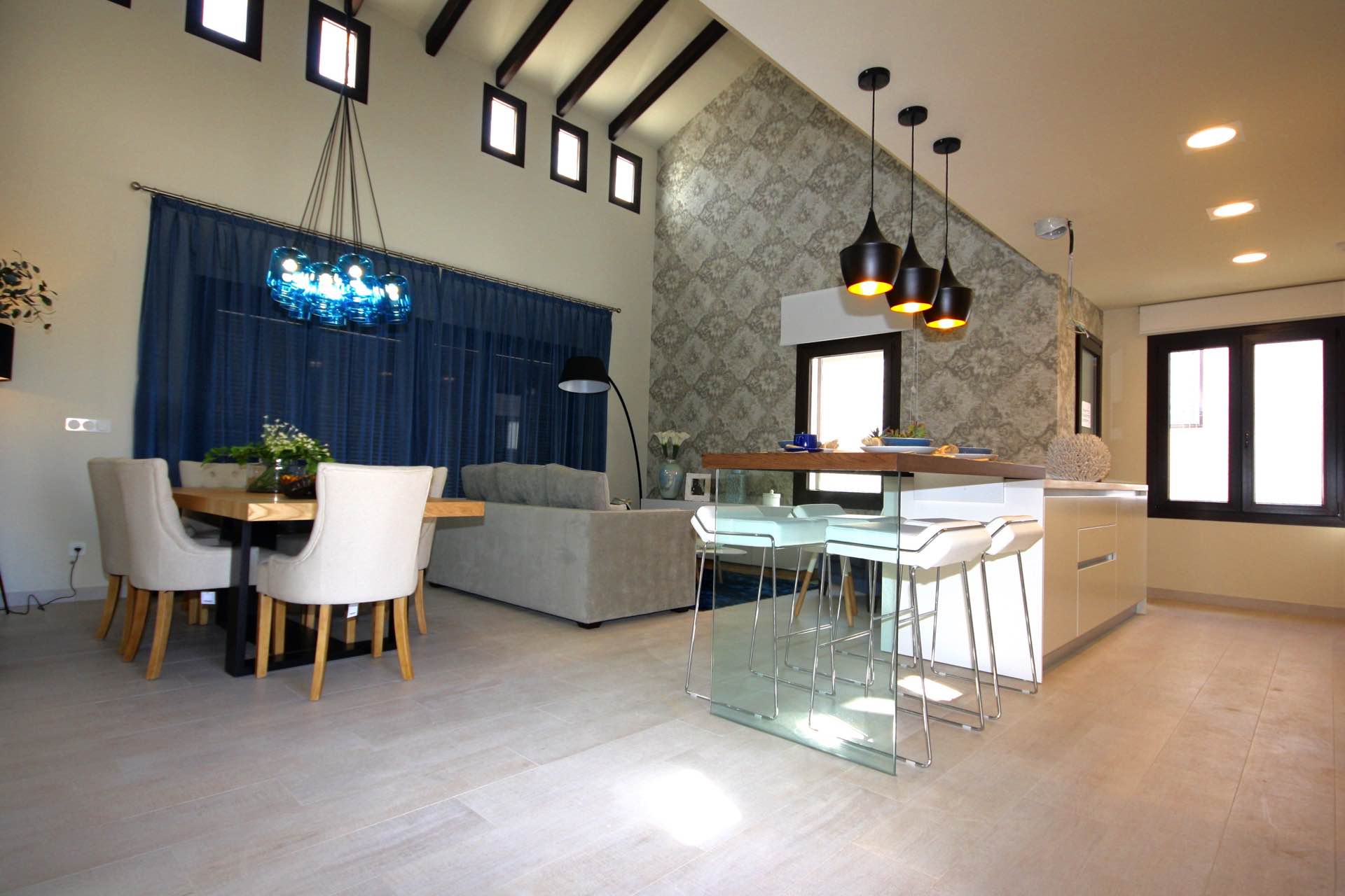 On La Finca Golf you will find this beautiful villa. The villa offers 3 double bedrooms and 2 bathrooms. Master bedroom with en-suite bathroom. The architecture is traditional Spanish style on the exterior, while the interior is made with first class materials. The high ceiling windows and big windows towards the terrace gives the spacious living room and open kitchen lots of natural light.