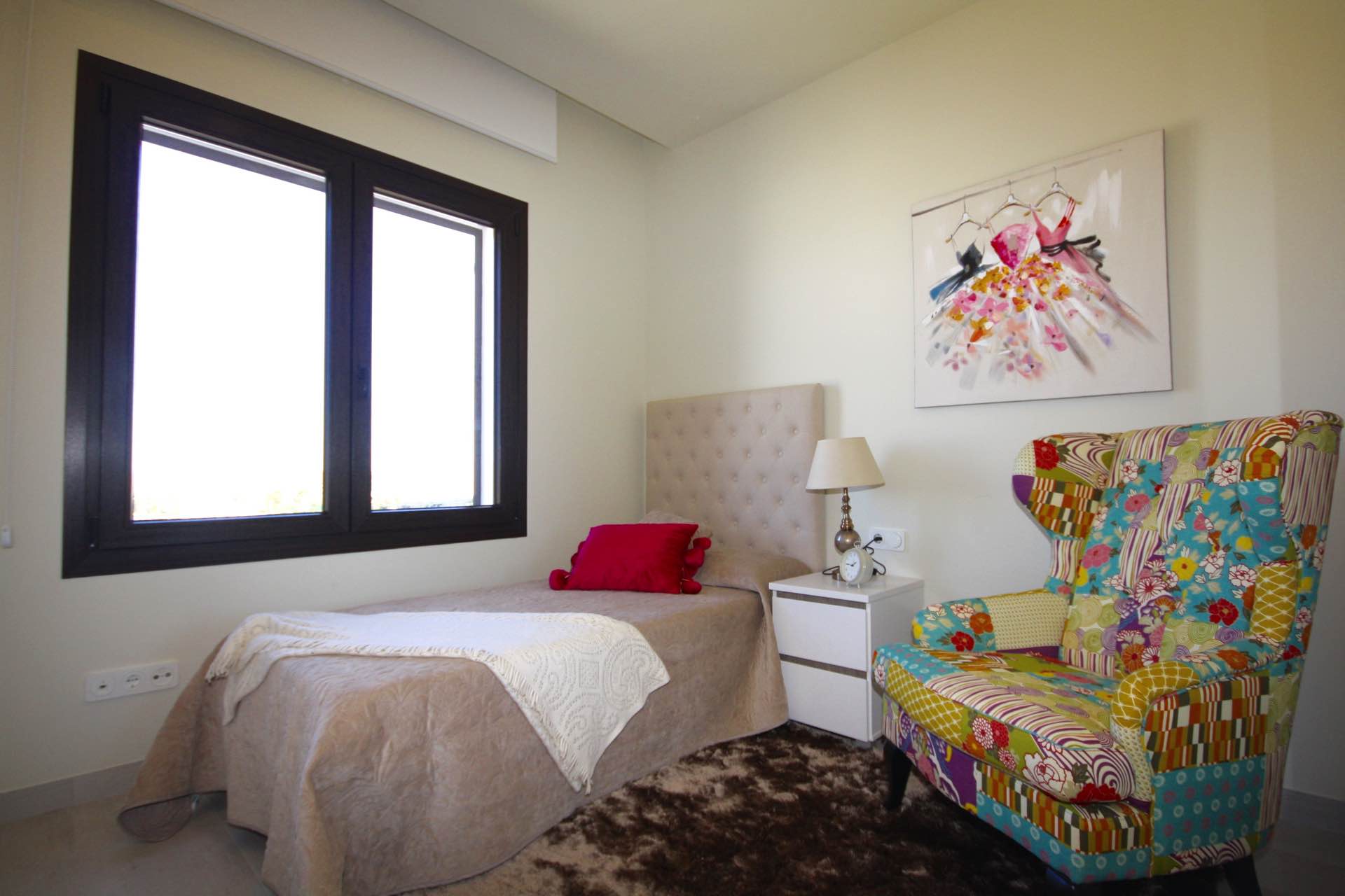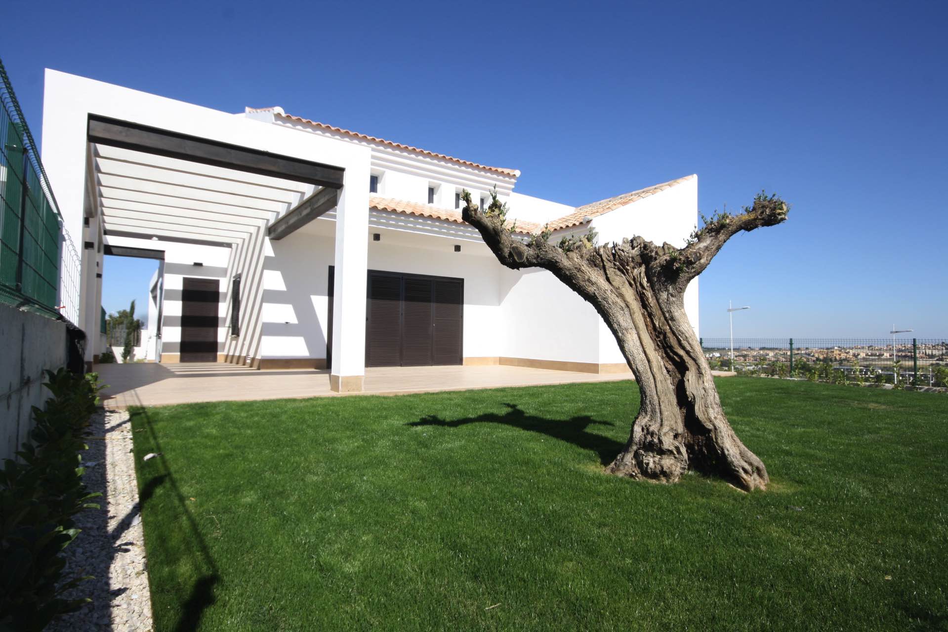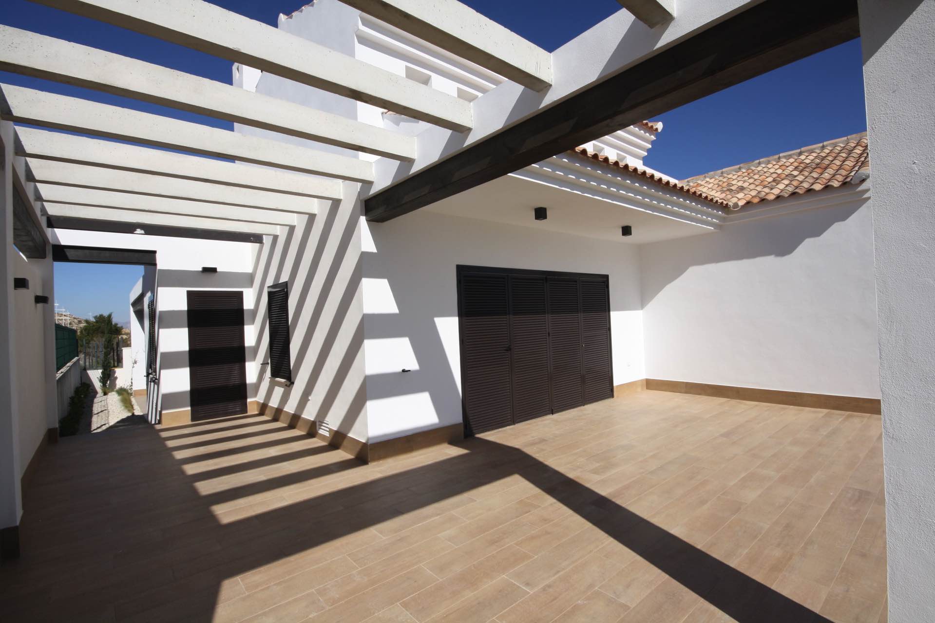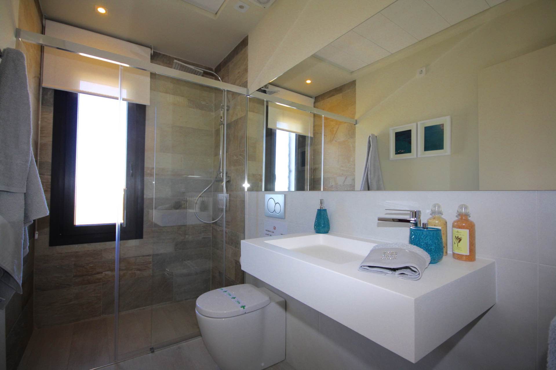 On La Finca Golf you will find this beautiful villa. The villa offers 3 double bedrooms and 2 bathrooms. Master bedroom with en-suite bathroom. The architecture is traditional Spanish style on the exterior, while the interior is made with first class materials. The high ceiling windows and big windows towards the terrace gives the spacious living room and open kitchen lots of natural light.