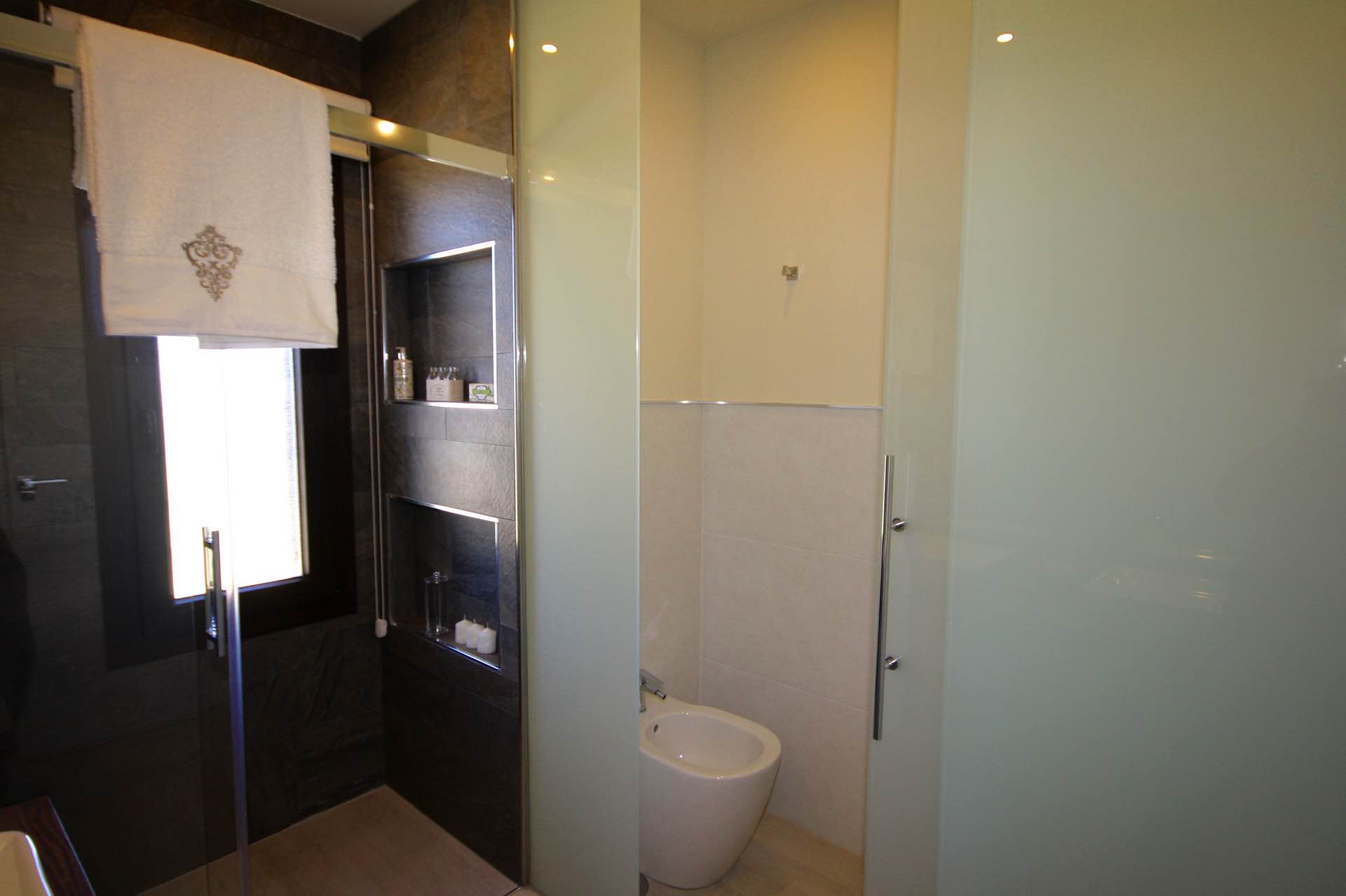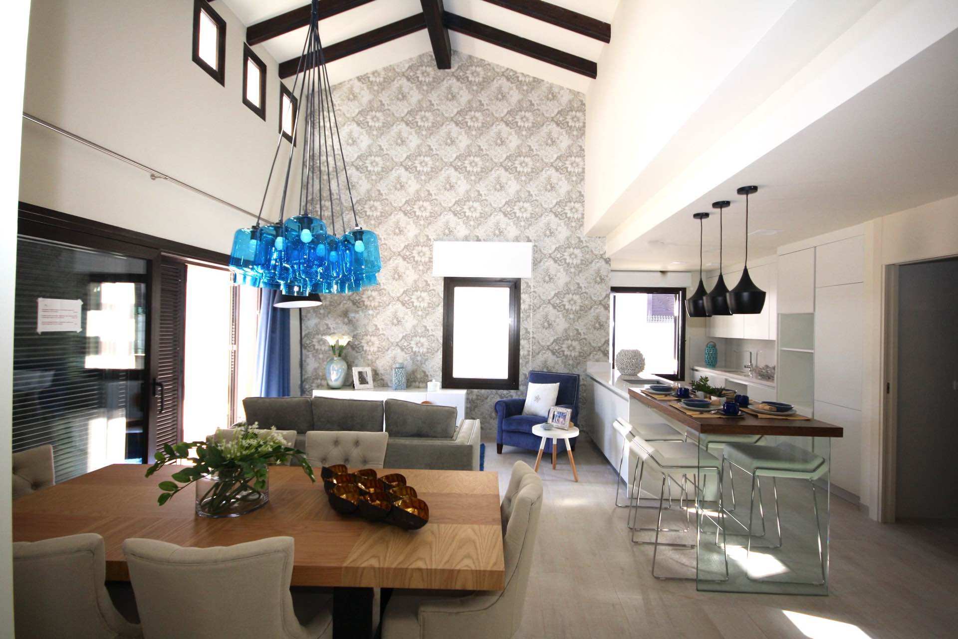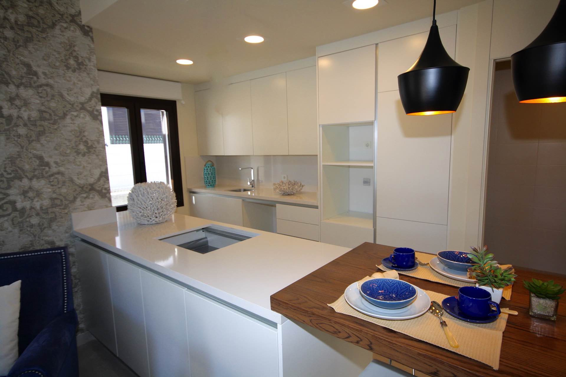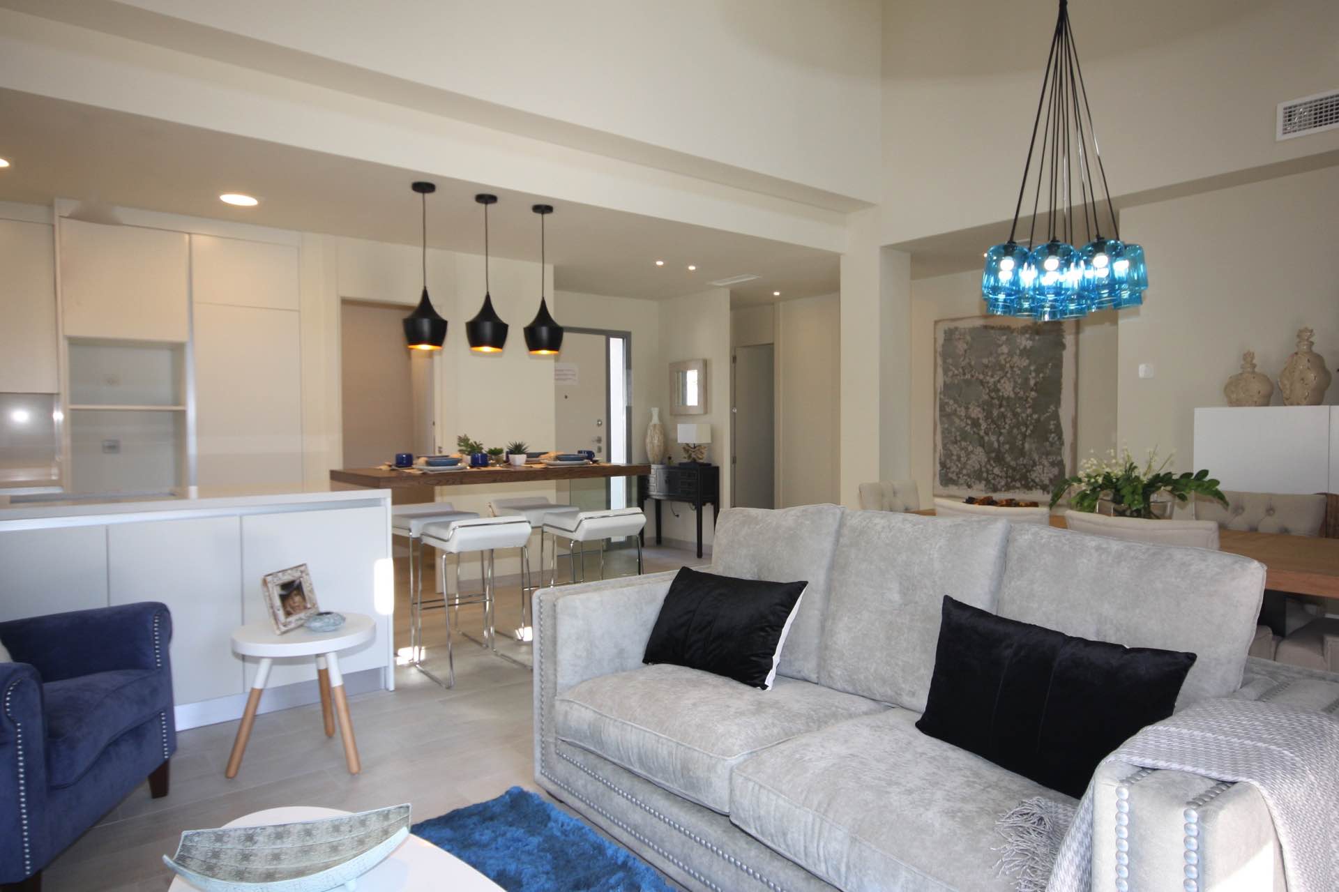 On La Finca Golf you will find this beautiful villa. The villa offers 3 double bedrooms and 2 bathrooms. Master bedroom with en-suite bathroom. The architecture is traditional Spanish style on the exterior, while the interior is made with first class materials. The high ceiling windows and big windows towards the terrace gives the spacious living room and open kitchen lots of natural light.