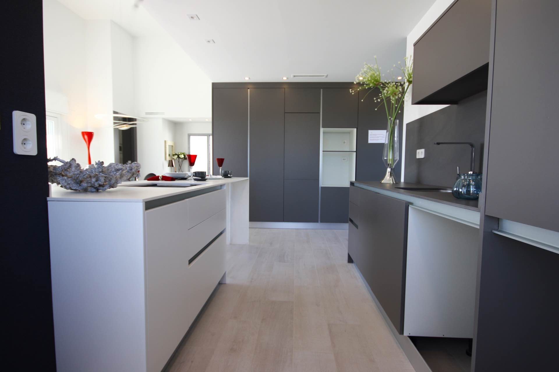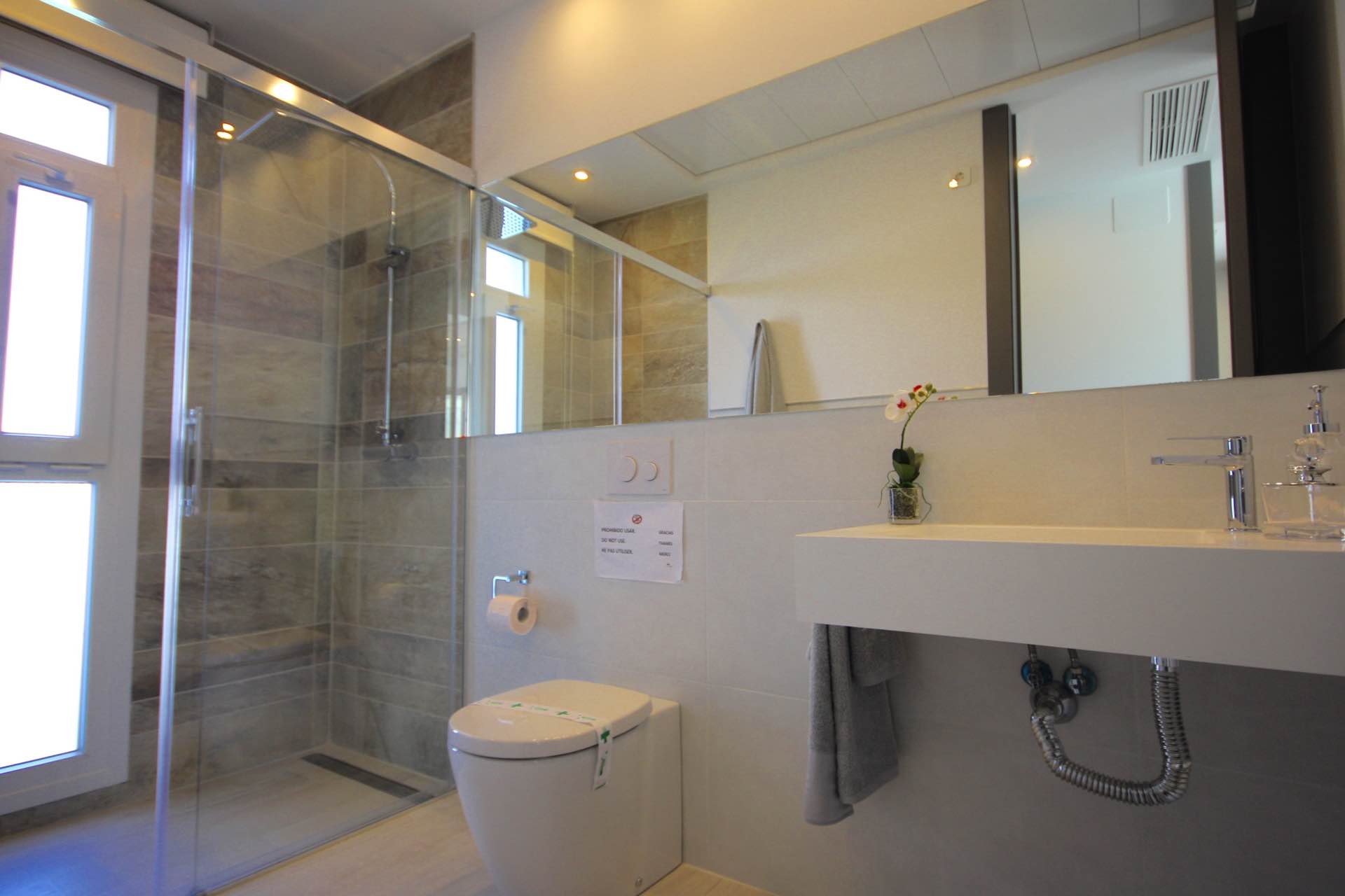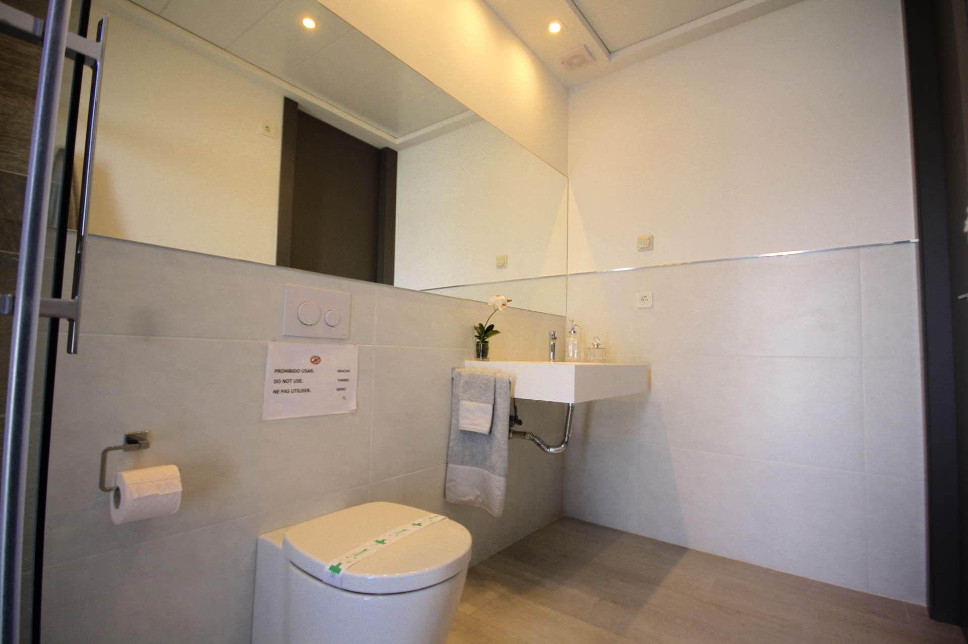 The architecture is modern contemporary style on the exterior, with the interior made with first class materials. The high ceiling windows and big windows towards the terrace gives the spacious living room and open kitchen lots of natural light. The villa has a private parking space. The south facing terrace gives you sun from dusk till dawn.