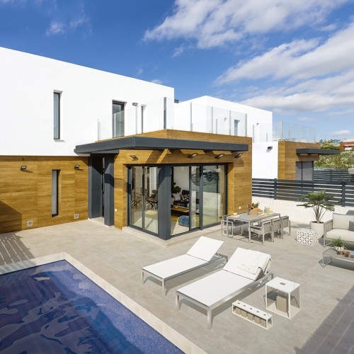 On La Finca Golf you will find this beautiful modern Esia villa. The villa offers 3 double bedrooms and 2 bathrooms. Master bedroom with en-suite bathroom.
