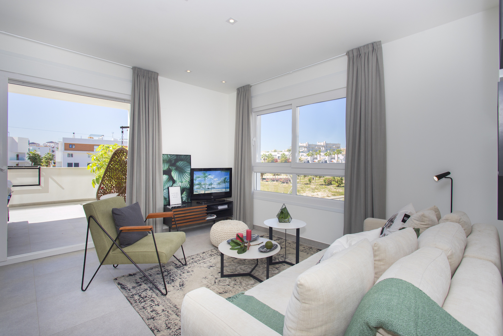 This new development with 3 blocks of apartments is built in one of the most popular areas of Villamartin. The first block of 4 floors is now on sale. It is composed by 13 modern apartments with 2 or 3 bedrooms with a living area varying from 68 to 102 m2.