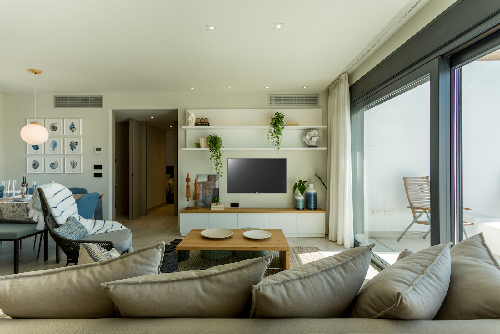 It is composed by 16 modern apartments with 2 or 3 bedrooms with a living area varying from 68 to 102 m2. They all offer large terraces, high quality finish and spacious communal green areas with swimming pool.