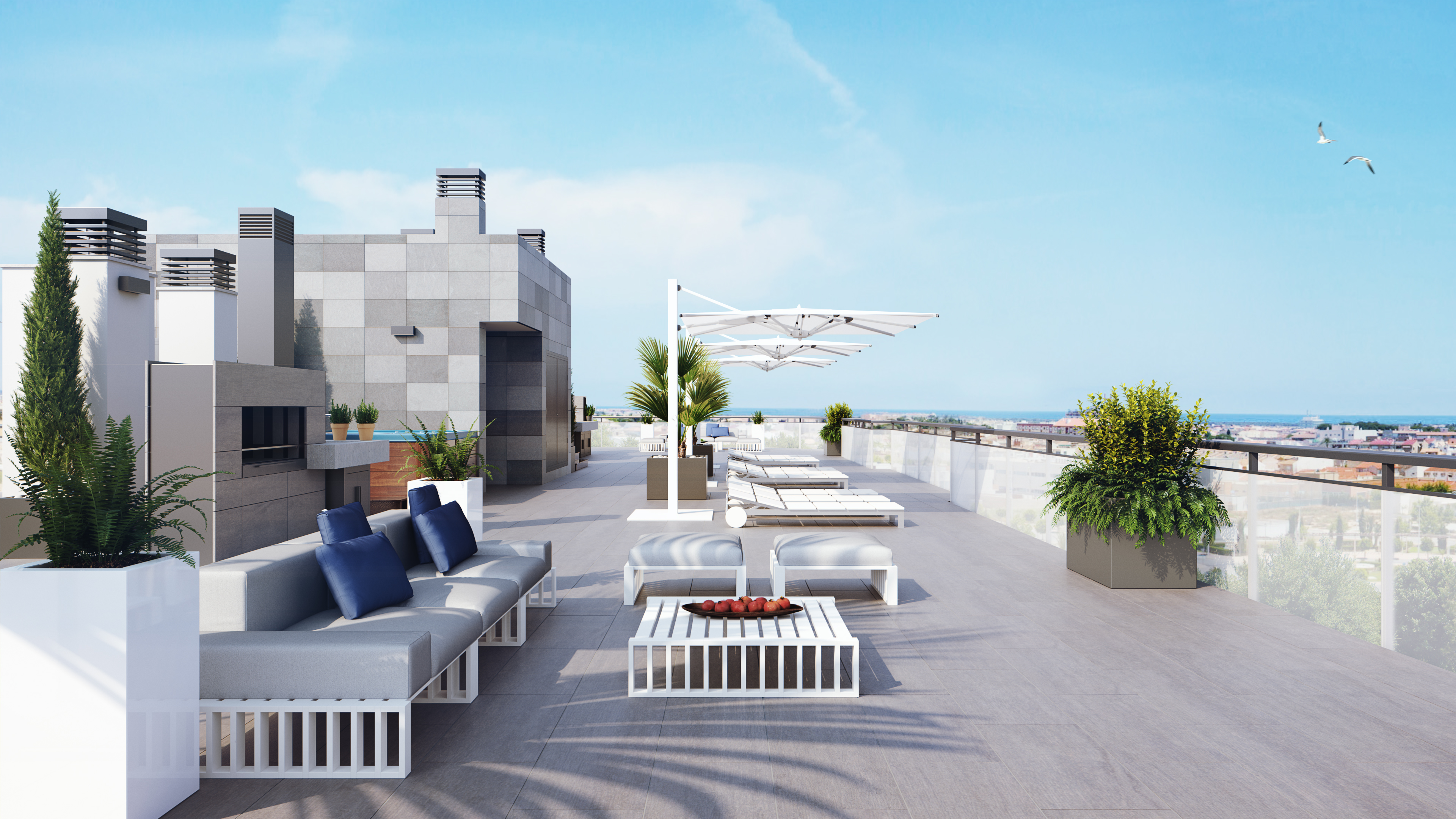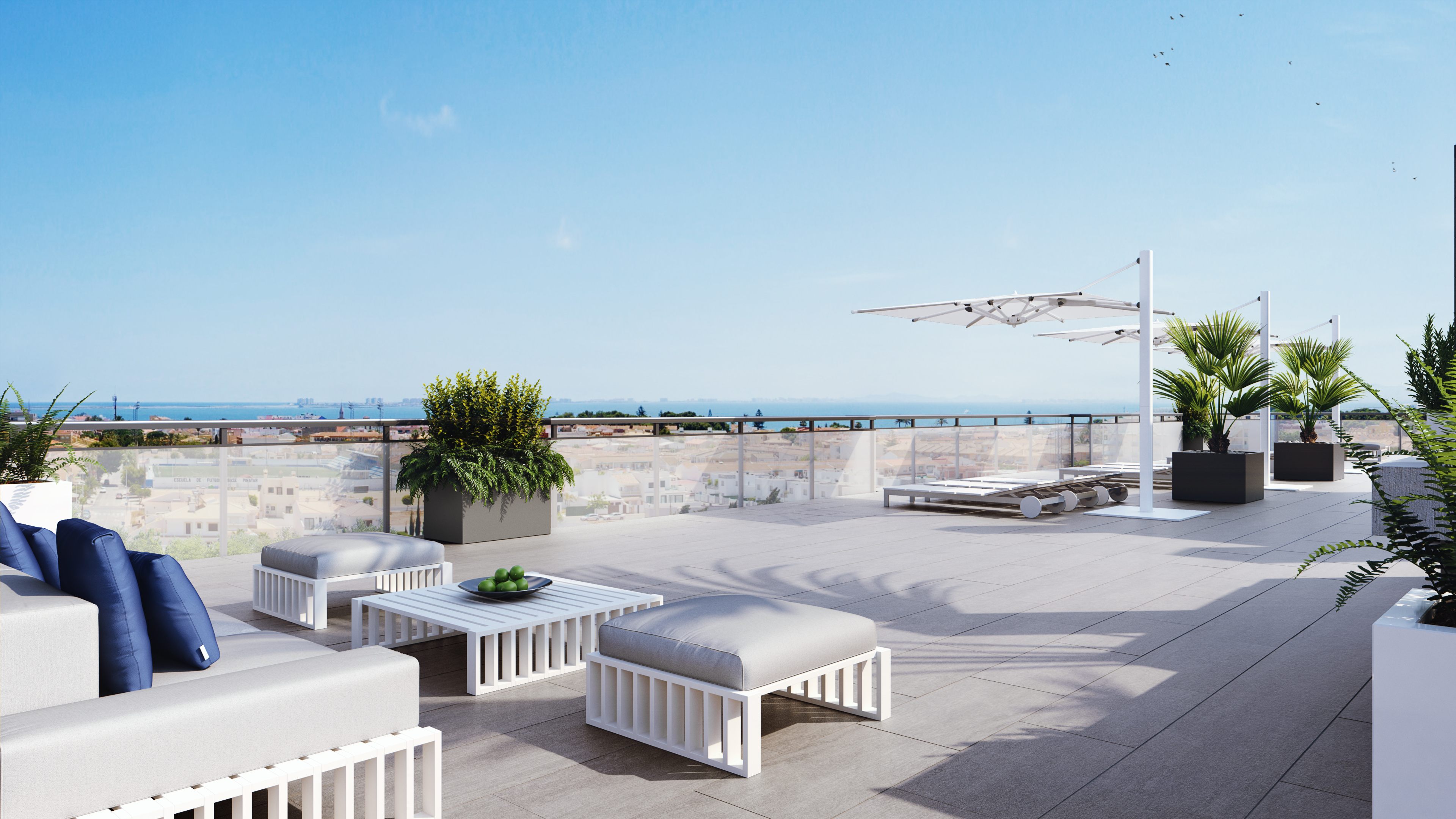 New launch apartments offering 2 bedrooms and 2 bathrooms – these have been thoughtfully designed to provide an open plan contemporary living space. “Sun all day” on the sky lounge rooftop solarium with glorious views to the beaches and the coastline … Located next to a large park area in Lo Pagan.
