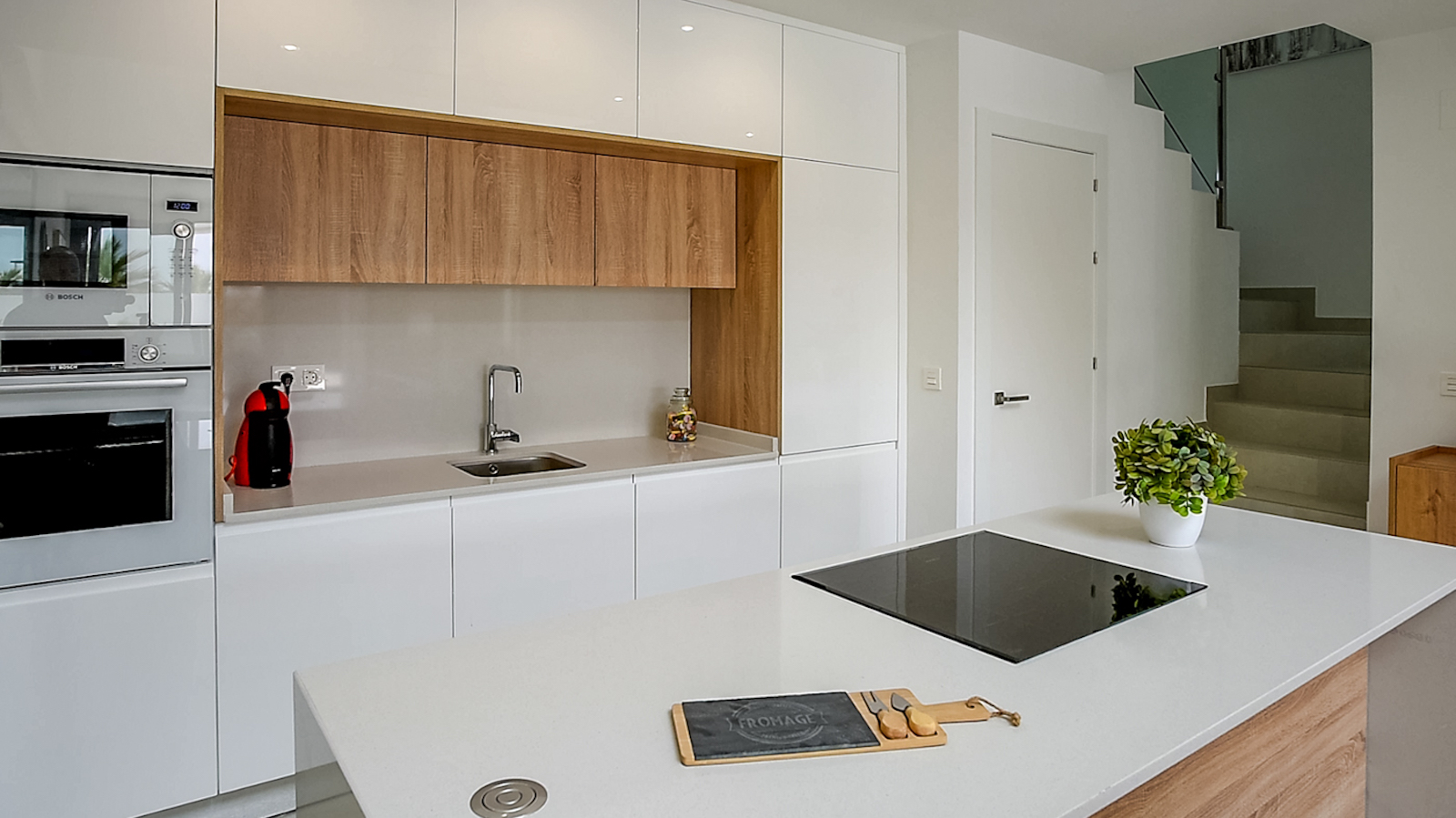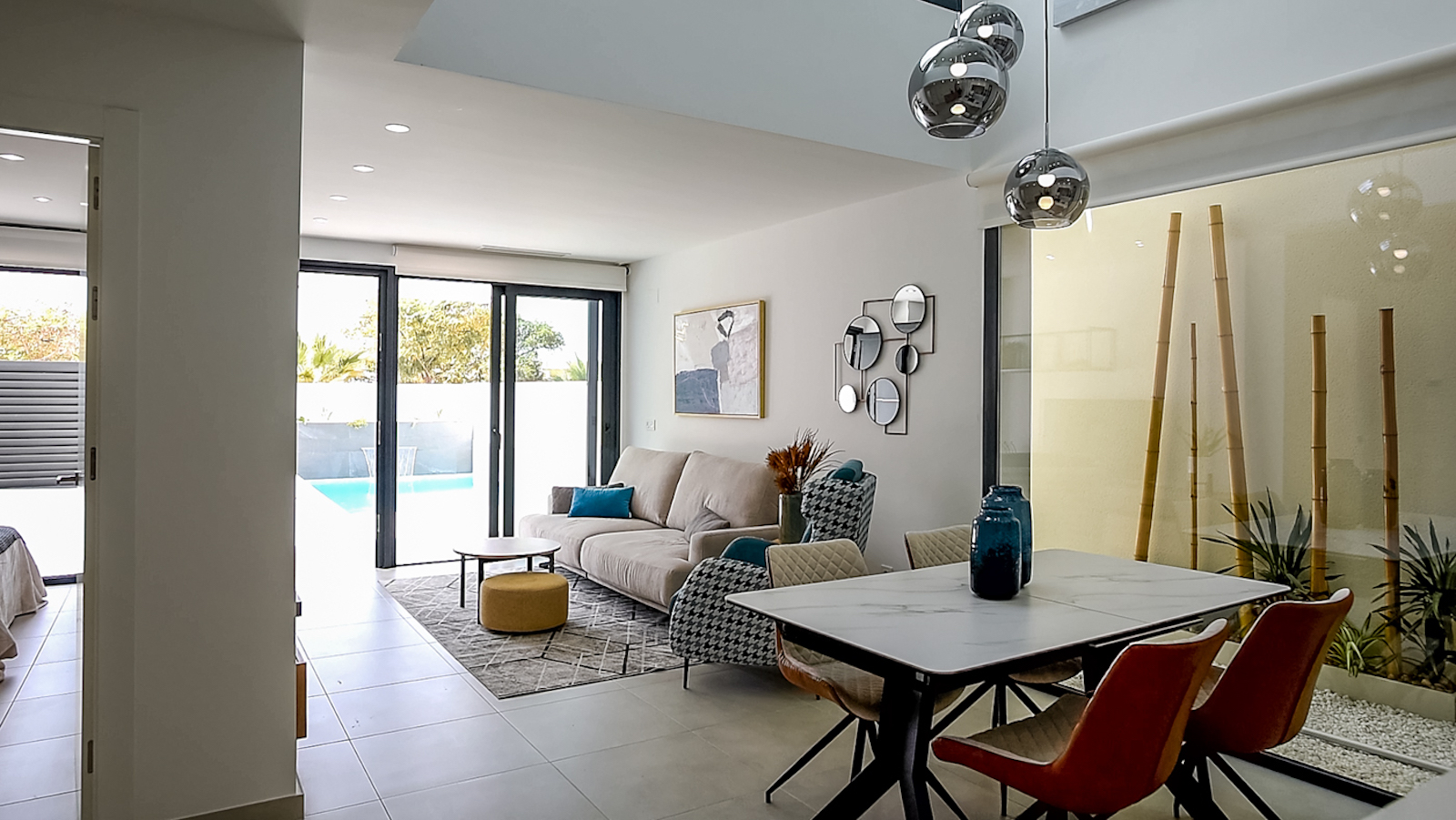The residential consists of 11 modern style Villas in private plots with terrace, parking area and private pool. They comprise a living room area, fitted kitchen, 3 bedrooms, 2 bathrooms and a double height with great views. All villas have optional solarium and five of them a basement. Carefully designed with high quality materials to satisfy the needs of the most demanding clients.