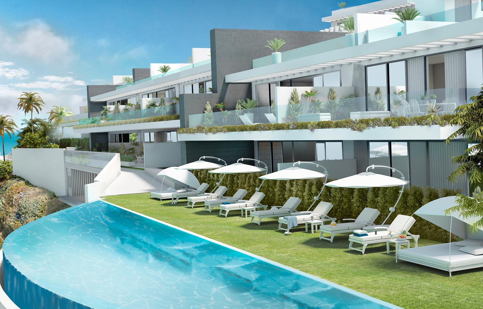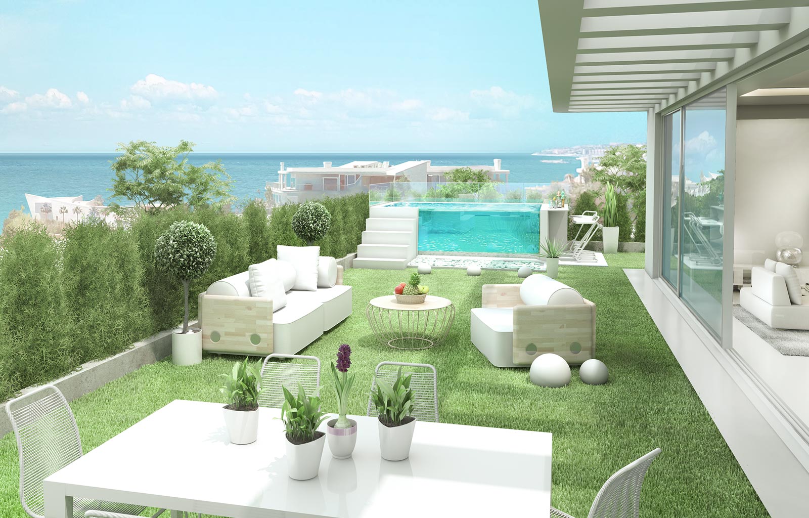Fall in love with your new home on the Costa del Sol. All of the 20 spacious apartments offer spectacular sea and beach views. The homes are distributed over two blocks, each with only two oors. The boutique residential complex features a spa and two stunning pool areas with spectacular sea views, surrounded by beautiful gardens. An extensive concierge service with shuttle buses, cleaning and home maintenance services will also be available.