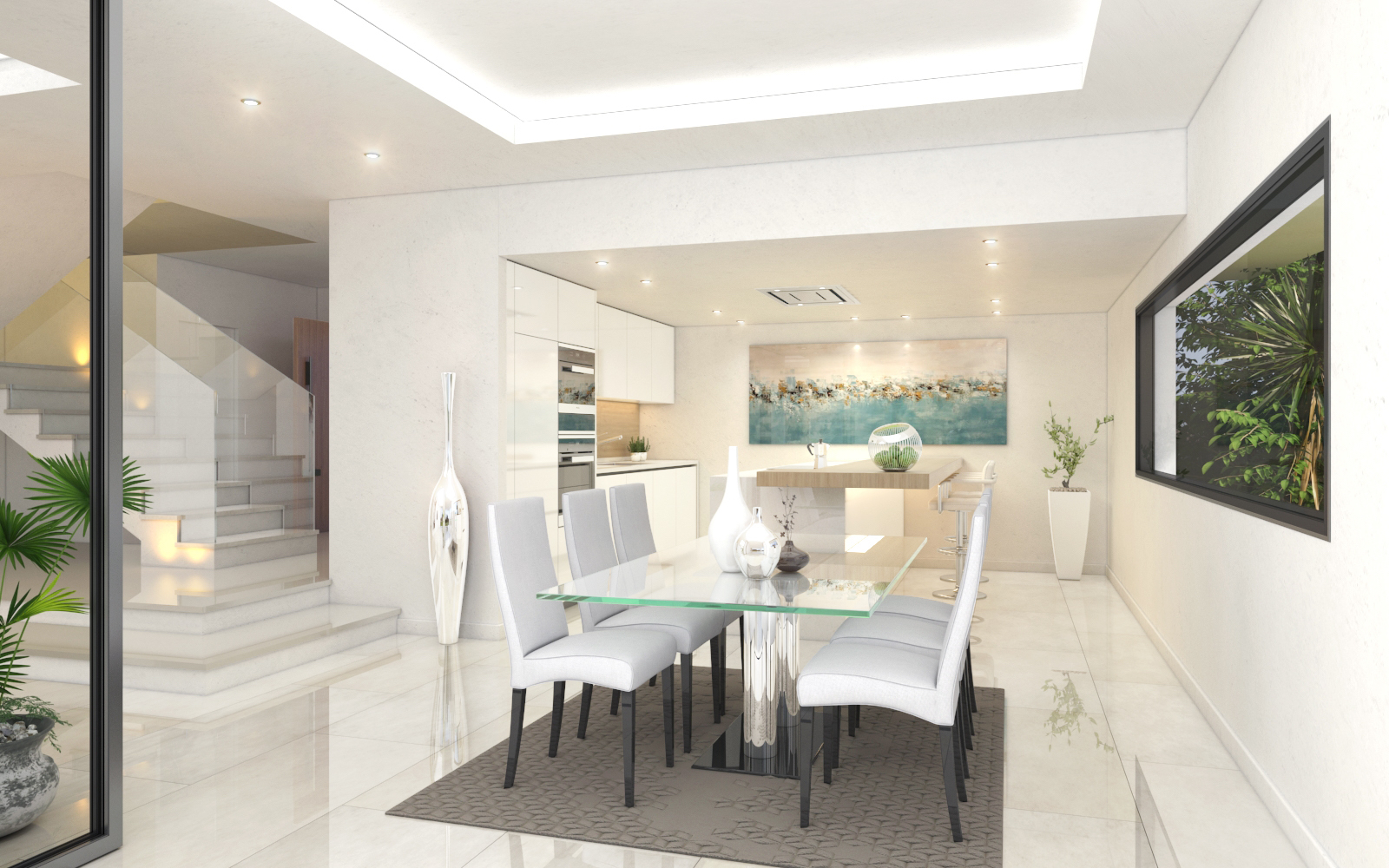 Contemporary functional homes with large open plan living areas that connect the best of interior and exterior living spaces by the use of large windows, natural stone and top quality materials throughout.