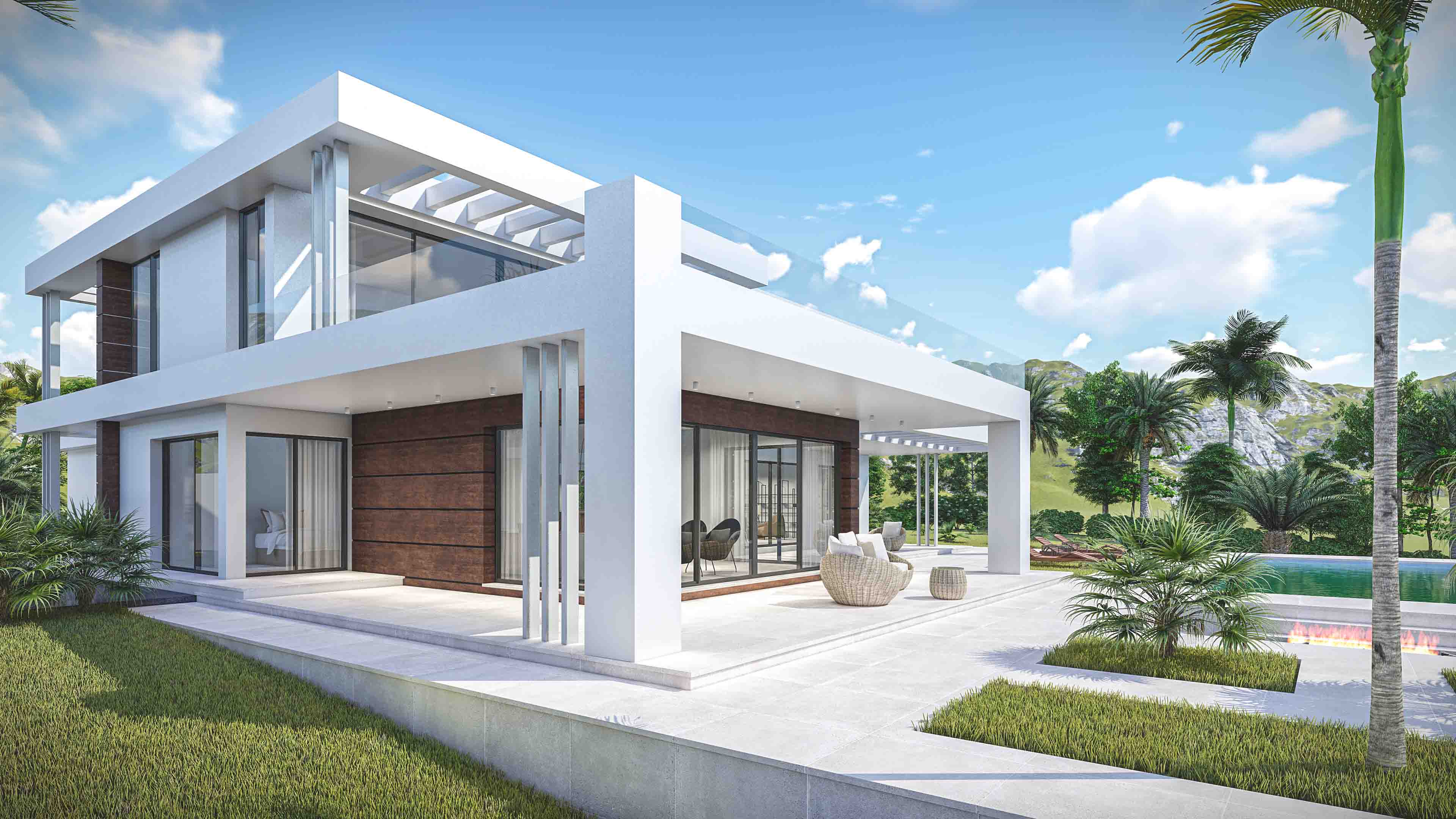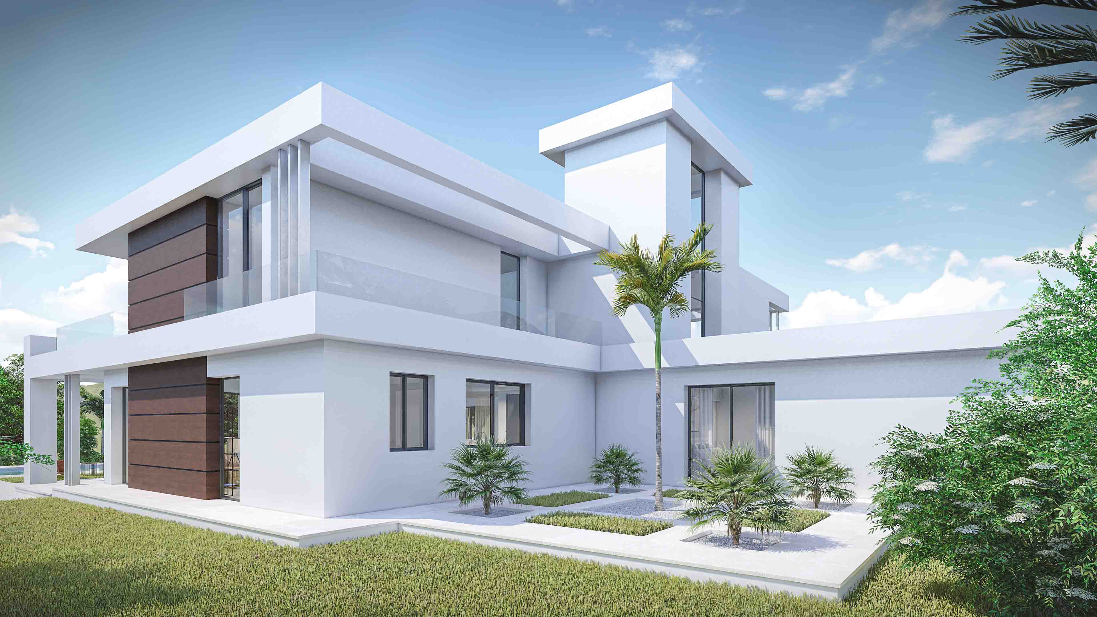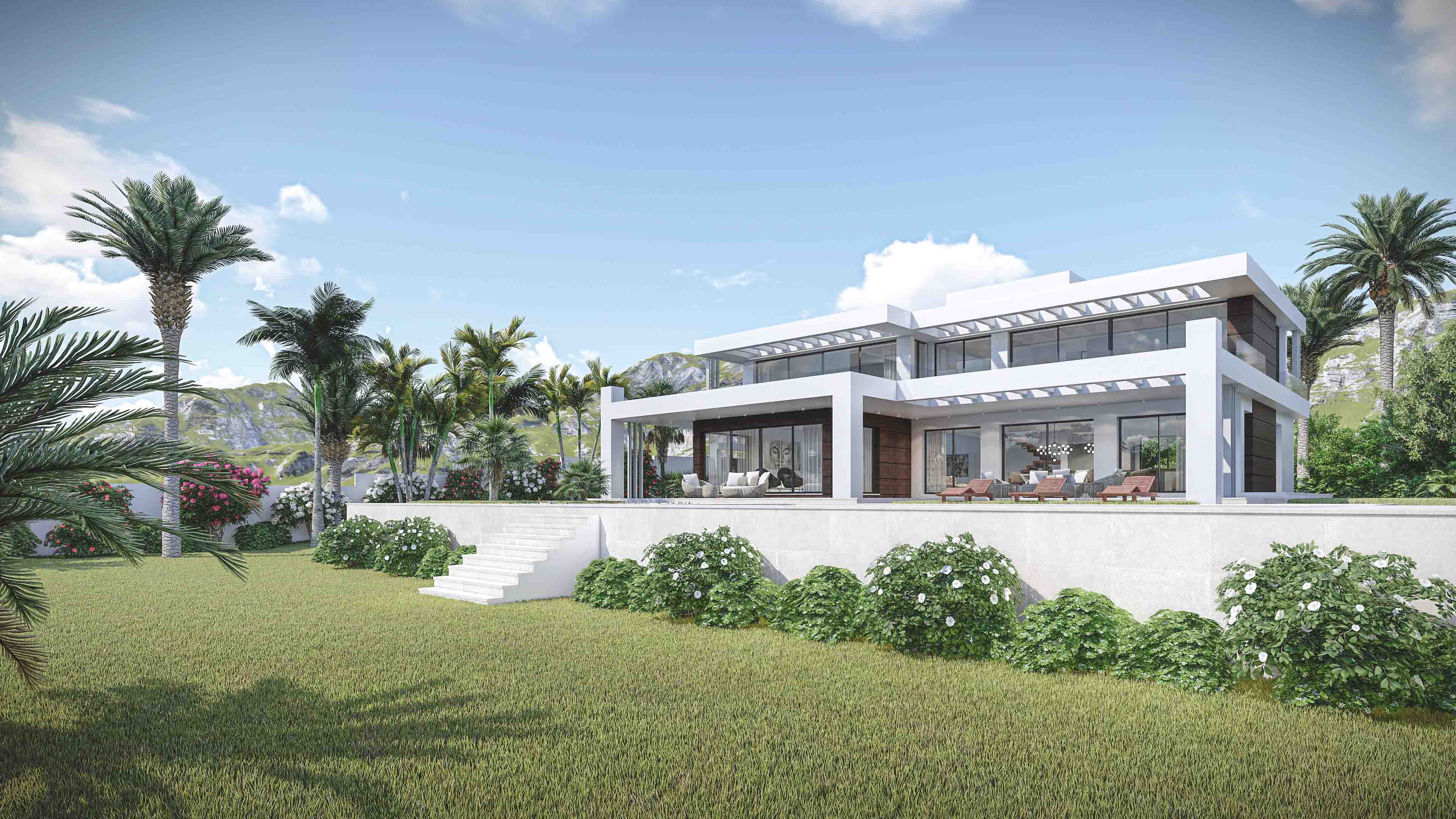 The design is based on the fusion between the necessities of the daily life and the wonderful environment in which the villa is framed. The building is located on the highest part of the plot, to maximize the open garden space that embraces the villa. Adding to the spacious indoor spaces of the villa, the outdoor offers semi-covered terraces designed to enjoy the pleasant climate of the Costa del Sol.