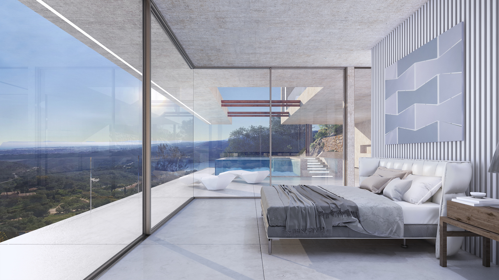 The architecture of Sierra Blanca was conceived from the special topography of the plot towards the impressive landscape that travels through the Mediterranean, extends into Africa and vanishes in the horizon. The staircase is the backbone of the house that connects all floors symmetrically. Set on 4 levels, this spacious and impressive villa is going to be built using only the finest materials throughout.