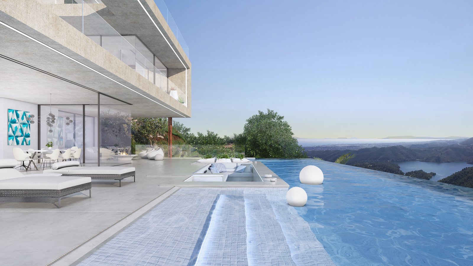 Enjoy the feeling of floating over the valley and the sea, surrounded by the most luxurious villas, looking at the Mediterranean Sea