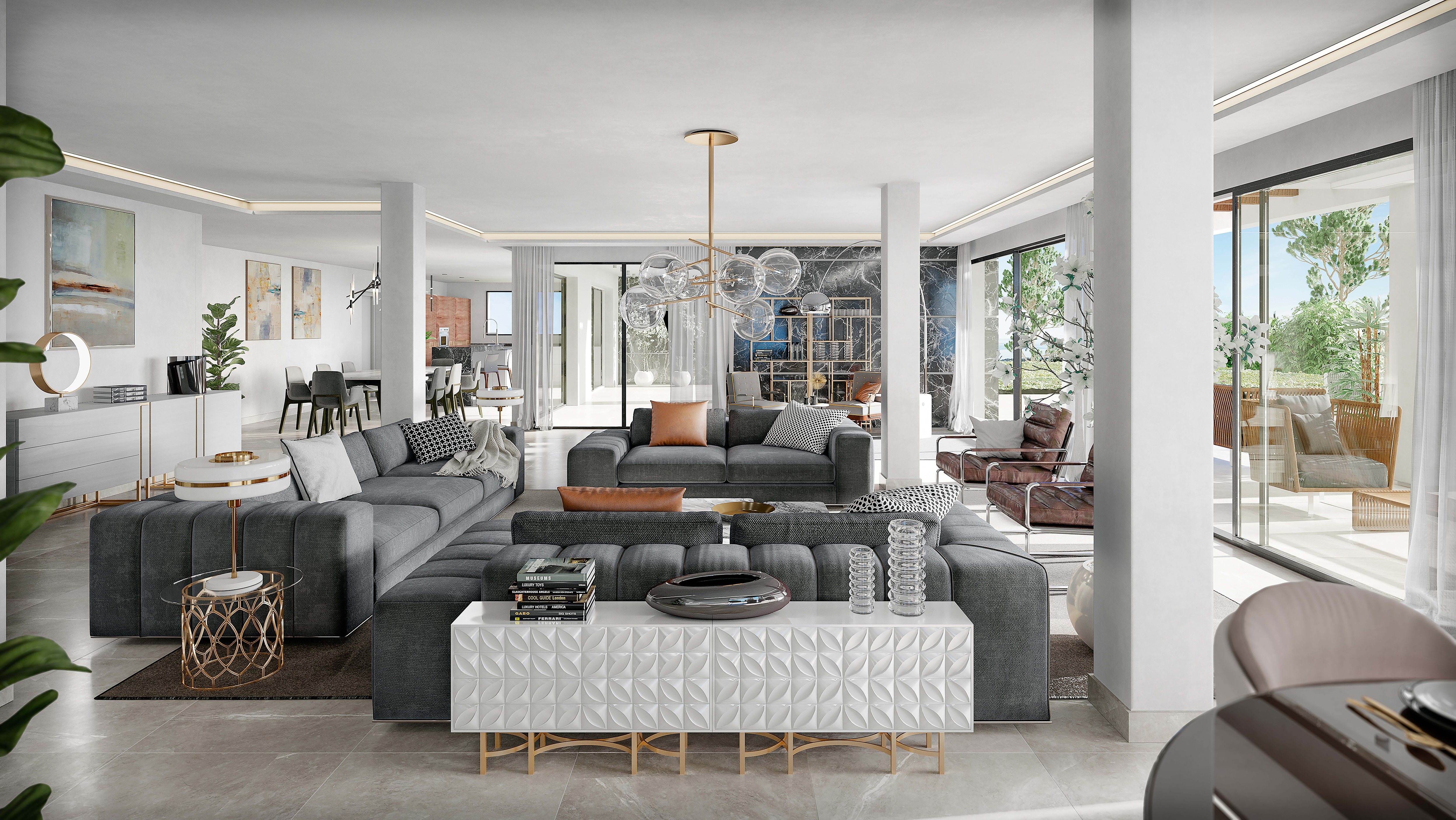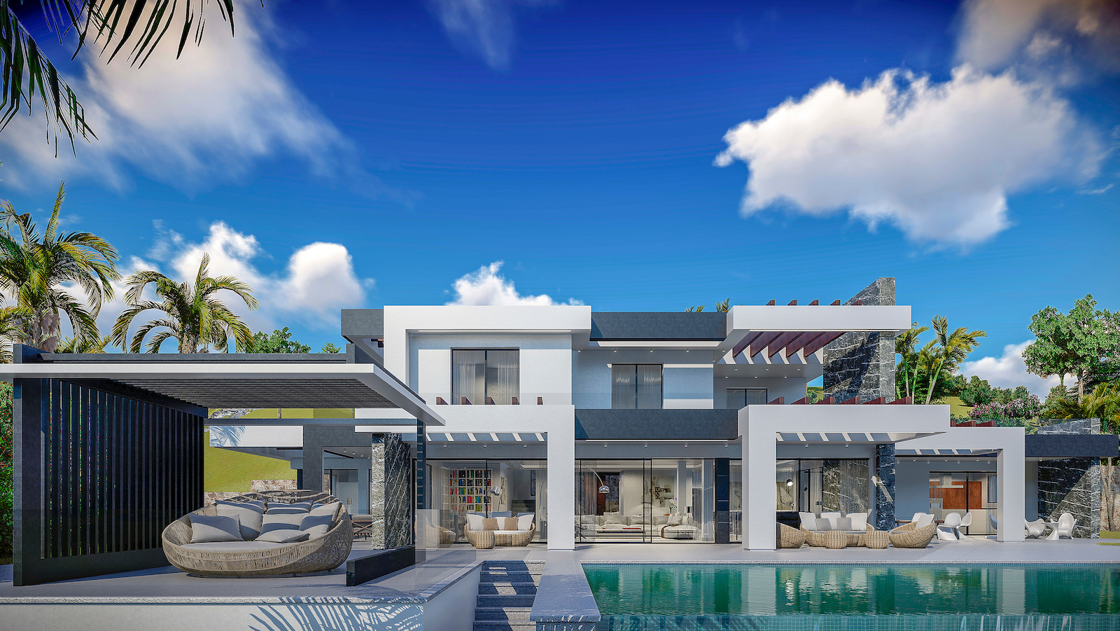 Modern and stylish villa established in a delightful ambiance. Settled on a hill from which you can enjoy sea views overlooking the Mediterranean. Surrounded by an environment full of vegetation and in a green oasis formed by Golf Courses.