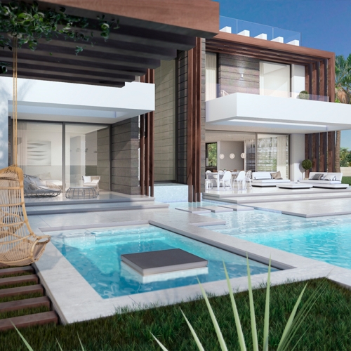 The design of these villas is modern and fresh. The horizontal lines, parallel to the sea, create a symmetrical shape, while the vertical lines break and give movement to the villa. Set on 2 levels, this spacious Costa del Sol villa is going to be built using only the finest materials throughout.