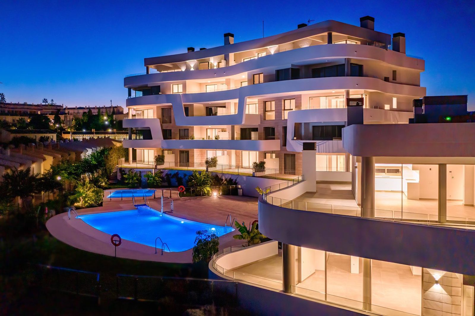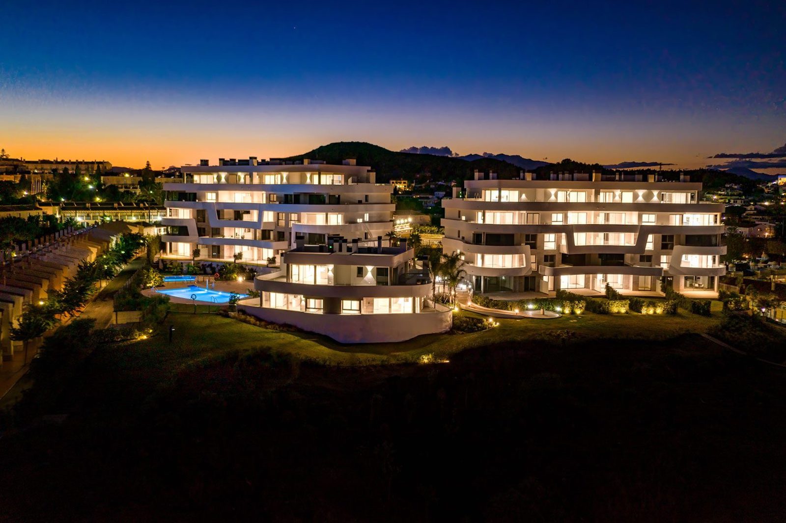 Located in Fuengirola in an elevated position, these apartments offer unrivaled views and direct beach access. Mediterranean views can be enjoyed from all parts of the resort, whether you walk through the lush gardens, rest by the pools or live in one of the 39 south facing apartments or penthouses.