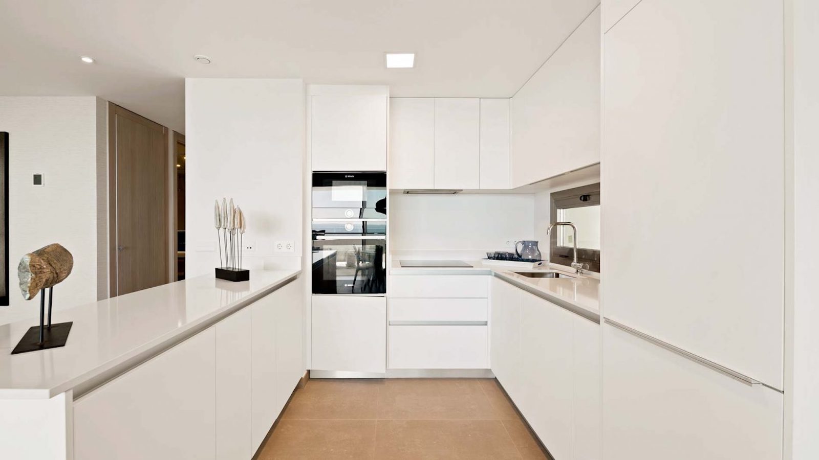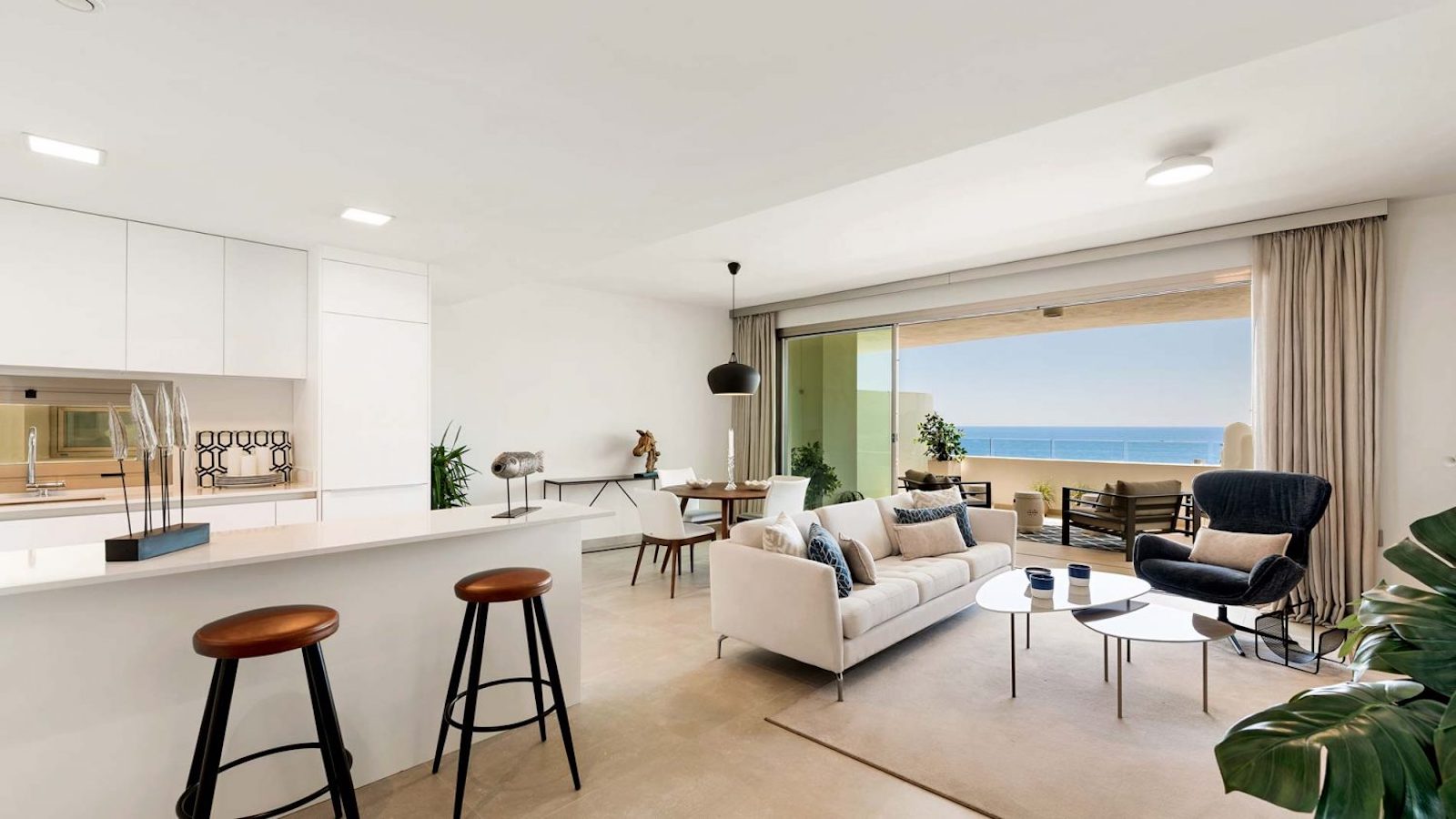 Once inside the property, you immediately meet a view of the Mediterranean Sea. The large bedrooms are deliberately positioned to enjoy the same views as the common areas that combine the kitchen, dining room and living room for maximum space.