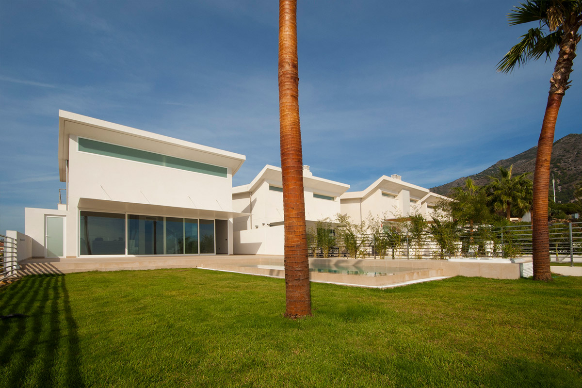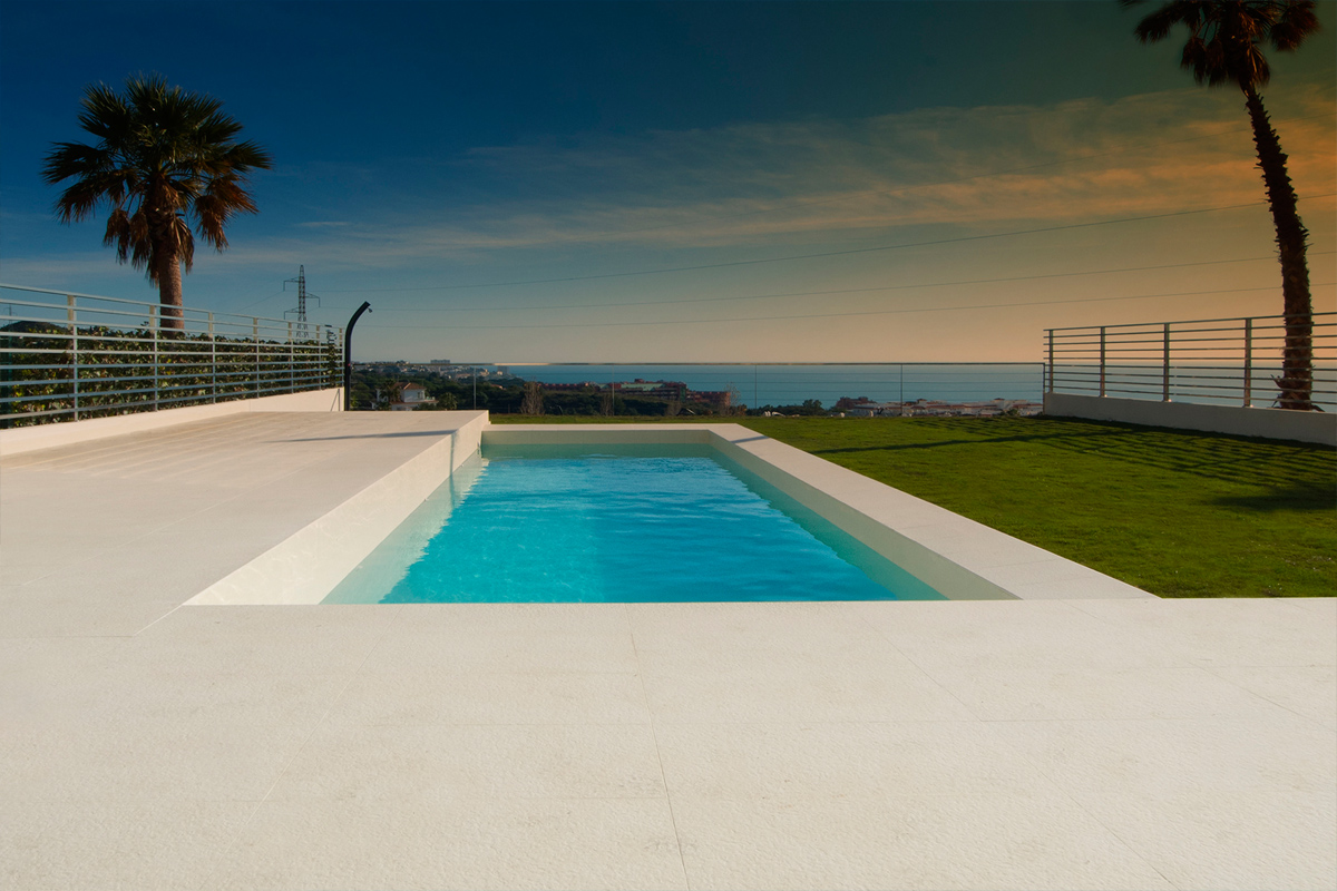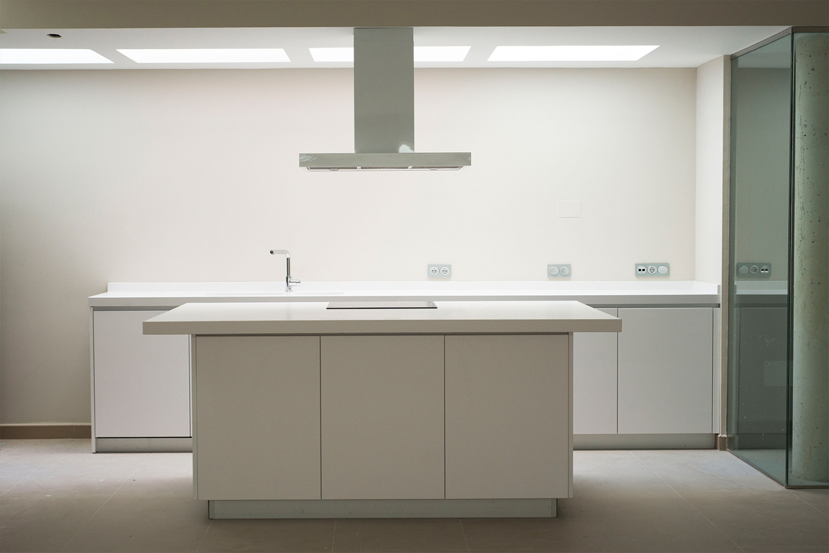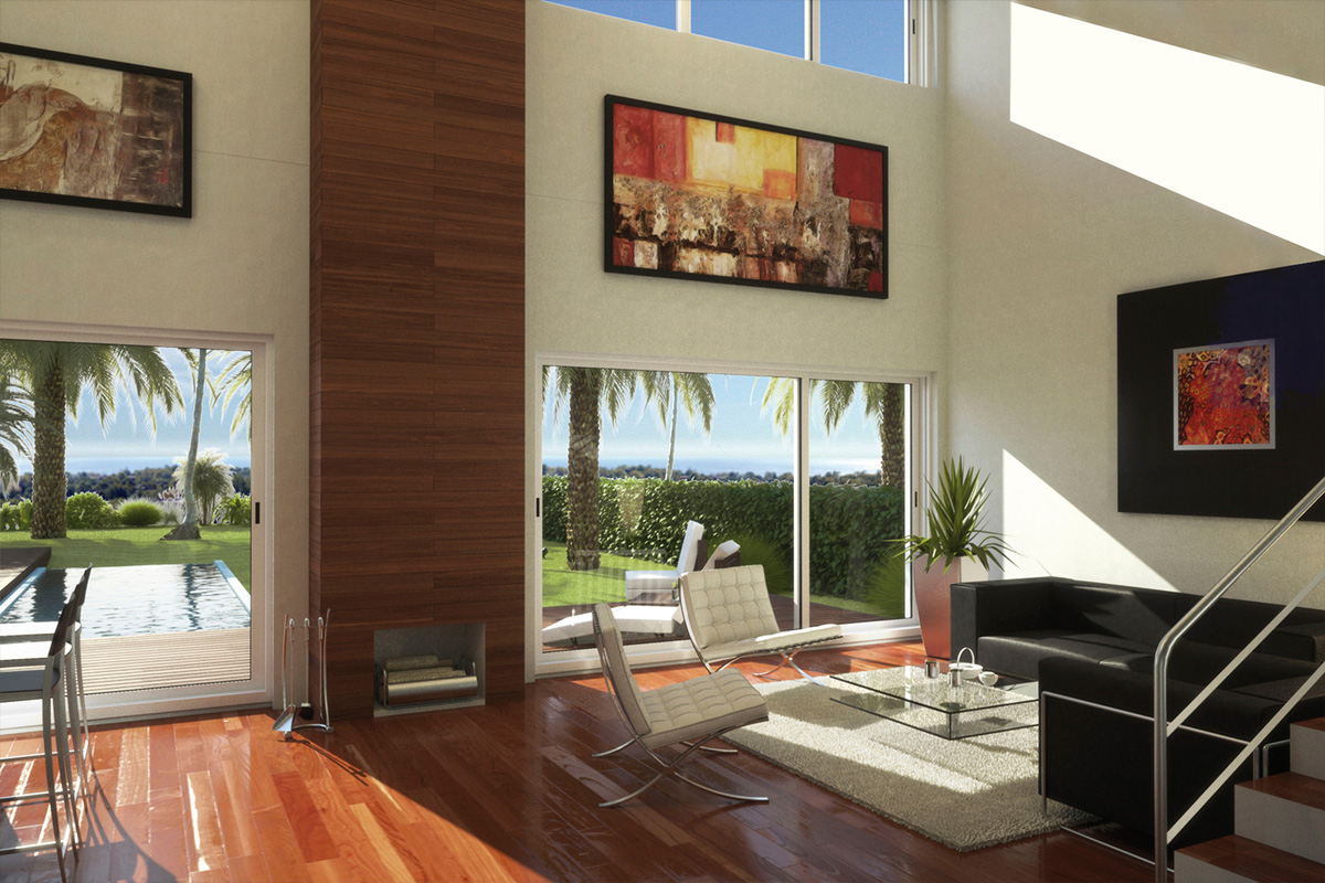 1st FLOOR: Entrance through a walkway up to the front door, Distributor, Guest toilet, open kitchen with island, high and low furniture, Living room with double height dining room, large windows with exit to the terrace occupying the entire south and west facade, Covered and Uncovered Terrace, Garden and Pool access and BBQ.
