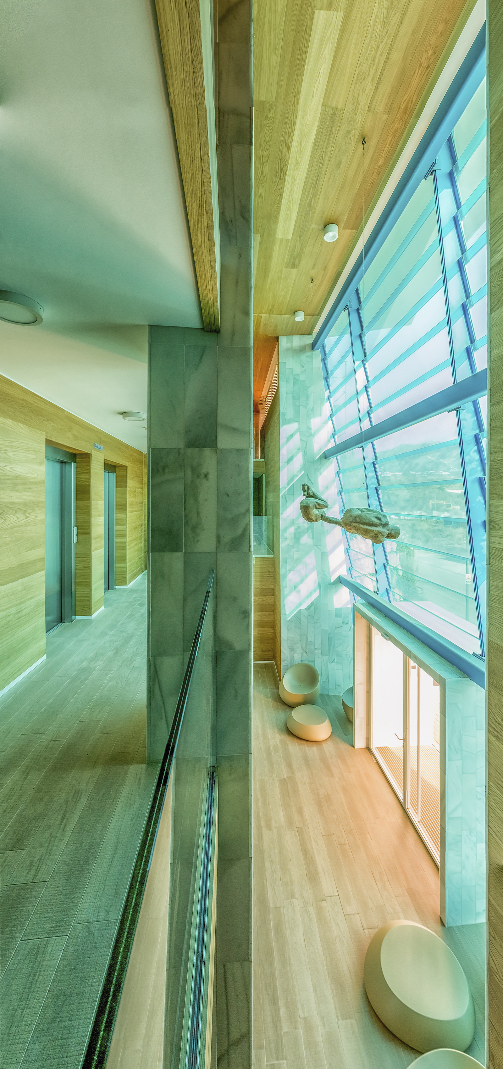 Our inspiration has been the sea and its waves in motion to design the sinuous curves of the roof top reinforced with the colours and composition of the facades.